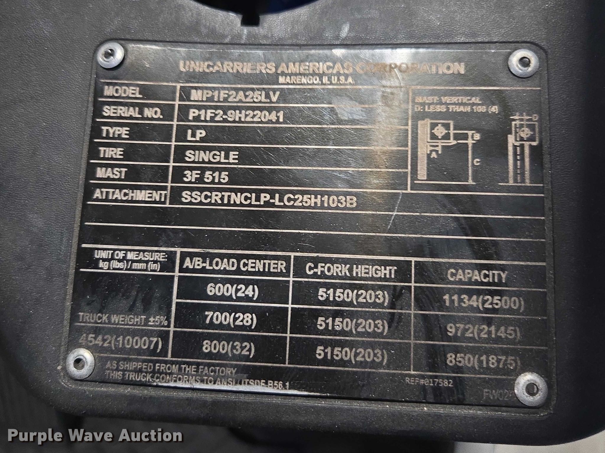 Purple Wave is selling a used Cushion Tire or Pneumatic Forklift in Florida. This item is a 2017 UniCarriers PF50 forklift with the following: Hours: 3,644 on meter, Serial: P1F2-9H22041, Unit #: SFS2994