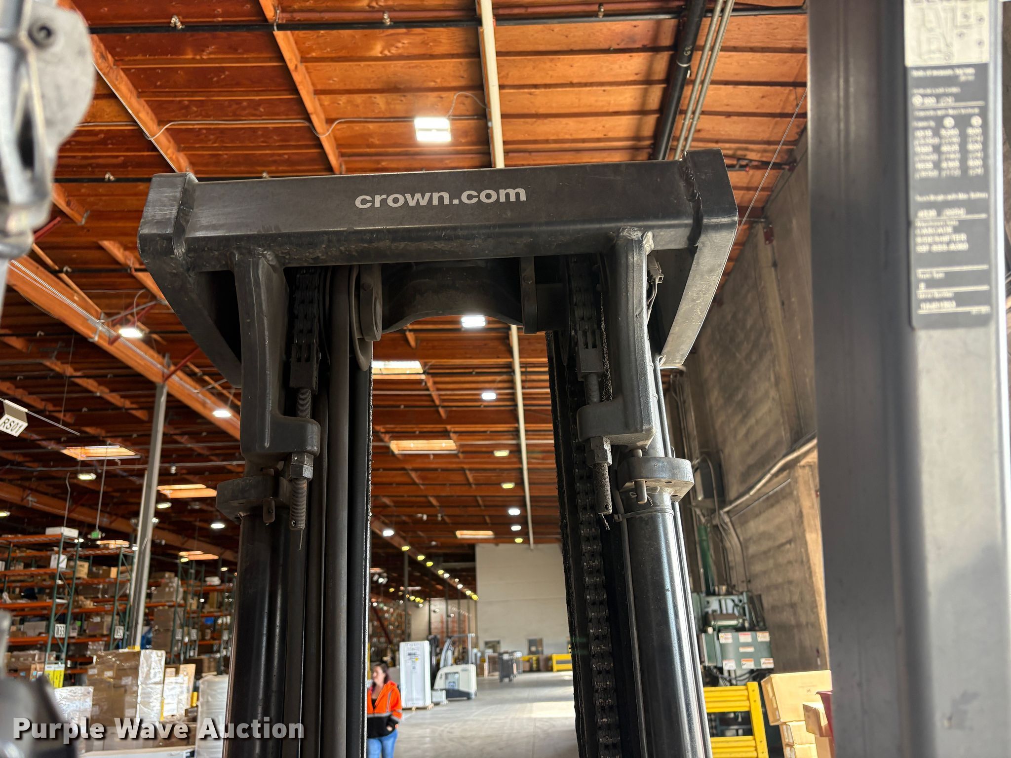 2015 Crown RC5545-40 forklift. Hours: 9,921 on meter, Serial: 1A451563, Unit #: SFS2872. Electric Motor Volts: 36. Transmission Electric drive. Operators station OROPS. Features Maximum lift capacity: 3,650 lbs, Maximum lift height: 208", Collapsed mast height: 87", Mast stages: 3, Side shift, Mast tilt, Fork length: 48". Tires Size: 16x7x10 1/2, Solid. Ferguson. San Leandro, CA 94577