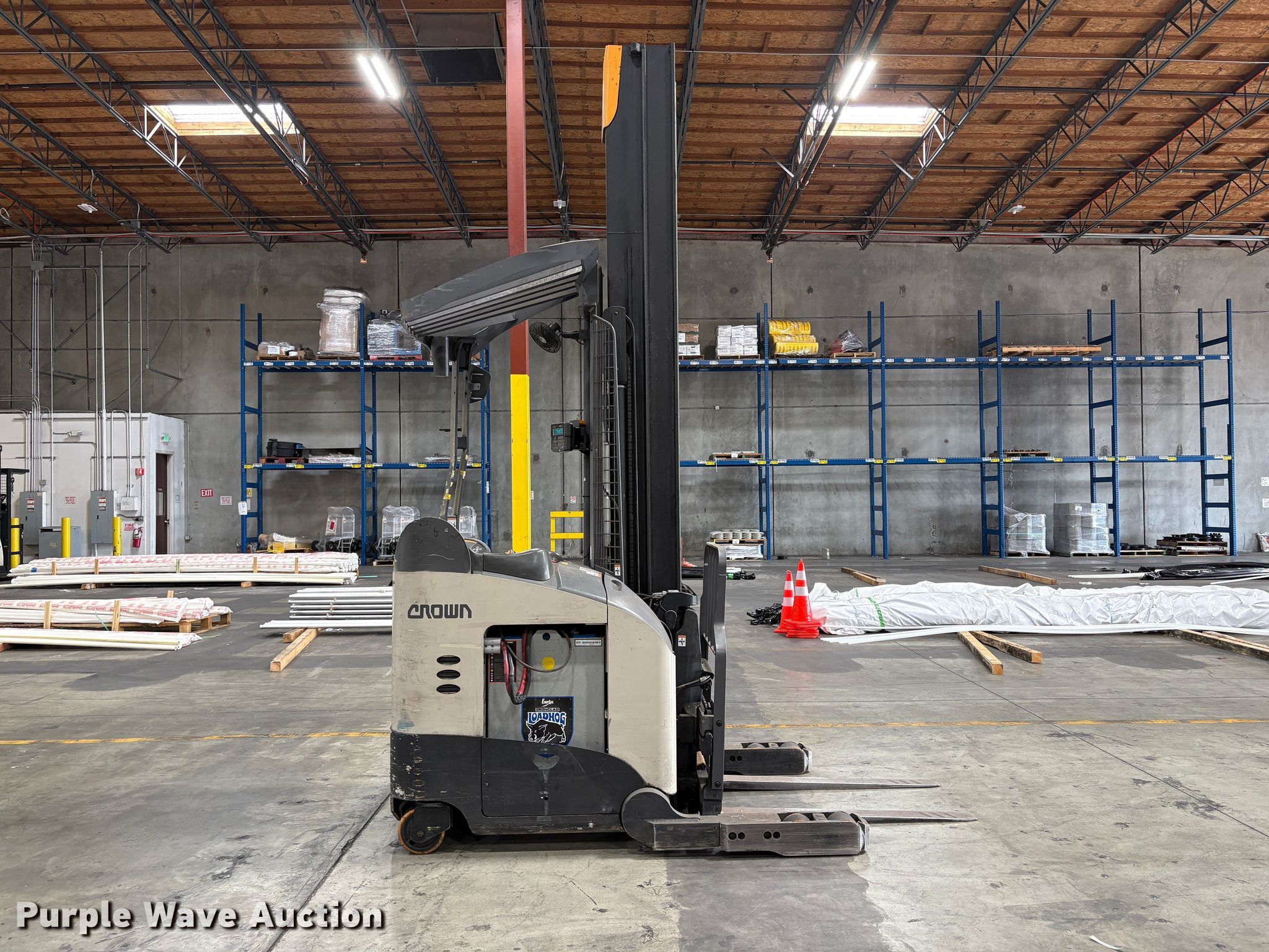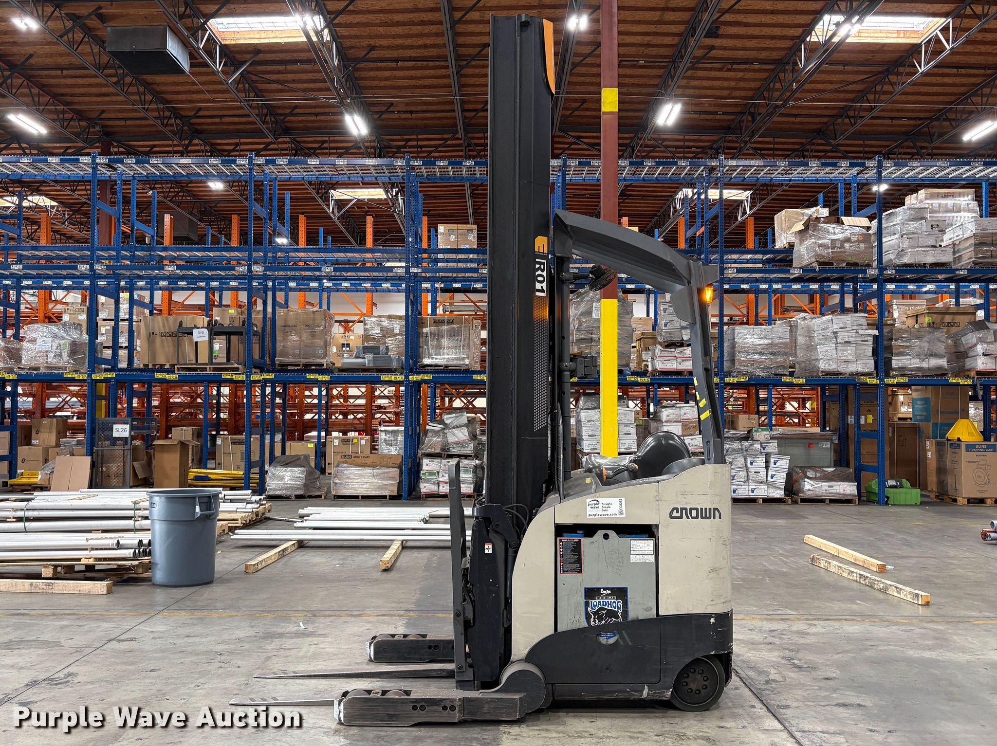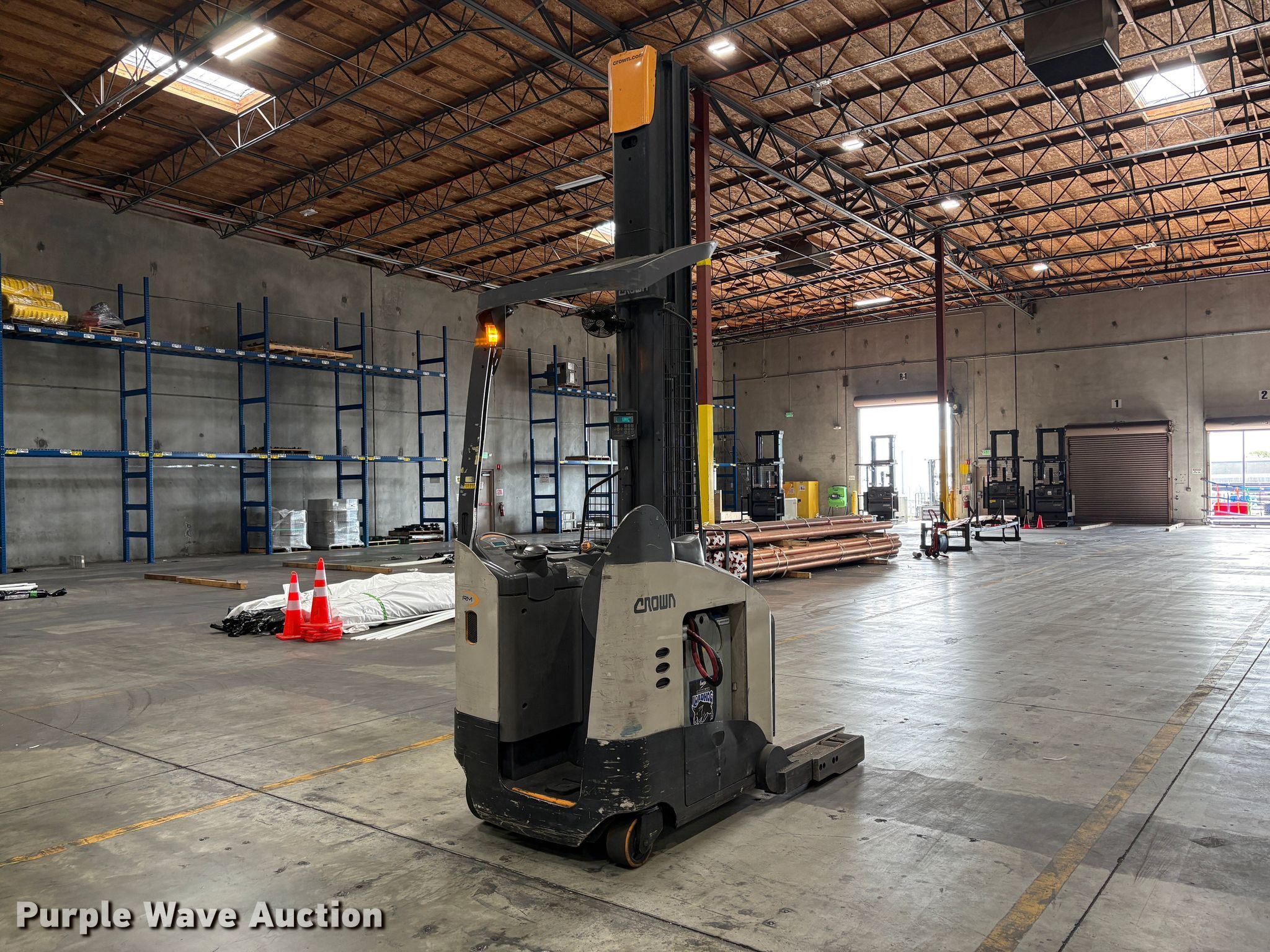 Purple Wave is selling a used Warehouse Forklift in California. This item is a 2016 Crown RM6025-45 reach truck with the following: Hours: 5,776 on meter, Serial: 1A456837, Unit #: SFS2871