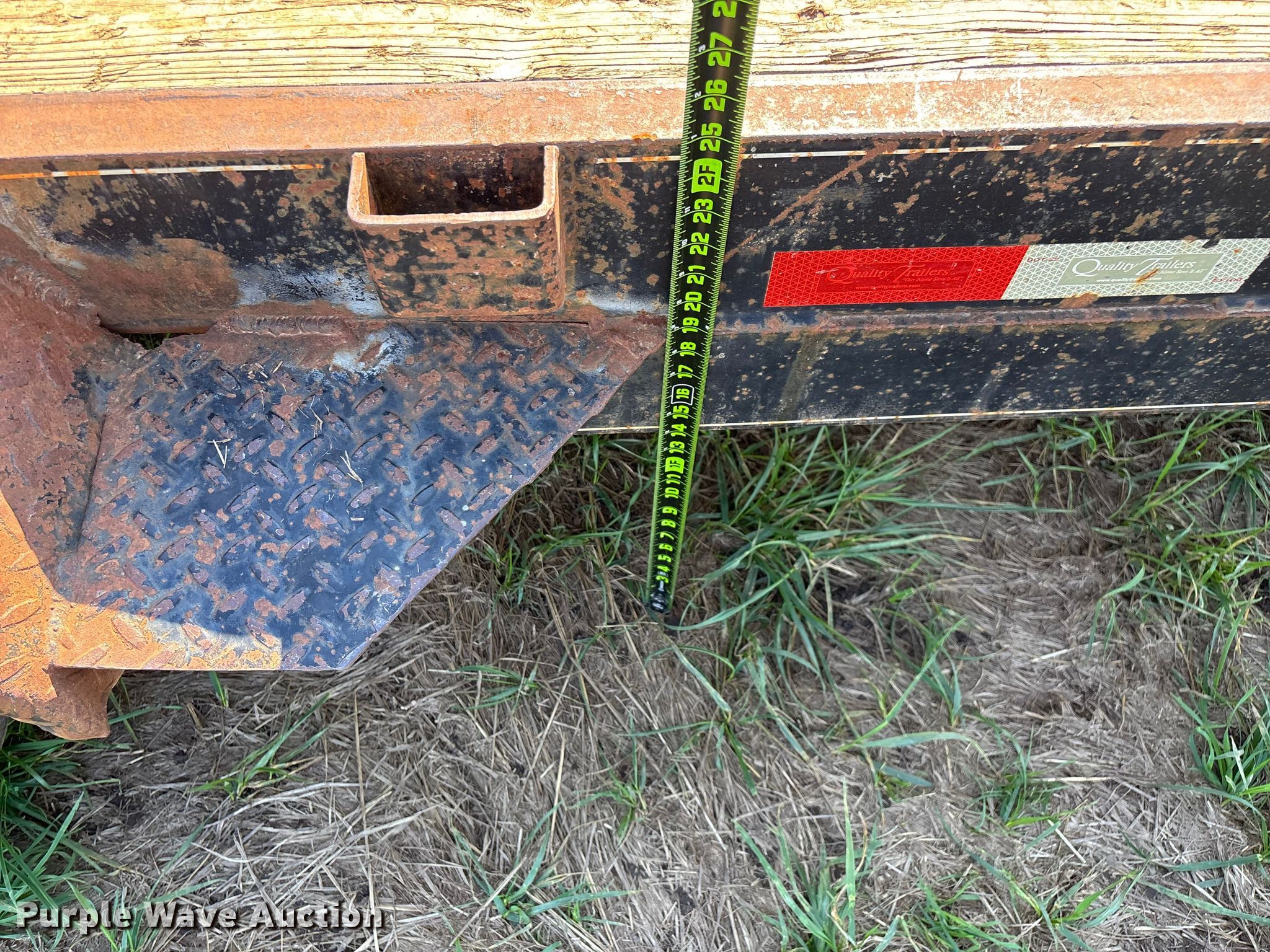 2012 Quality Trailers equipment trailer. VIN: 550FD1825C5002152, Unit #: TLR7051. Dimensions Overall Length: 23' 3", Width: 103", Deck Length: 17' 11", Width: 83", Deck height: 24", Ramps: Manual Length: 65". Features Deck type: Wood. Chassis Hitch: Pintle, Landing gear: Single, Suspension: Spring, Brakes: Electric, Axles: Tandem. Tires Steel wheels, Size: ST225/75R15. Notes Hitch lock not included, Deck board damaged, broken, Low tire. Missouri title. Title distribution may be delayed up to 14 days from verification of funds. Midwest Traffic Signal Services. Springfield, MO 65802