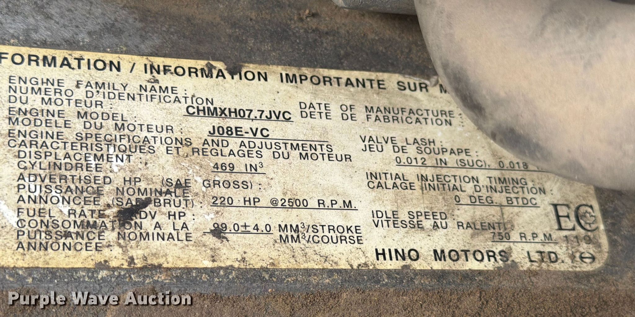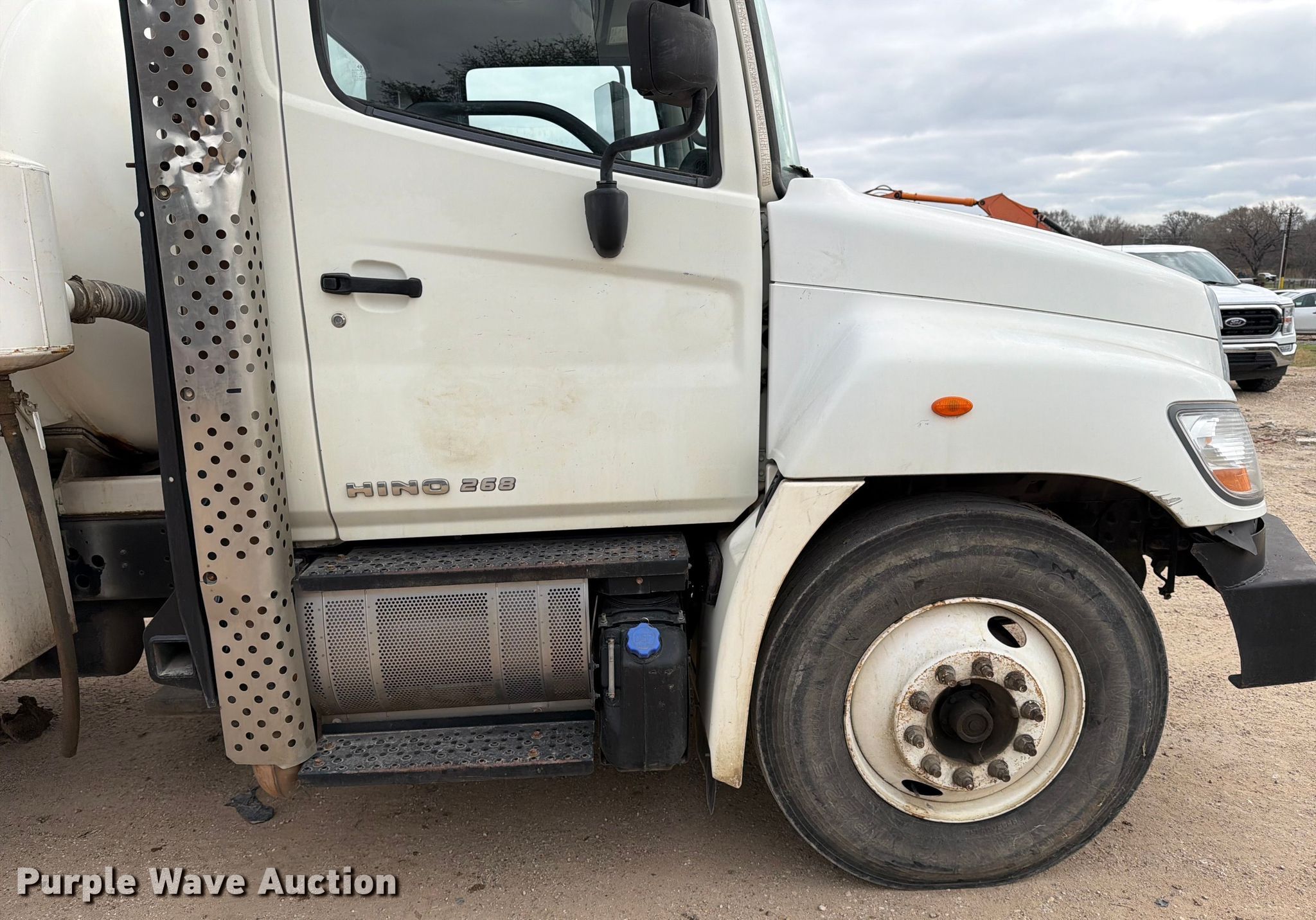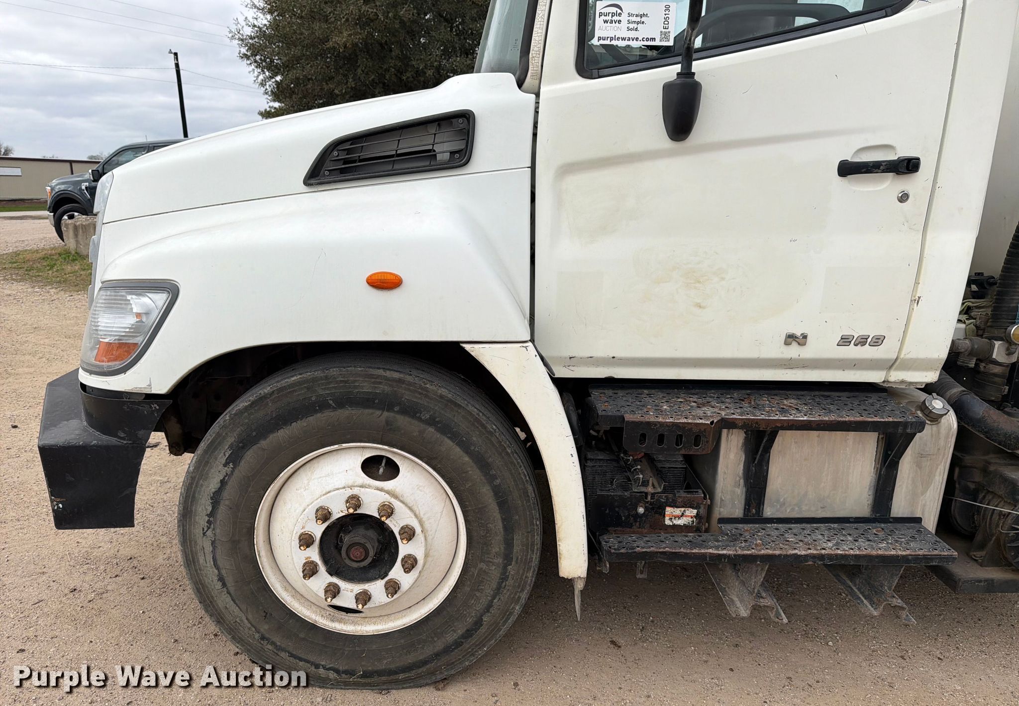 2013 Hino 268 vacuum truck. Miles: 253,565 on odometer, VIN: 5PVNJ8JL0D4S51755. Engine Hino Motors, Ltd J08E-VC/VB, Displacement: 7.6L, Cylinders: 6, Fuel type: Diesel, HP: 220. Transmission Automatic. Chassis Axles: Single, Suspension: Spring, Brakes: Air, PTO. Interior AC, Heat, Power windows, Cruise control. Features Bed Tank bed, Length: 12' 2", Width: 96", Top hatches: 2, Rear outlet: 4", Vacuum pump NVE, Serial: 26791. Tires Size: 11R22.5. Notes Dash warning indicator: Check engine, DPR check, Windshield chipped or cracked, Non-operational vacuum pump, does not turn. Texas title. Title distribution may be delayed up to 14 days from verification of funds. Brannon Industrial Group. College Station, TX 77845