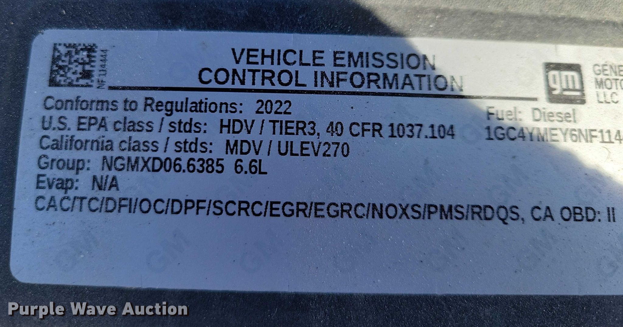 2022 Chevrolet Silverado 2500HD Crew Cab pickup truck. Miles: 208,732 on odometer, Hours: 4,849 on meter, VIN: 1GC4YMEY6NF114444. Engine Displacement: 6.6L, Cylinders: 8, Fuel type: Diesel. Transmission Automatic, Four wheel drive. Interior AC, Heat, Power windows, Power locks, Cruise control, Backup camera, Brake controller. Tires Size: LT275/65R20. Notes Windshield chipped or cracked. Missouri title. Title distribution may be delayed up to 14 days from verification of funds. Utility Safety and Design Inc.. Unionville, MO 63565