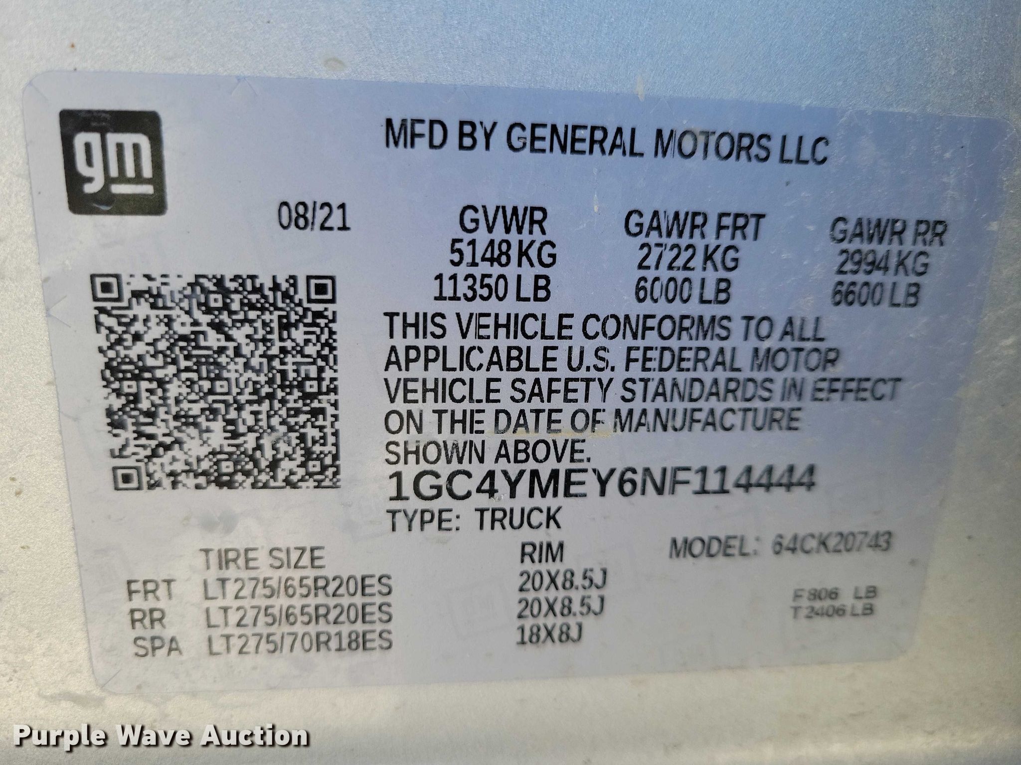This 2022 Chevrolet Silverado 2500HD Crew Cab pickup truck will sell to the highest bidder regardless of price.