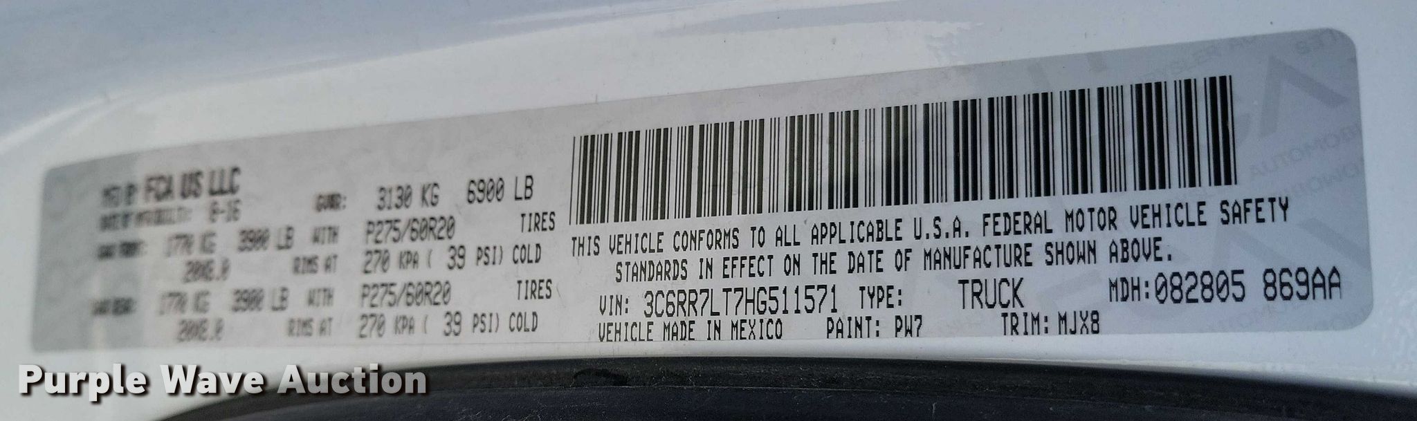 - VIN: 3C6RR7LT7HG511571