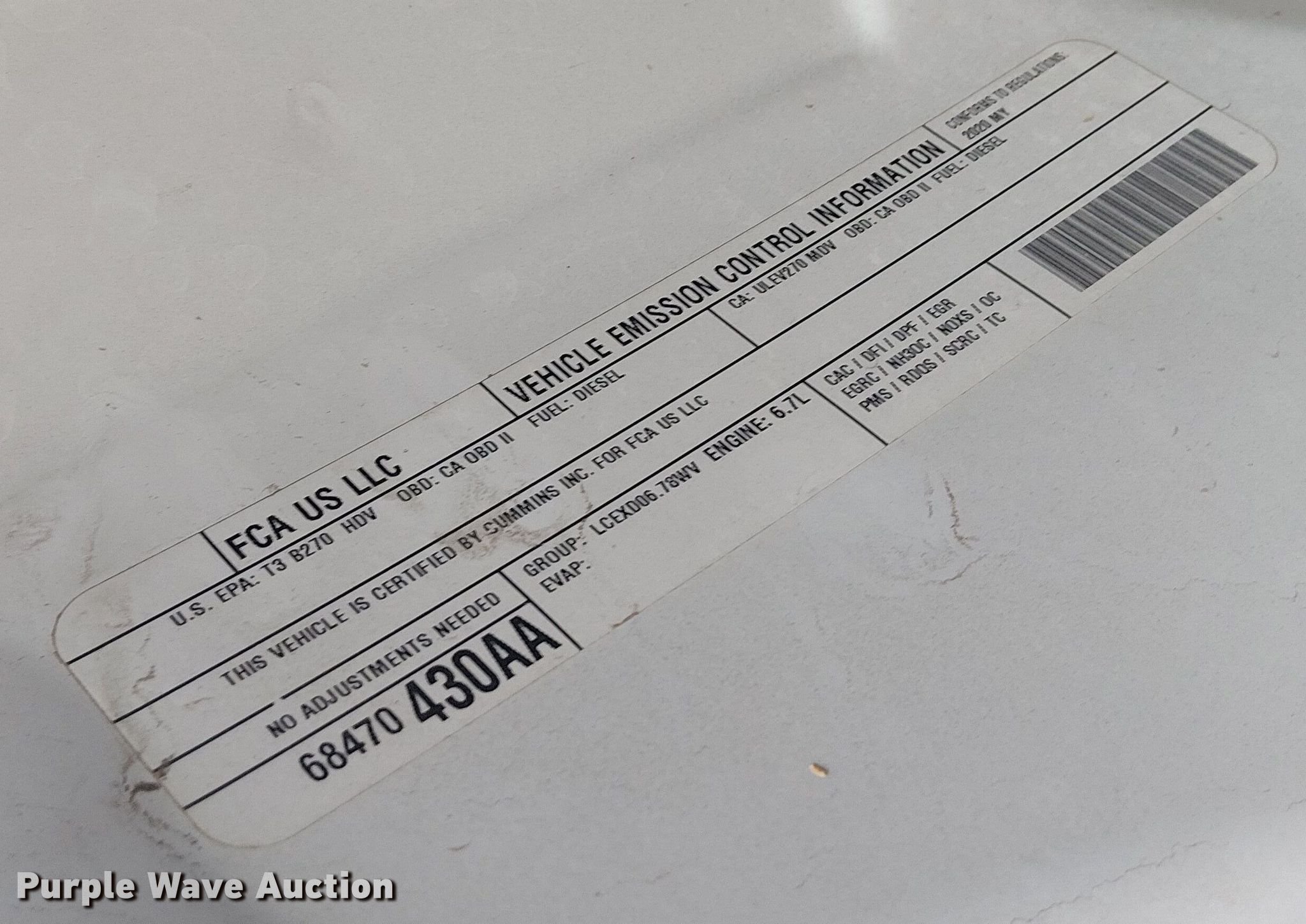 Purple Wave is selling a used 3/4 or 1 Ton Pickup or Van in Arizona. This item is a 2020 RAM 3500 Crew Cab pickup truck with the following: Miles: 143,544 on odometer, Miles or hours may vary, unit still in use, VIN: 3C63R3GL6LG240827