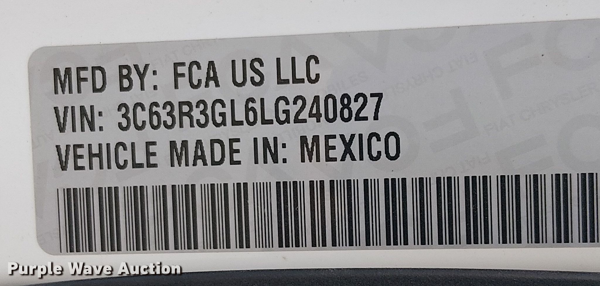 - VIN: 3C63R3GL6LG240827