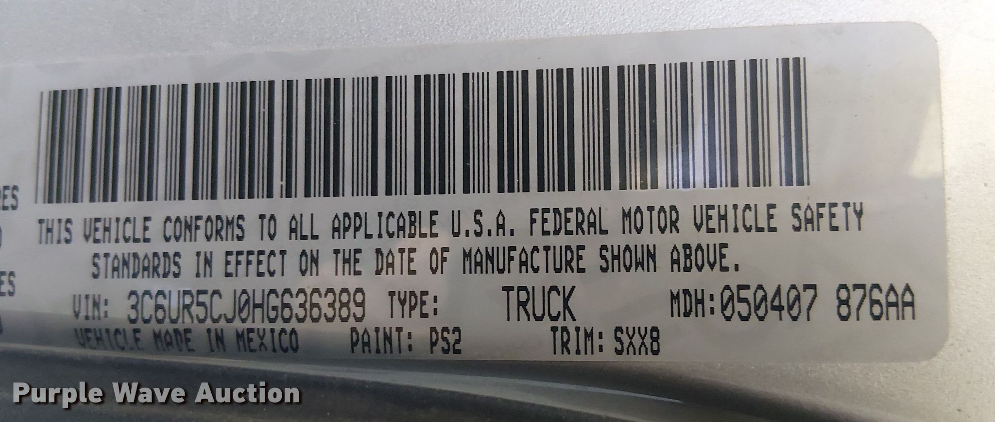 Purple Wave is selling a used 3/4 or 1 Ton Pickup or Van in Arizona. This item is a 2017 RAM 2500 Crew Cab flatbed pickup truck with the following: Miles: 120,543 on odometer, VIN: 3C6UR5CJ0HG636389