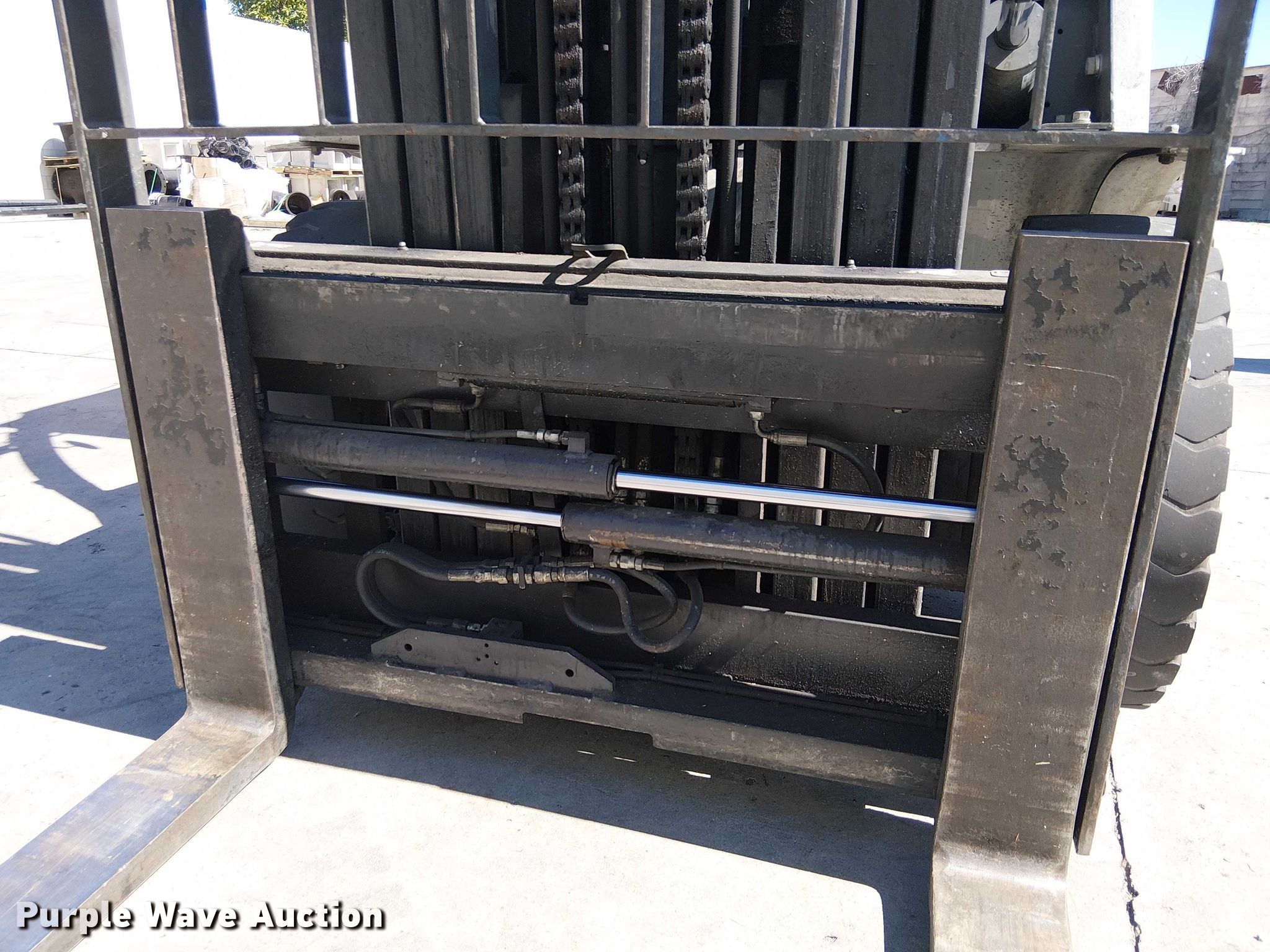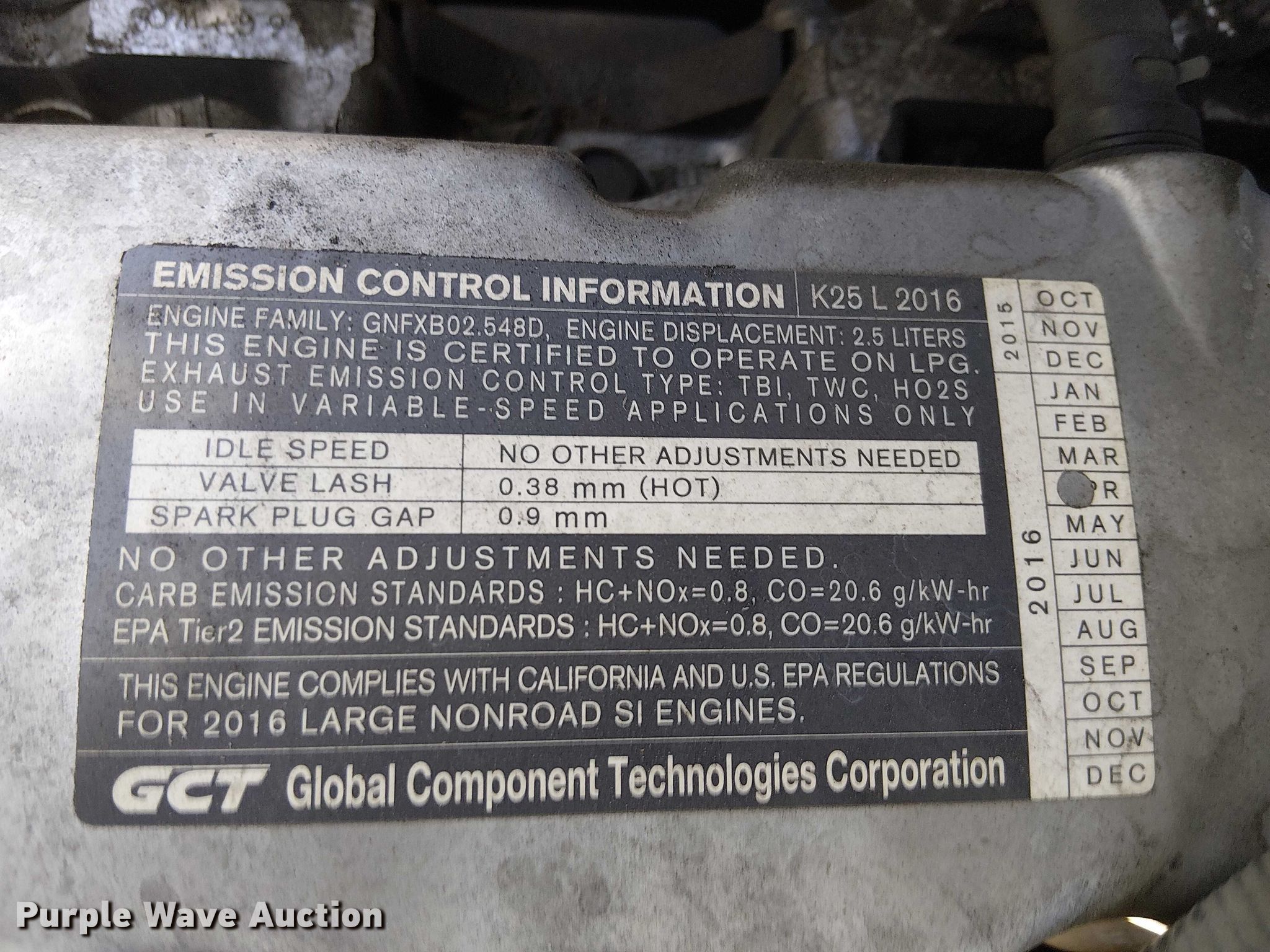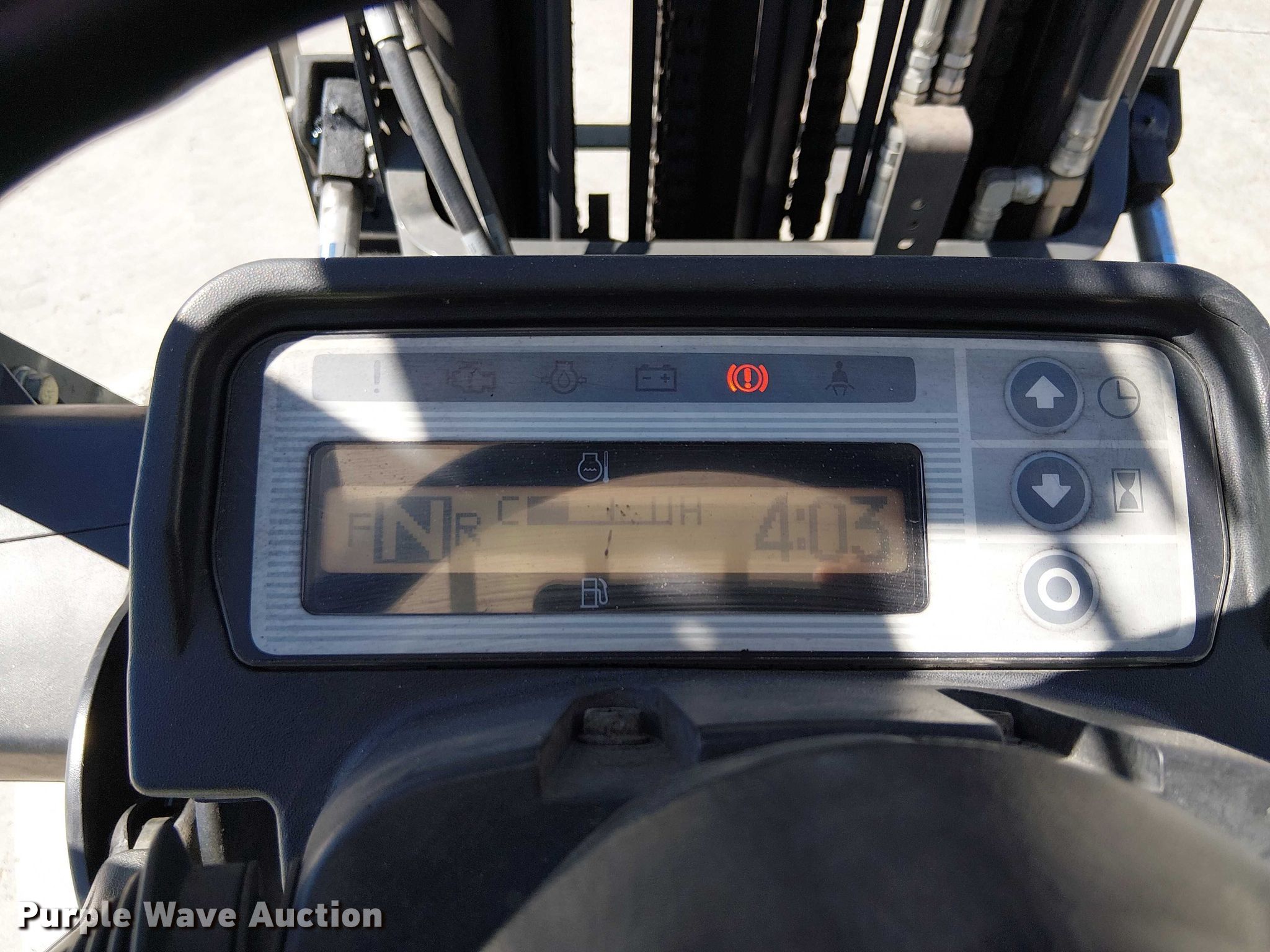 2016 UniCarriers PF70 forklift. Hours: 5,121 on meter, Miles or hours may vary, unit still in use, Serial: UG1F2-9L20609, Unit #: SFS3044. Engine GCT K25L, Displacement: 2.5L, Cylinders: 4, Fuel type: LPG LP bottle: Not included. Transmission Automatic. Operators station OROPS, Canopy. Features Maximum lift capacity: 6,025 lbs, Maximum lift height: 191", Collapsed mast height: 89", Mast stages: 3, Side shift, Mast tilt, Fork positioner, Fork length: 59". Tires Front: 2.50-15, Rear: 6.50-10, Solid. Notes Warning indicator: Master warning, Non-operational seatbelt. Ferguson. Poway, CA 92064
