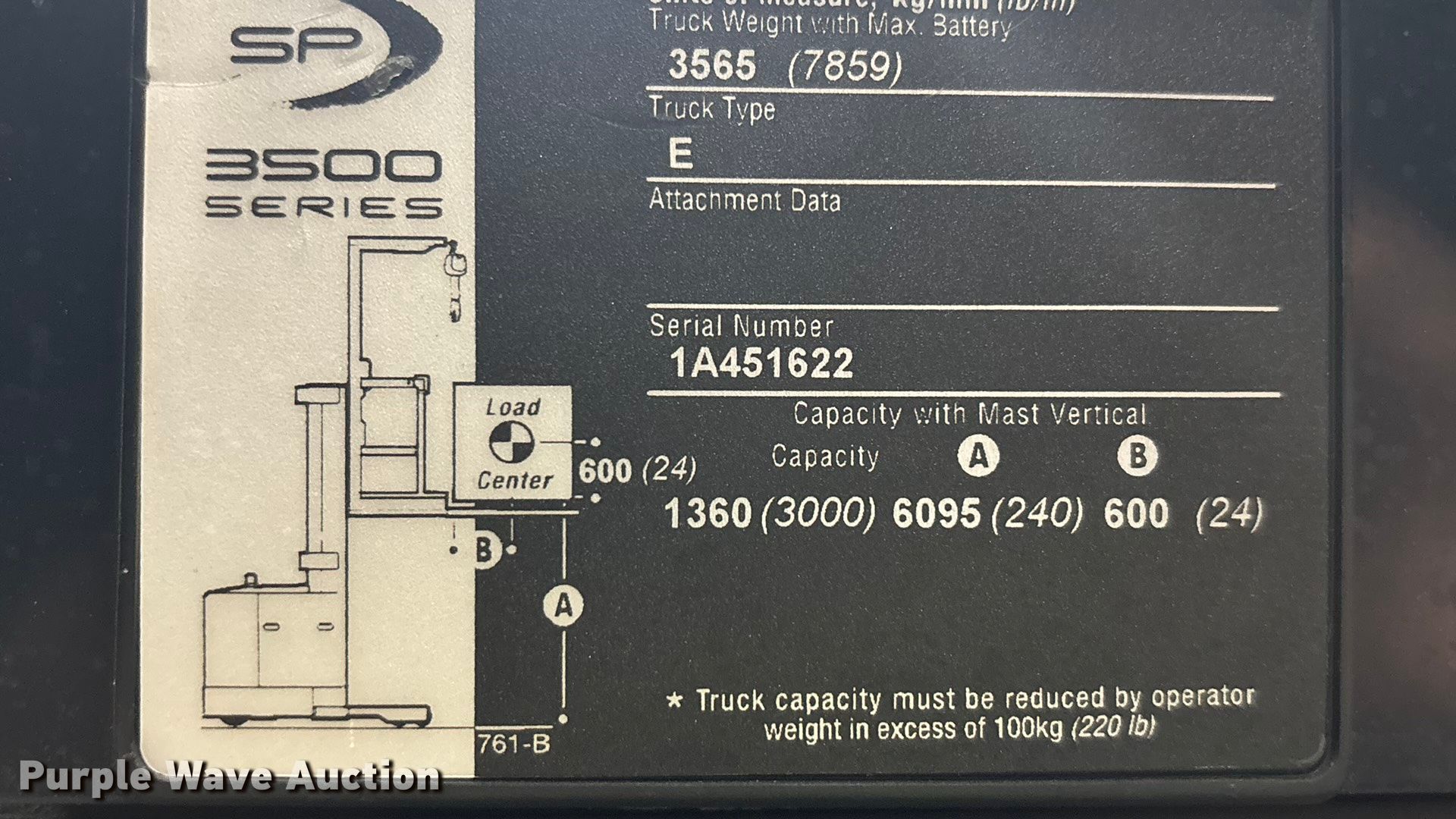 Purple Wave is selling a used Warehouse Forklift in Nevada. This item is a 2016 Crown SP3520-30 order picker with the following: Hours: 6,847 on meter, Miles or hours may vary, unit still in use, Serial: 1A451622, Unit #: SFS3048