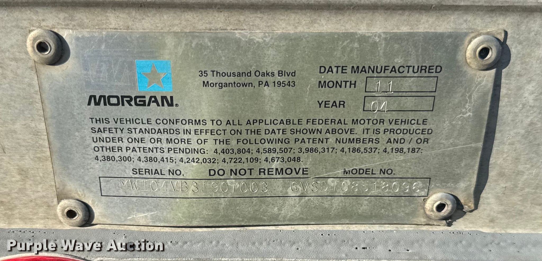 2005 International 4300 box truck. Miles: 412,878 on odometer, Hours: 24,640 on meter, VIN: 1HTMMAAN85H155607, Unit #: 82. Engine Displacement: 7.6L, Cylinders: 6, Fuel type: Diesel. Transmission Automatic. Chassis Axles: Single, Suspension: Spring, Brakes: Air. Interior AC, Heat. Features Bed Morgan GVSDI08518096, Serial: MWI04VB31907003, Length: 18', Width: 96", Height: 84", E-track rail system, Floor: Wood, Slider ramp 24". Tires Size: 11R22.5. Notes Decals will be removed prior to auction. Illinois title. Title distribution may be delayed up to 30 days from verification of funds. Breakthru Beverage Group. Cicero, IL 60804