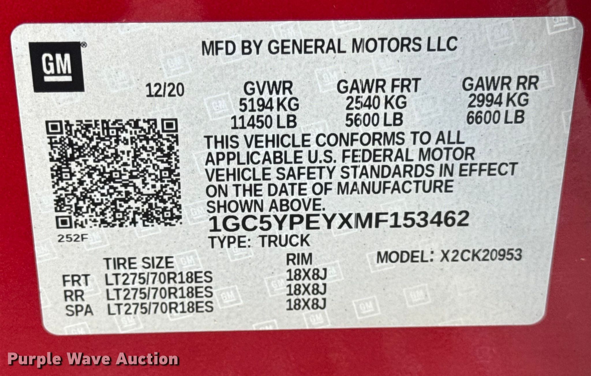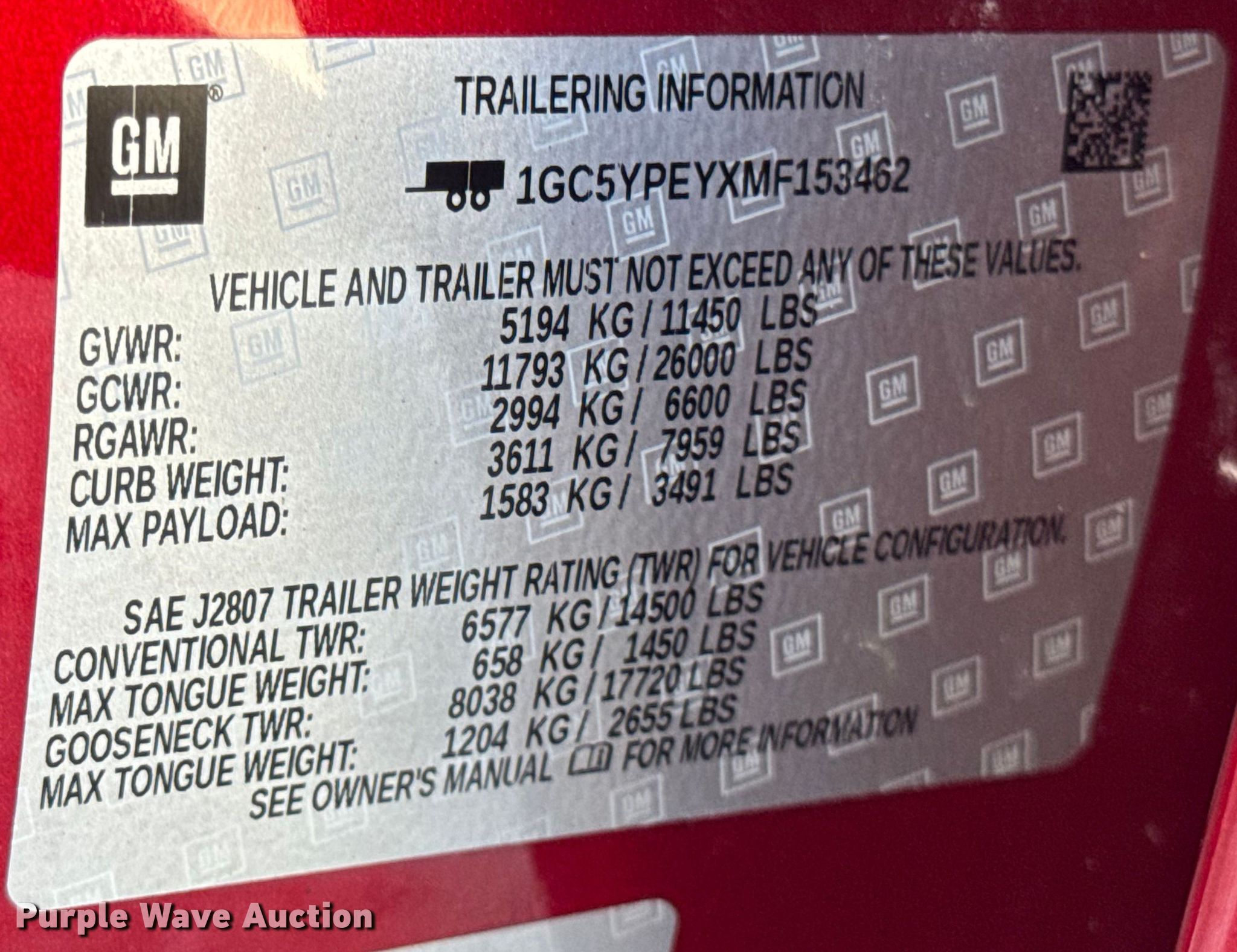 - VIN: 1GC5YPEYXMF153462