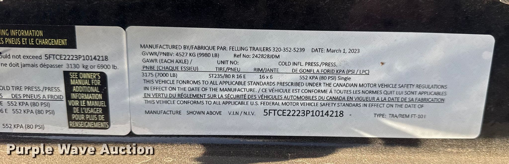 Purple Wave is selling a used Equip. Trailer in Oklahoma. This item is a 2023 Felling Trailers FT-10I equipment trailer with the following: VIN: 5FTCE2223P1014218
