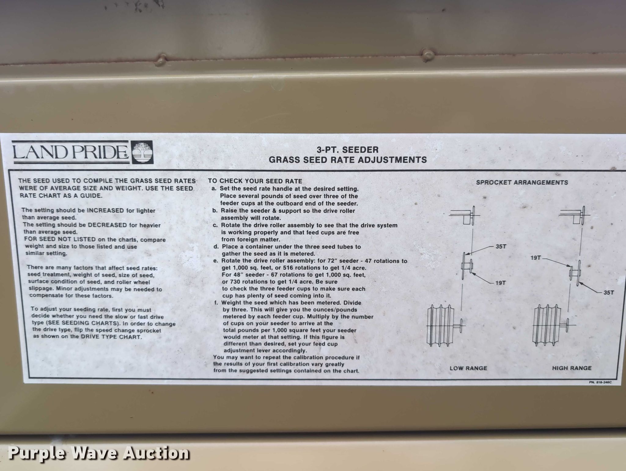 Take a look at this used Land Pride OS1548 seeder being sold on March 25th, 2026 in the Wednesday March 25 Vehicles and Equipment Auction made by Land Pride. Take a look at all of the item information below or take a look at similar auctions for Planters and Seeders.