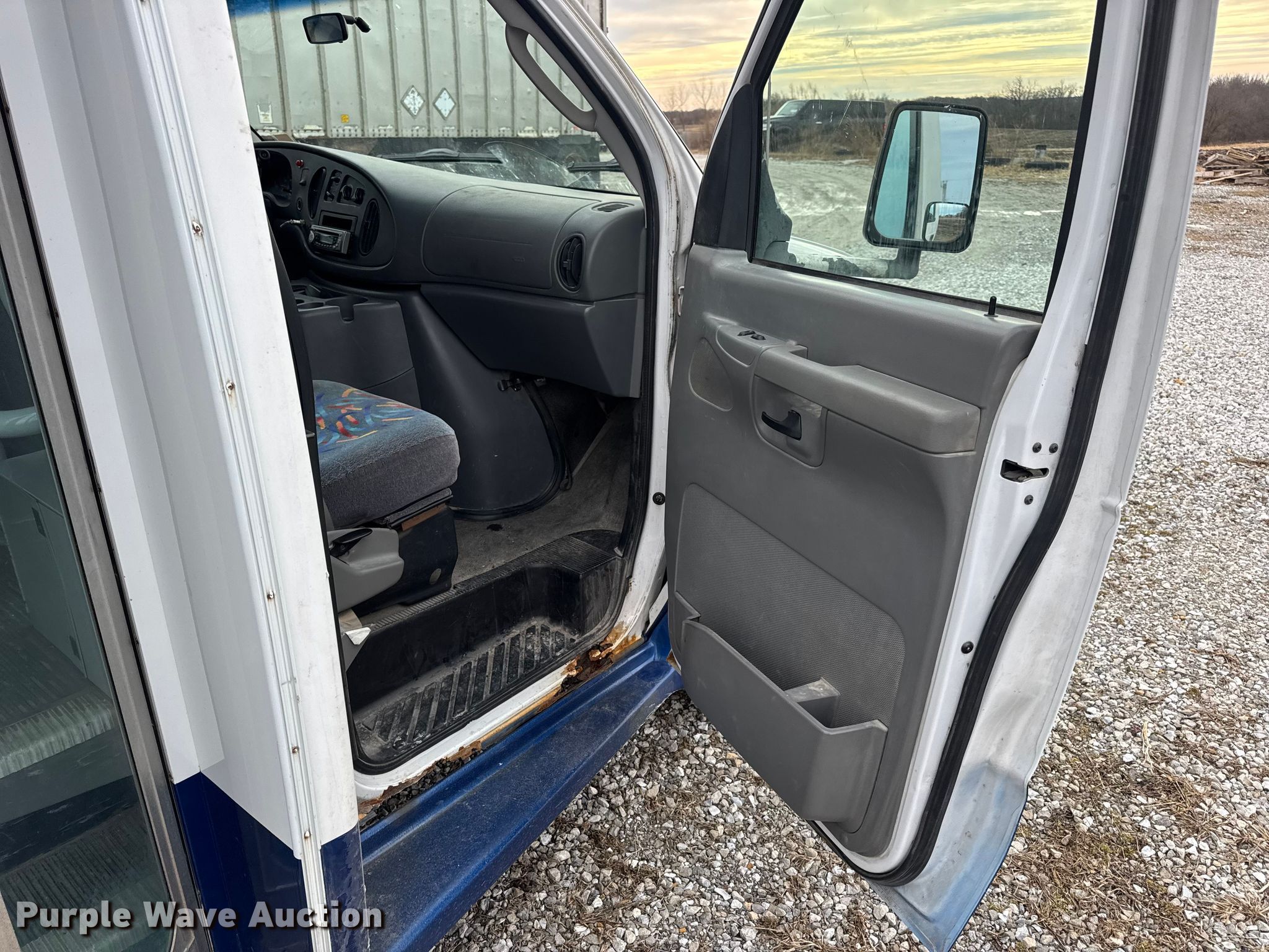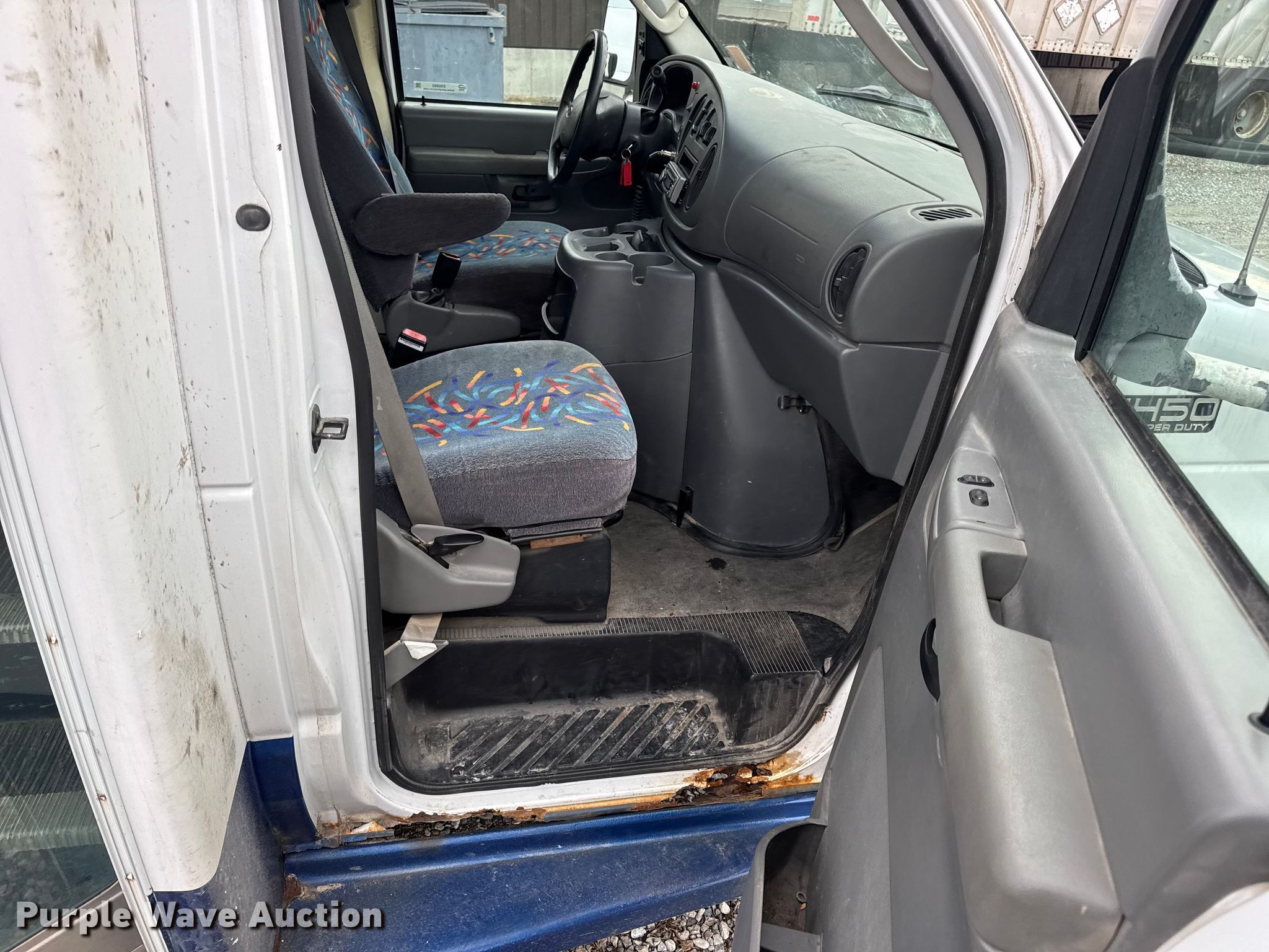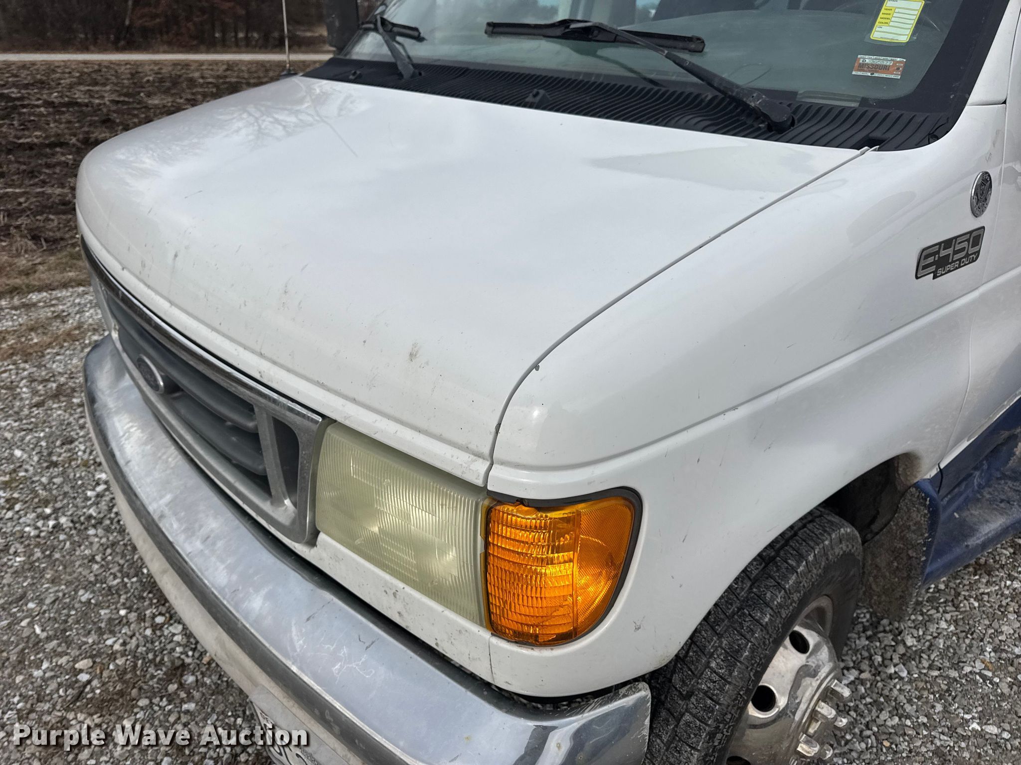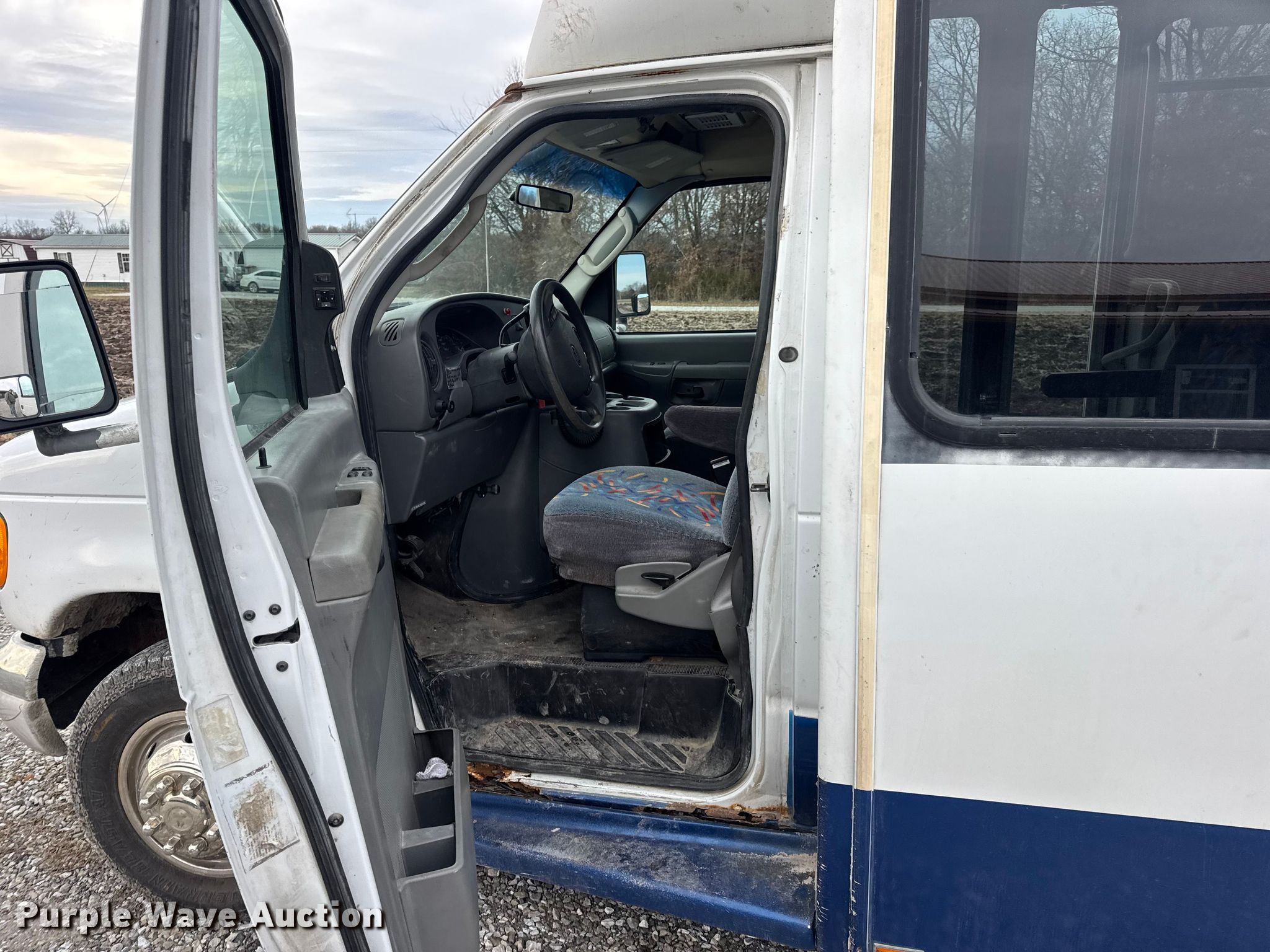 2004 Ford E450 shuttle bus. Miles: 130,655 on odometer, VIN: 1FDXE45S94HA07999. Engine Displacement: 6.8L, Cylinders: 10, Fuel type: Gas, HP: 305. Transmission Automatic. Chassis Suspension: Spring, Brakes: Hydraulic, GVWR: 14,050 lbs. Interior AC, Heat, Cruise control, Auxiliary controls, Electric passenger sliding door, Passengers: 23, Wheelchair lift. Tires Size: LT225/75R16. Notes Rust damage, Non-operational fuel gauge. Missouri title. Title distribution may be delayed up to 14 days from verification of funds. Delmar Martin Farms. Memphis, MO 63555