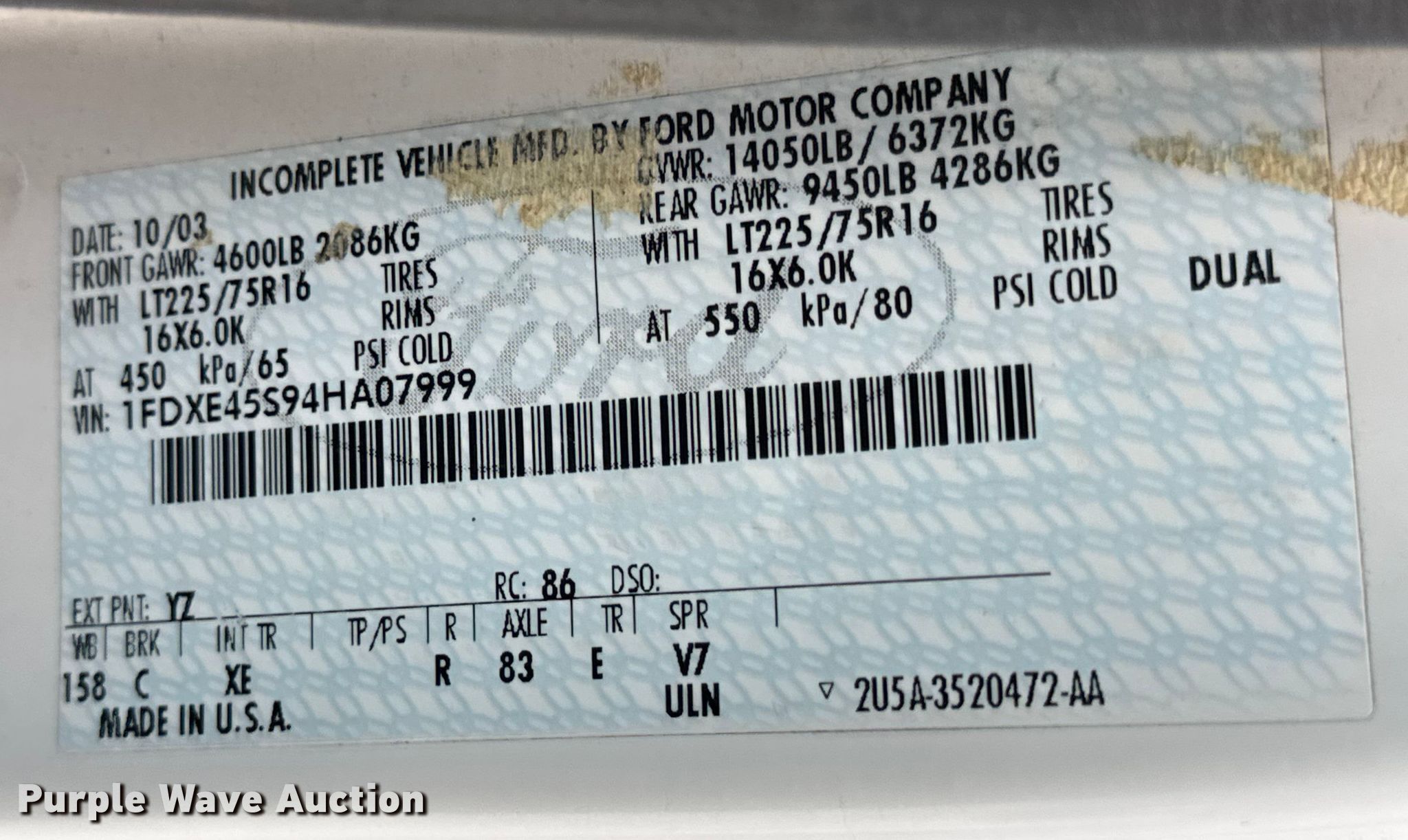 - VIN: 1FDXE45S94HA07999