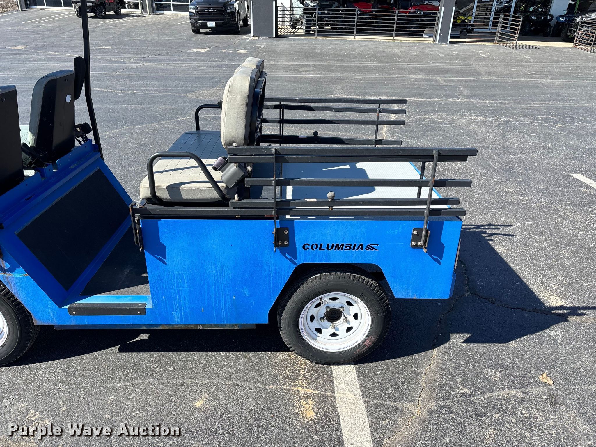 Columbia BC2-L-48 utility vehicle. VIN: B2LE4-4VS0287. Electric Motor Columbia Serial: 13776, Volts: 48. Transmission Automatic. Operators station Canopy. Features Convertible bed 76" L x 45" W. Tires Size: 5.80-12. Notes Non-operational parking brake issues, does not engage. Transfer of ownership documentation will be a bill of sale. Clear Creek Golf Car & Utility Vehicles, LLC. Ozark, MO 65721