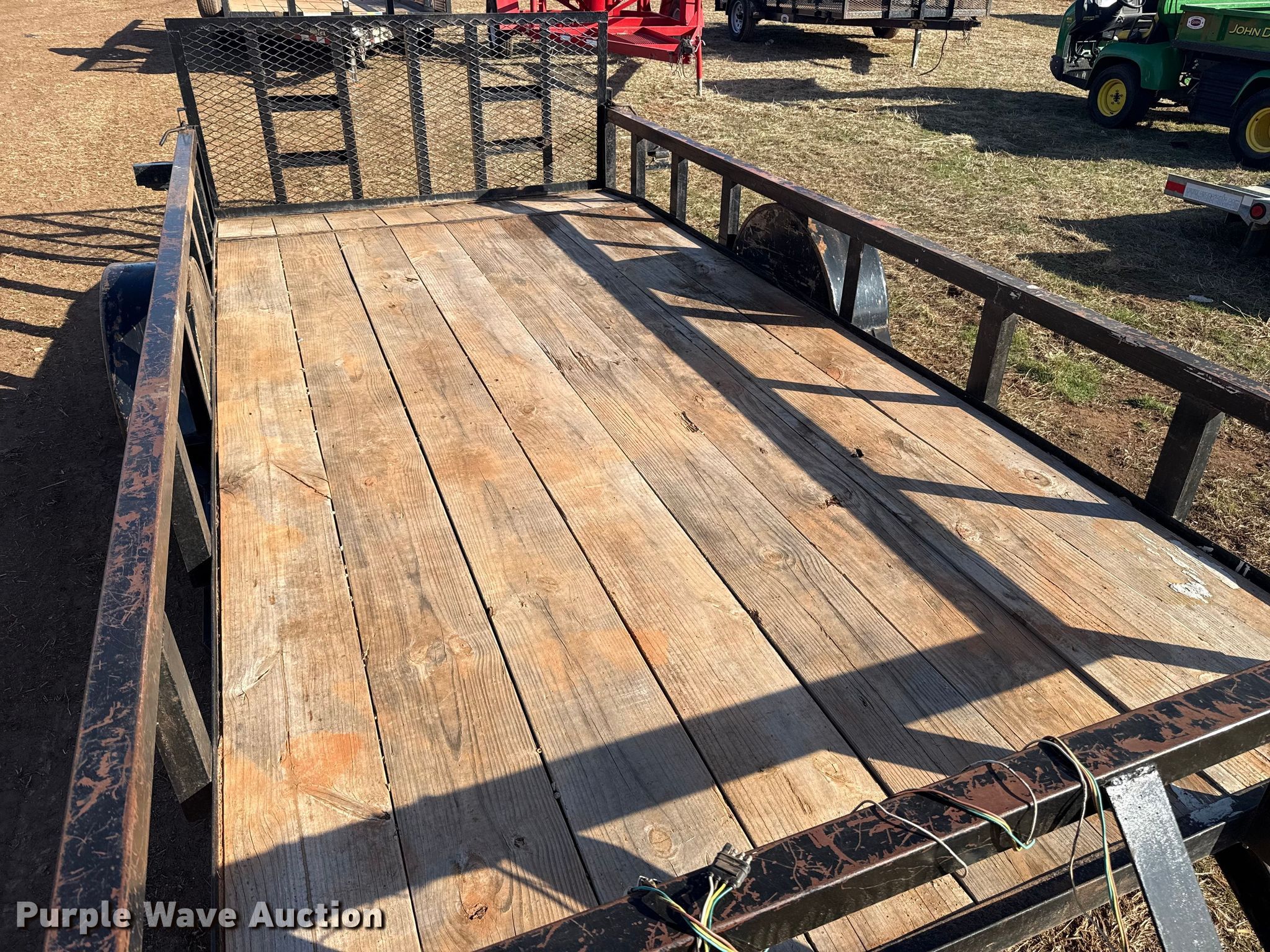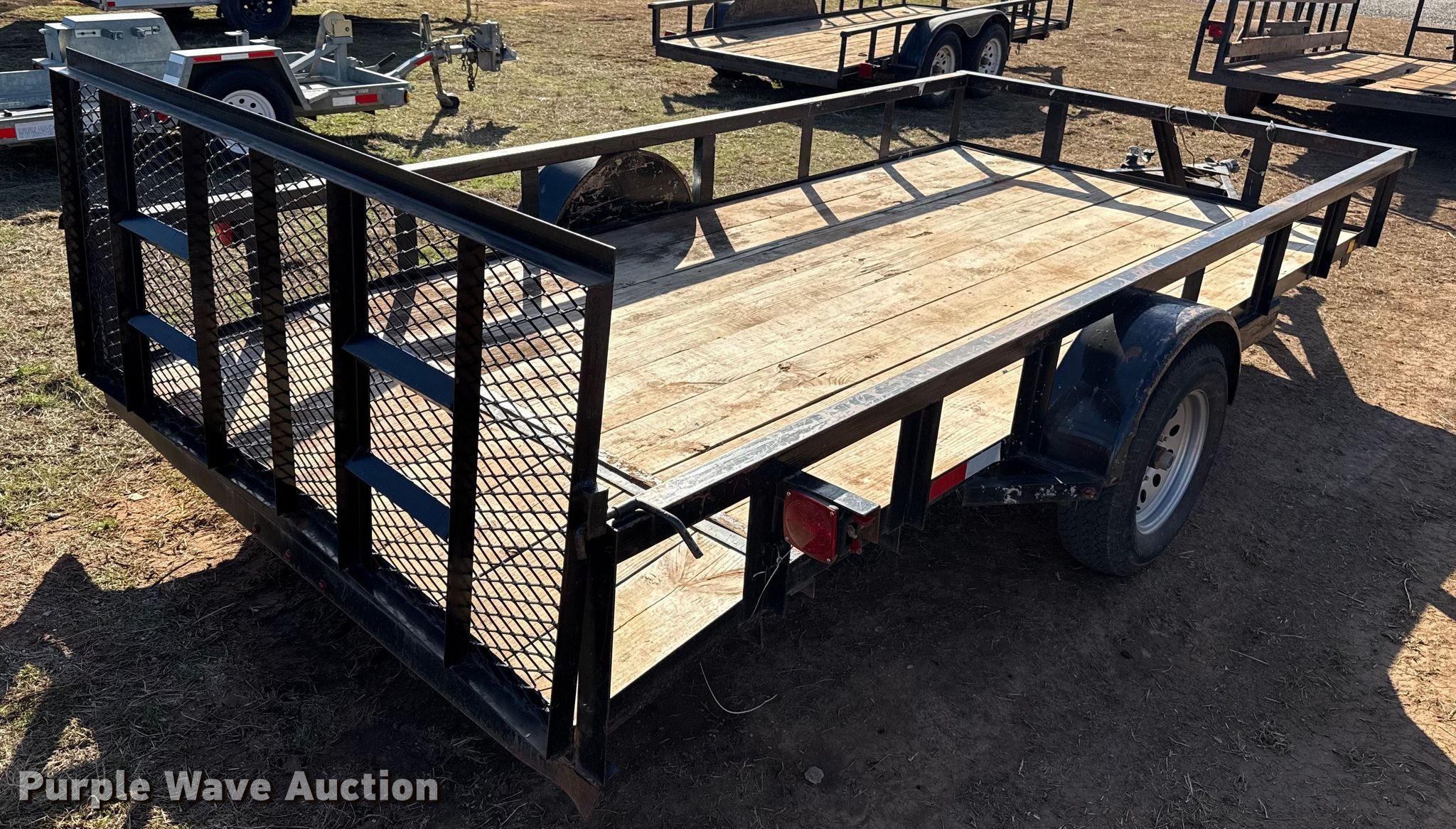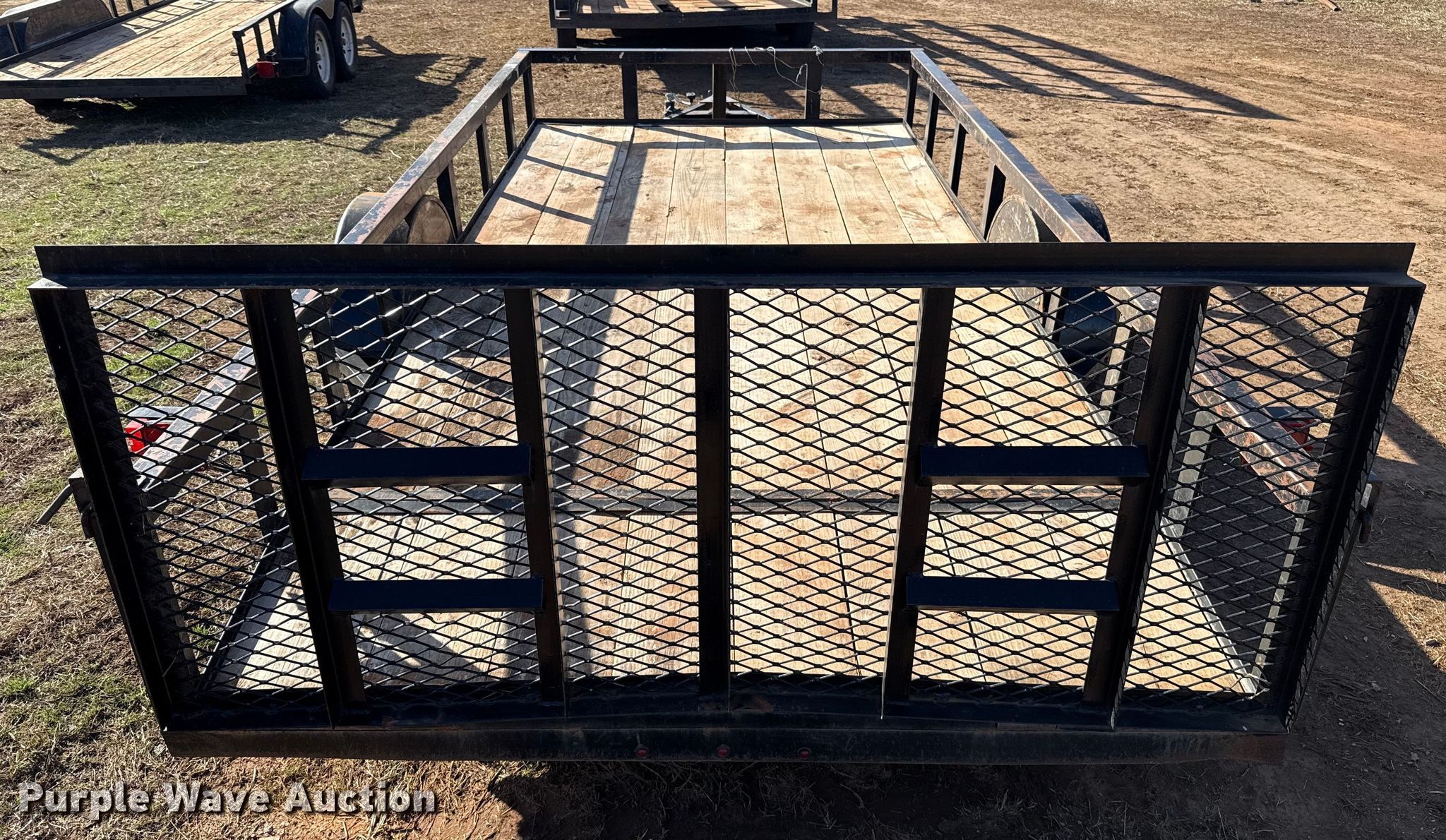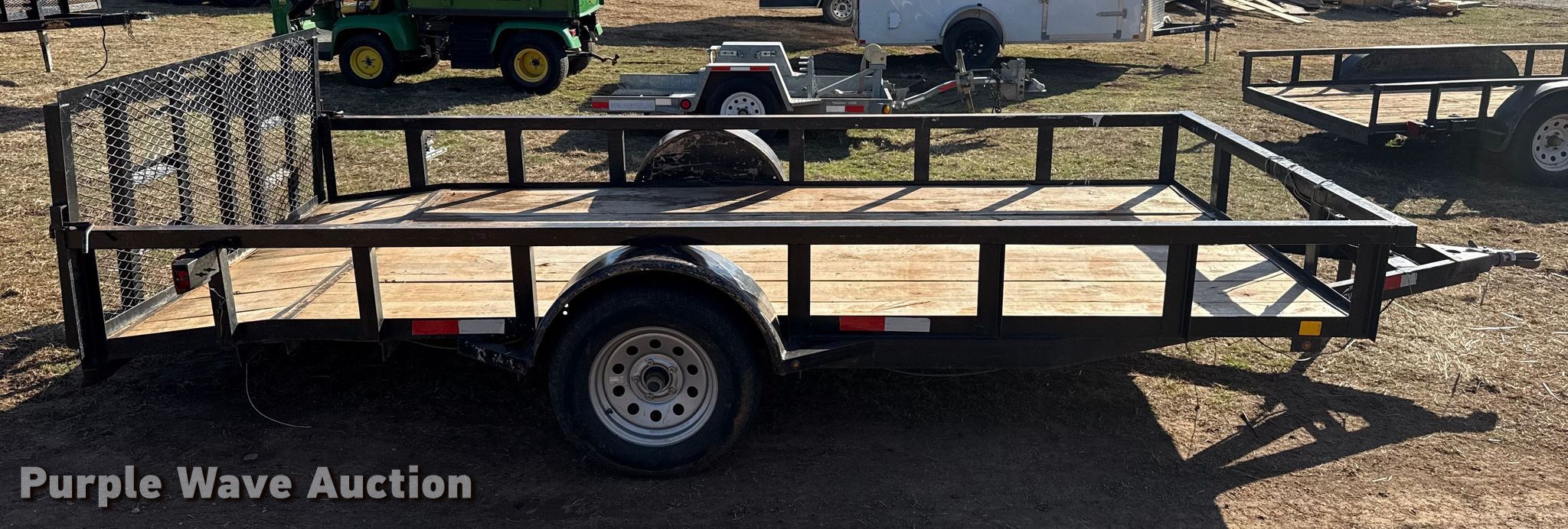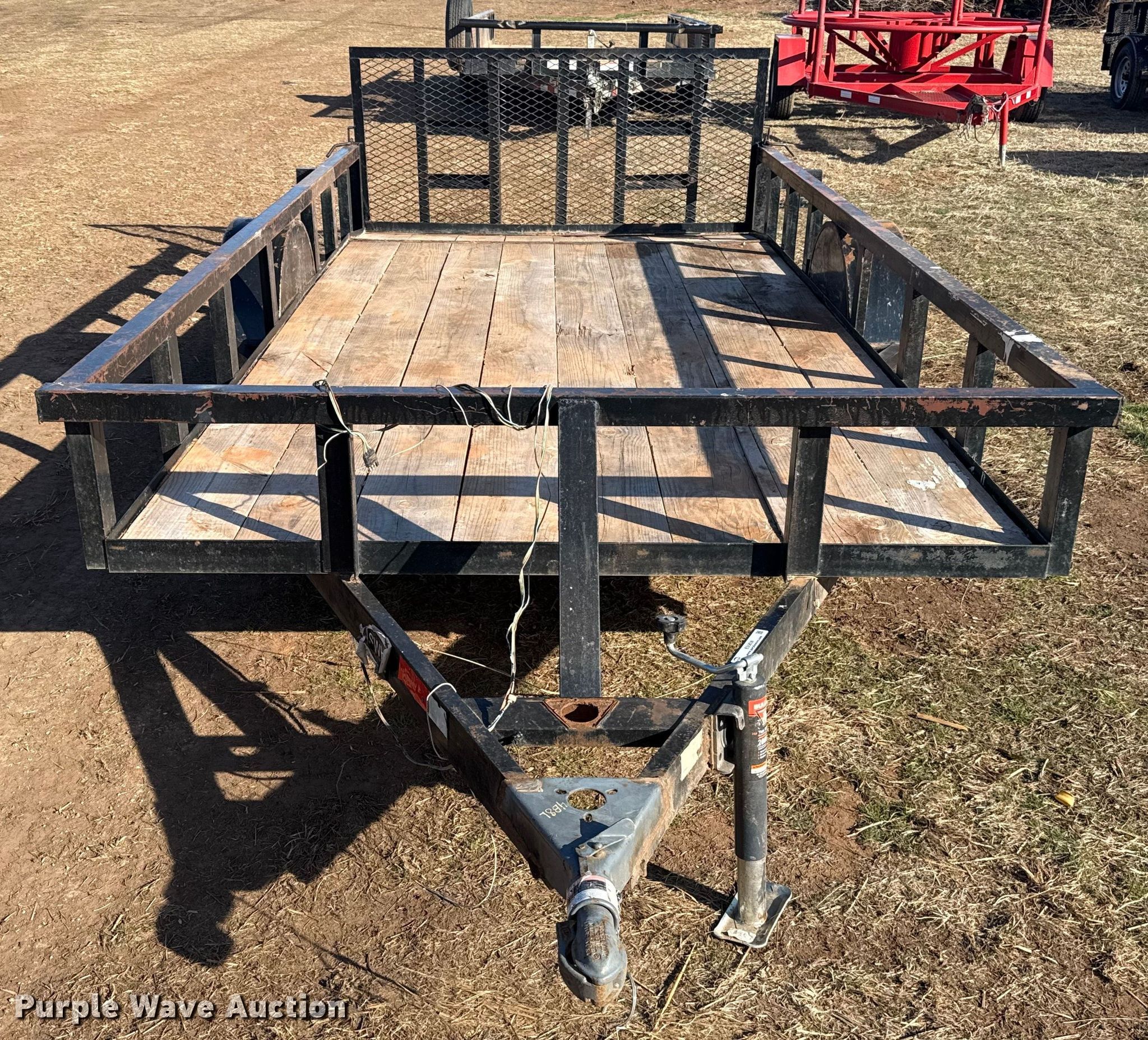 Purple Wave is selling a used Car or Utility Trailer in Oklahoma. This item is a Shop built utility trailer with the following: Overall, Length: 18', Width: 96", Deck, Length: 12', Width: 77", Side height: 14", Tail length: 2', Ramps: Manual, Length: 34"