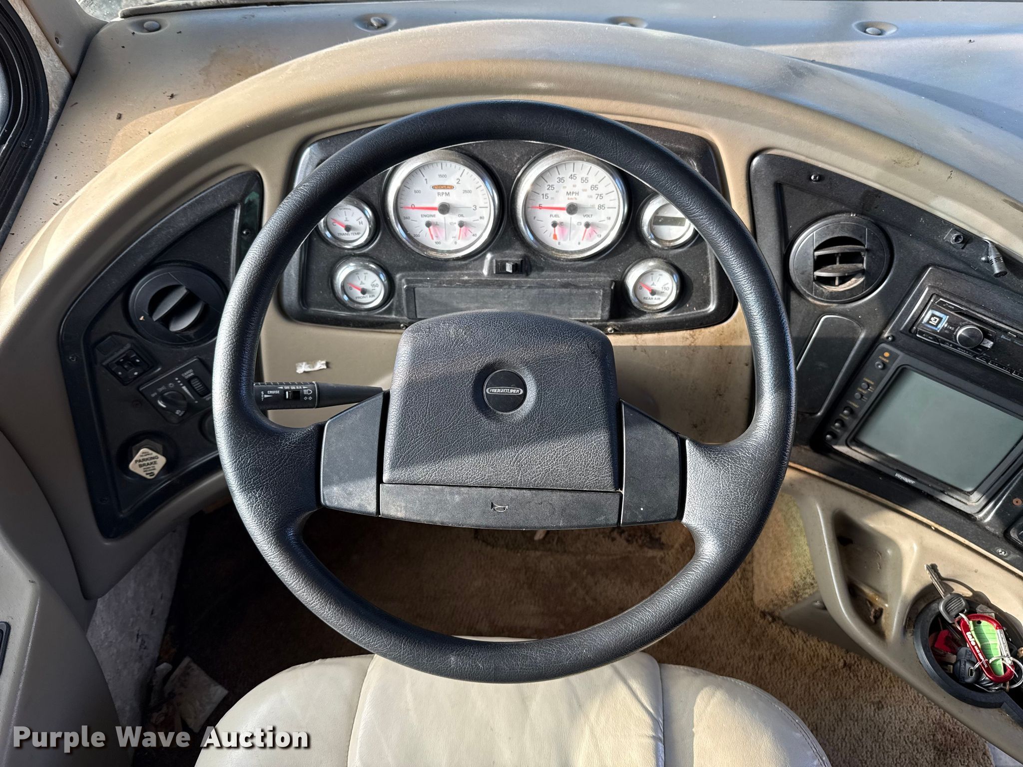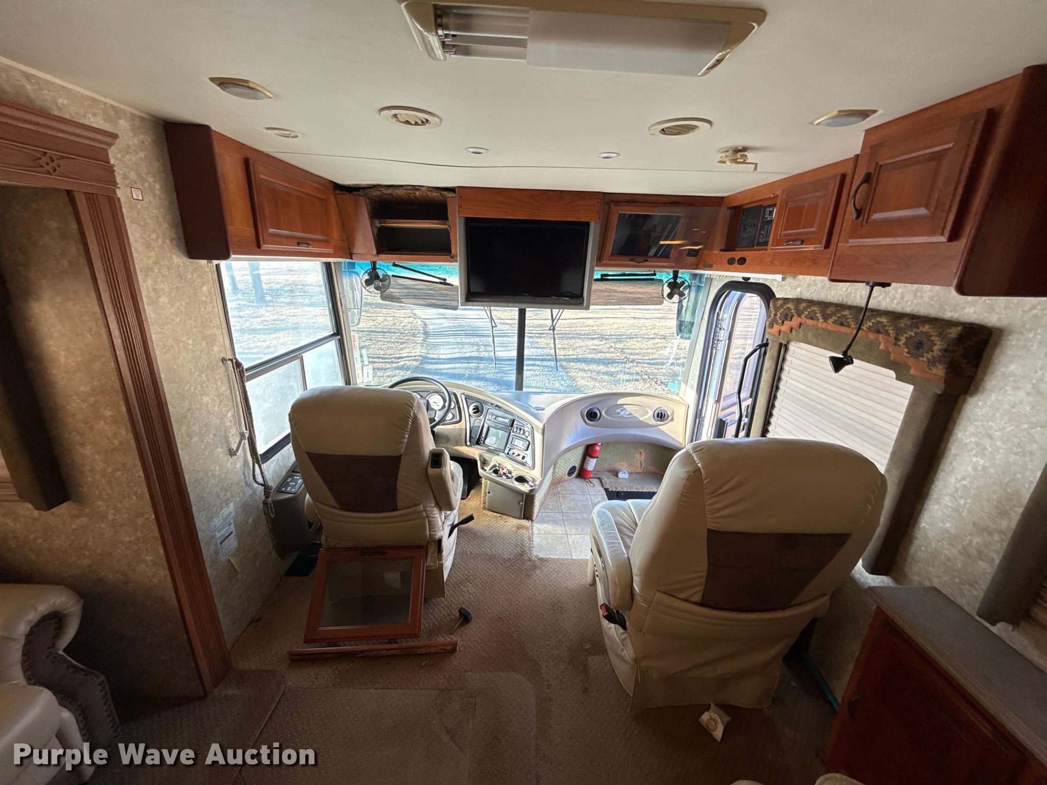 2005 Coachman Encore 380DS RV. Miles: 54,076 on odometer, Hours: 1,985 on meter, VIN: 4UZAAHDC55CU89419, Insurance Salvage Unit Claim #: 5-813977. Engine Caterpillar C7, Displacement: 7.2L, Cylinders: 6, Fuel type: Diesel. Transmission Allison, Automatic. Chassis Axles: Single, Suspension: Spring, Brakes: Air, GVWR: 31,000 lbs. Interior Kitchen: Sink, Refrigerator, Freezer, Microwave, Oven, Stove: Propane, Living room: Table, Couch, Pull out couch, Bathroom, Beds: 1 Bed type: Double, TVs: 1, Satellite, Sound system, Heater, AC units: 2. Features Slide outs: 2, Awnings: 1 Awning type: Manual, Generator Onan Quiet Diesel 5500, Hours: 1,984 on meter, Fuel type: Diesel, kW: 5.5, Rear hitch. Tires Size: 275/70R22.5. Notes Windshield chipped or cracked, Roof damaged, Glass cracked, Interior damaged. Oklahoma title. Title distribution may be delayed up to 14 days from verification of funds. Oklahoma Farm Bureau Insurance. Seminole, OK 74868