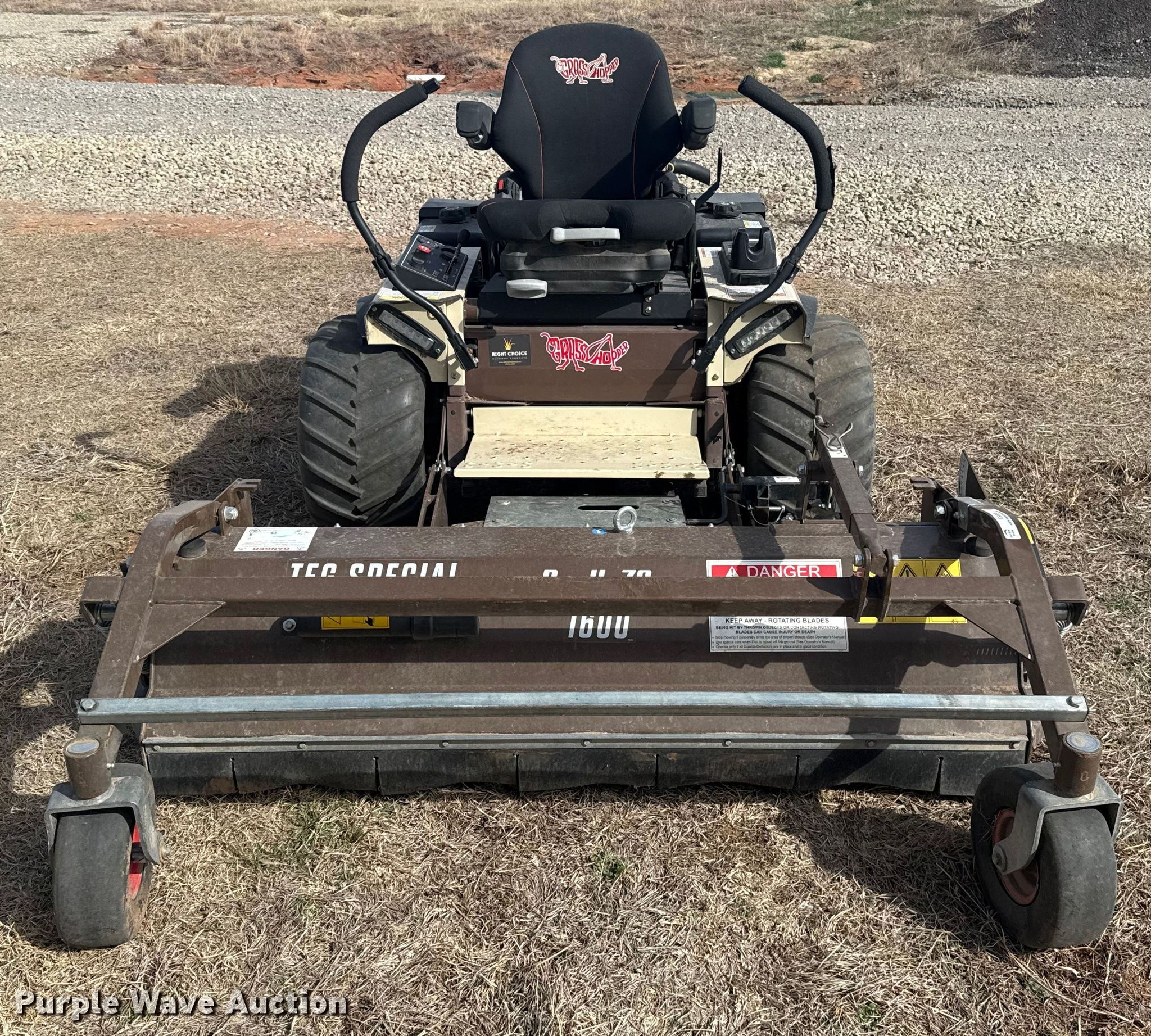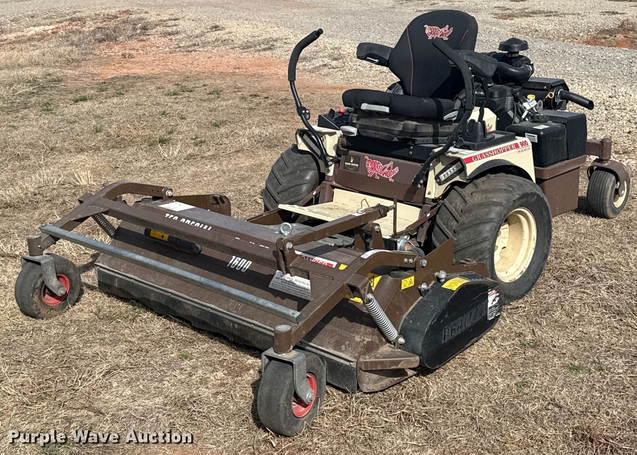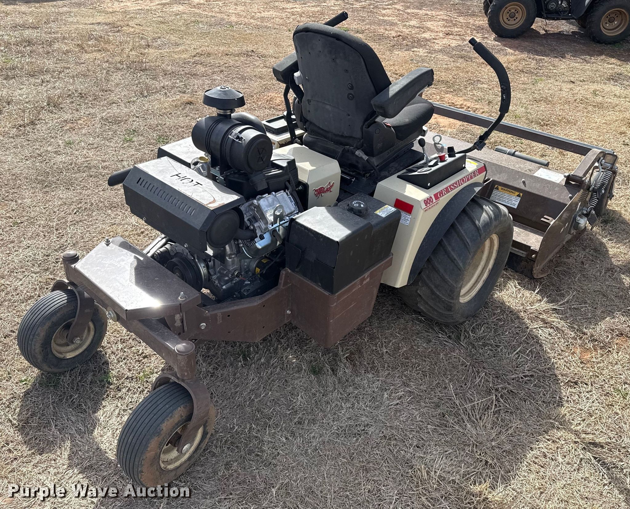 Purple Wave is selling a used Commercial Turf Mower in Oklahoma. This item is a Grass Hopper 900 ZRT flail mower with the following: Hours: 97 on meter, Cutting width: 60", Serial: 7411852