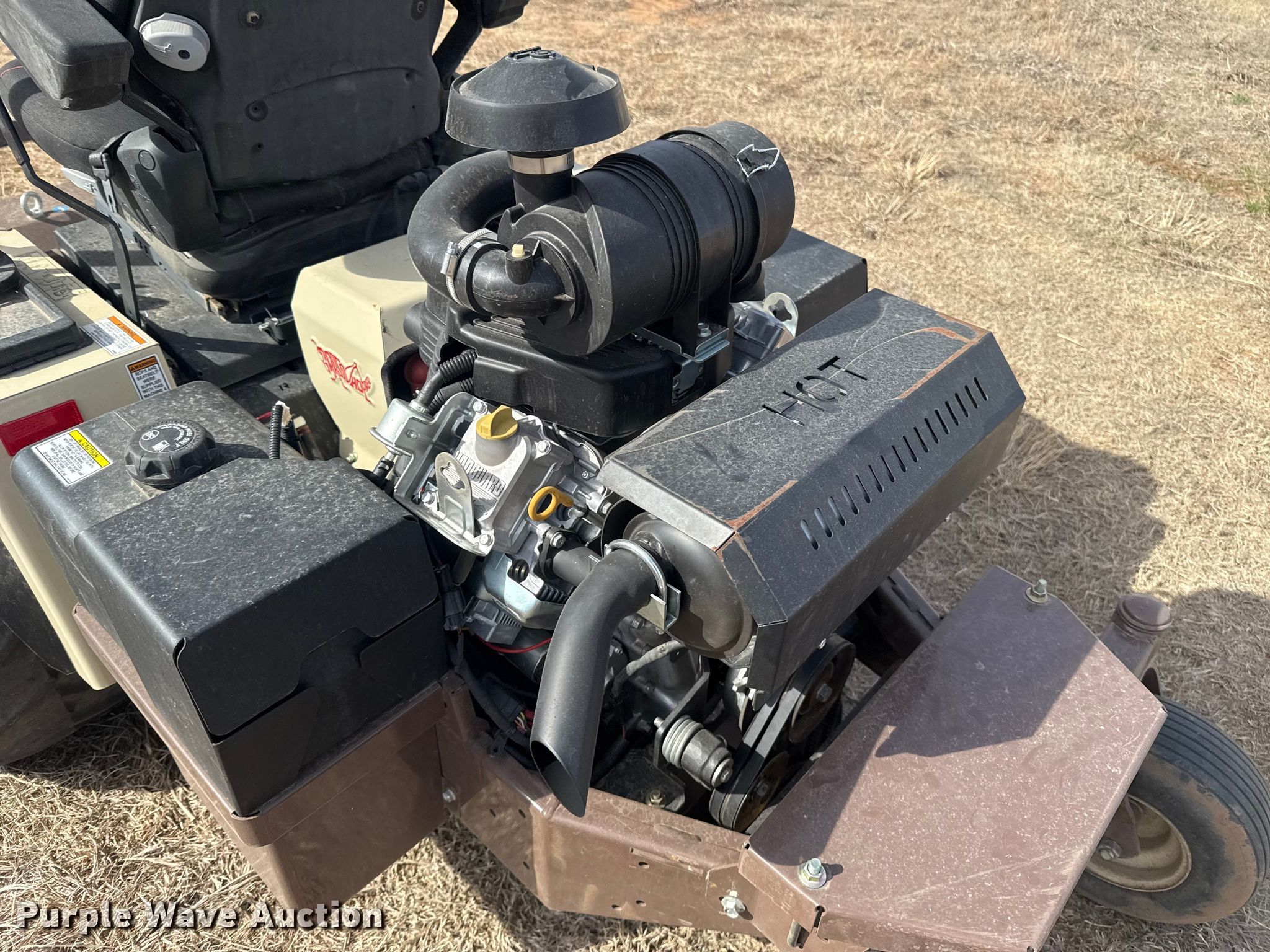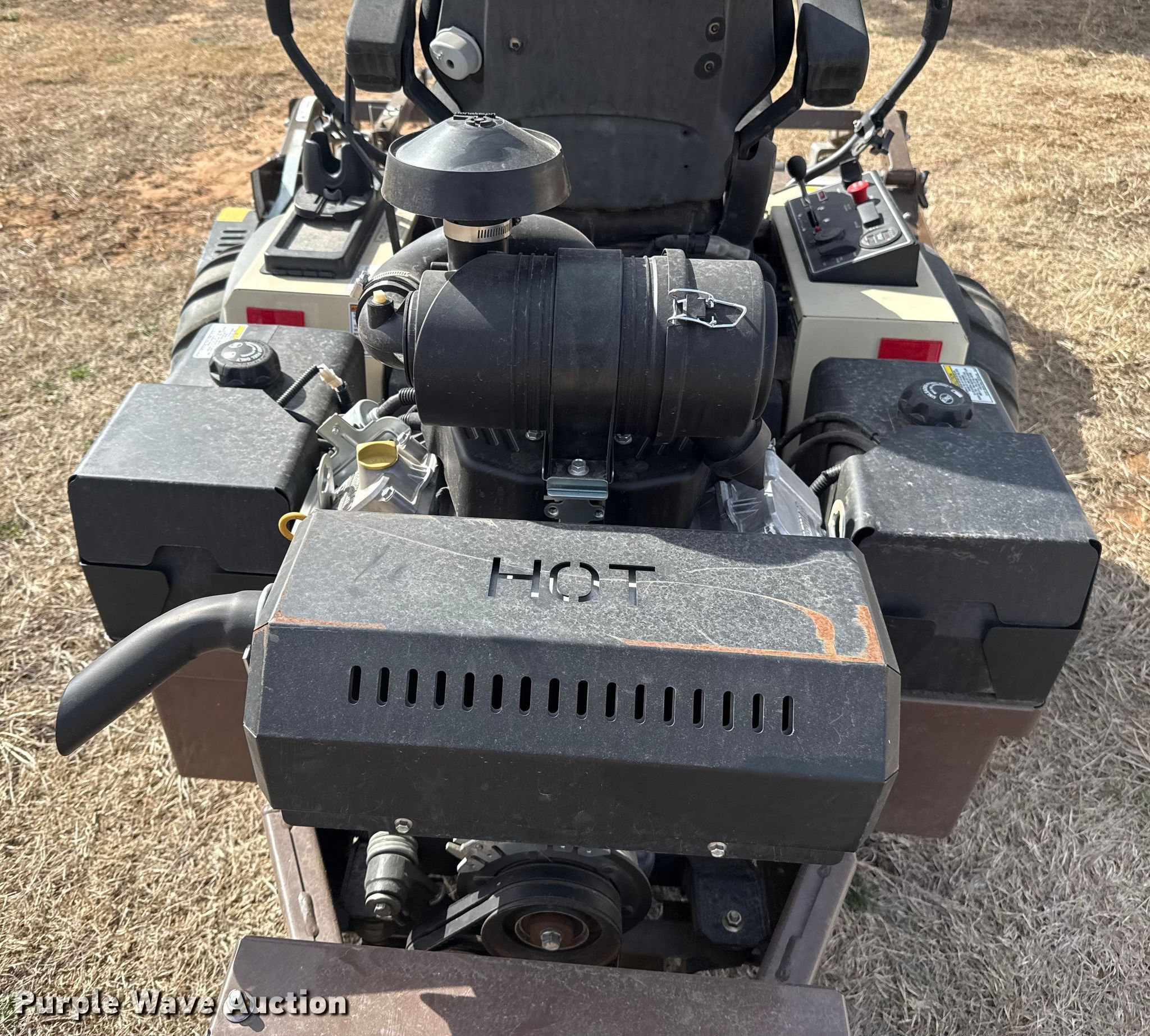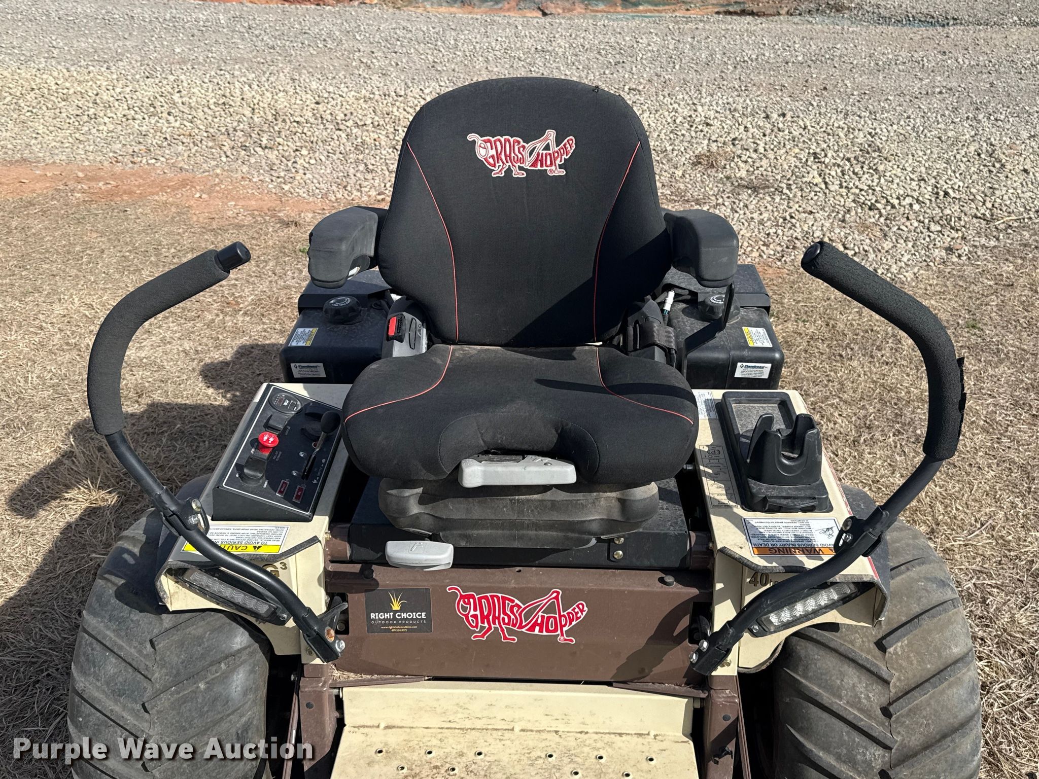 Grass Hopper 900 ZRT flail mower. Hours: 97 on meter, Cutting width: 60", Serial: 7411852. Engine Vanguard, Serial: 2405309466942, Displacement: 993 cc, Cylinders: 2, Fuel type: Gas, HP: 40. Transmission Hydrostatic. Chassis PTO. Features Peruzzo TEG 1600, Hydraulic front deck lift. Tires Front: 24X12.00-12, Rear: 13X6.50-6/4.50. A&B Eco-Safe Pest Control Inc.. Stillwater, OK 74074