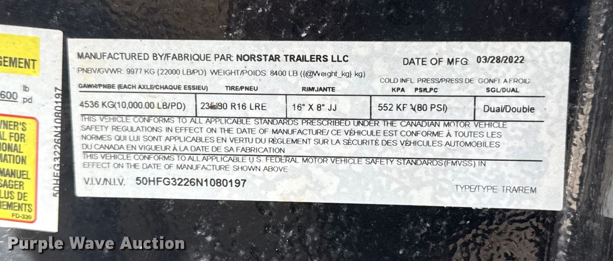 Take a look at this used 2022 Norstar Trailers LLC Iron Bull hydraulic tail equipment trailer being sold on March 25th, 2026 in the Wednesday March 25 Vehicles and Equipment Auction made by Norstar Trailers LLC. Take a look at all of the item information below or take a look at similar auctions for Trailers.