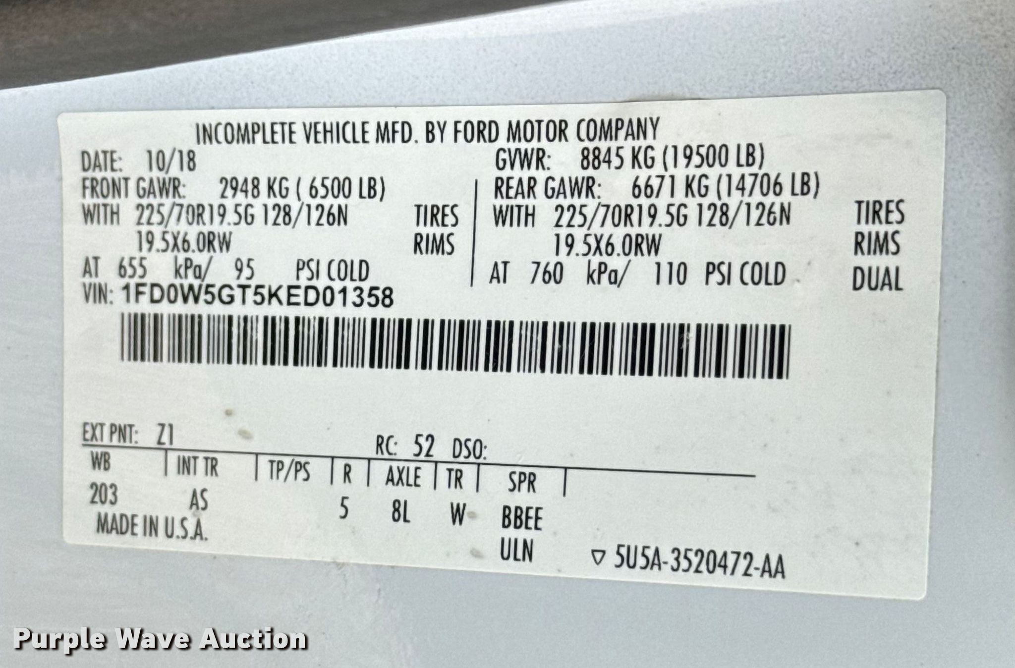 • VIN: 1FD0W5GT5KED01358