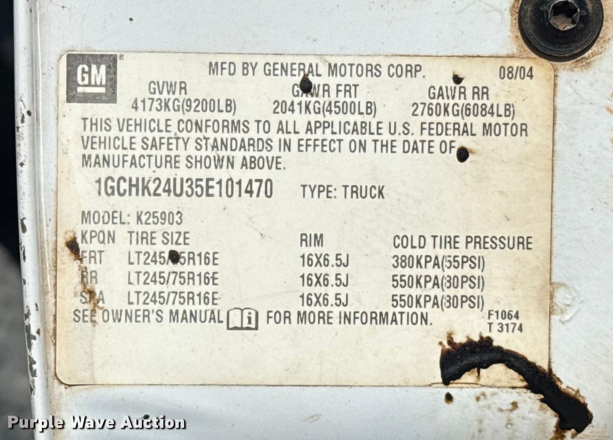 Purple Wave is selling a used 3/4 or 1 Ton Pickup or Van in Oklahoma. This item is a 2005 Chevrolet Silverado 2500HD flatbed pickup truck with the following: Miles: Unknown, VIN: 1GCHK24U35E101470