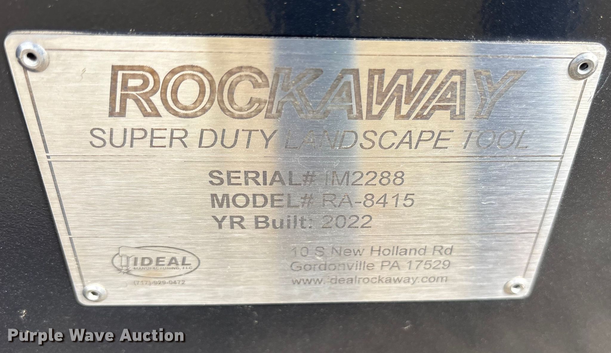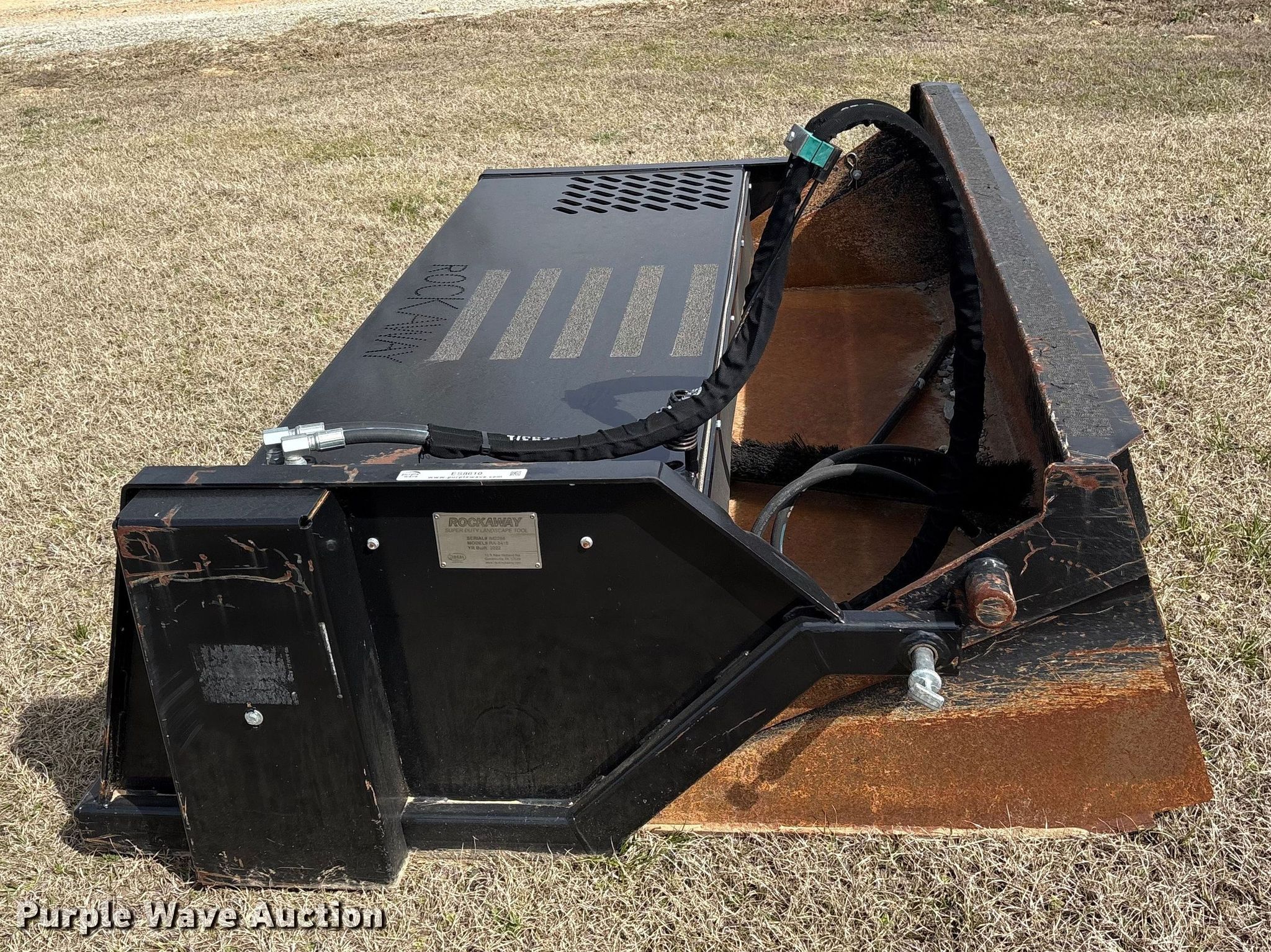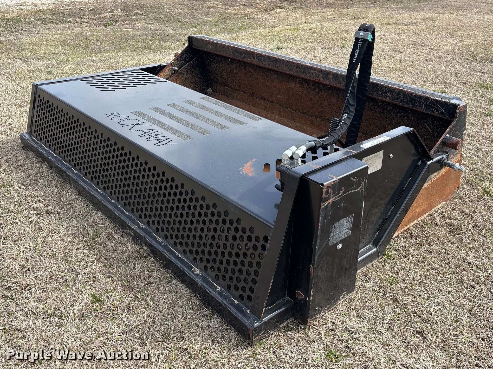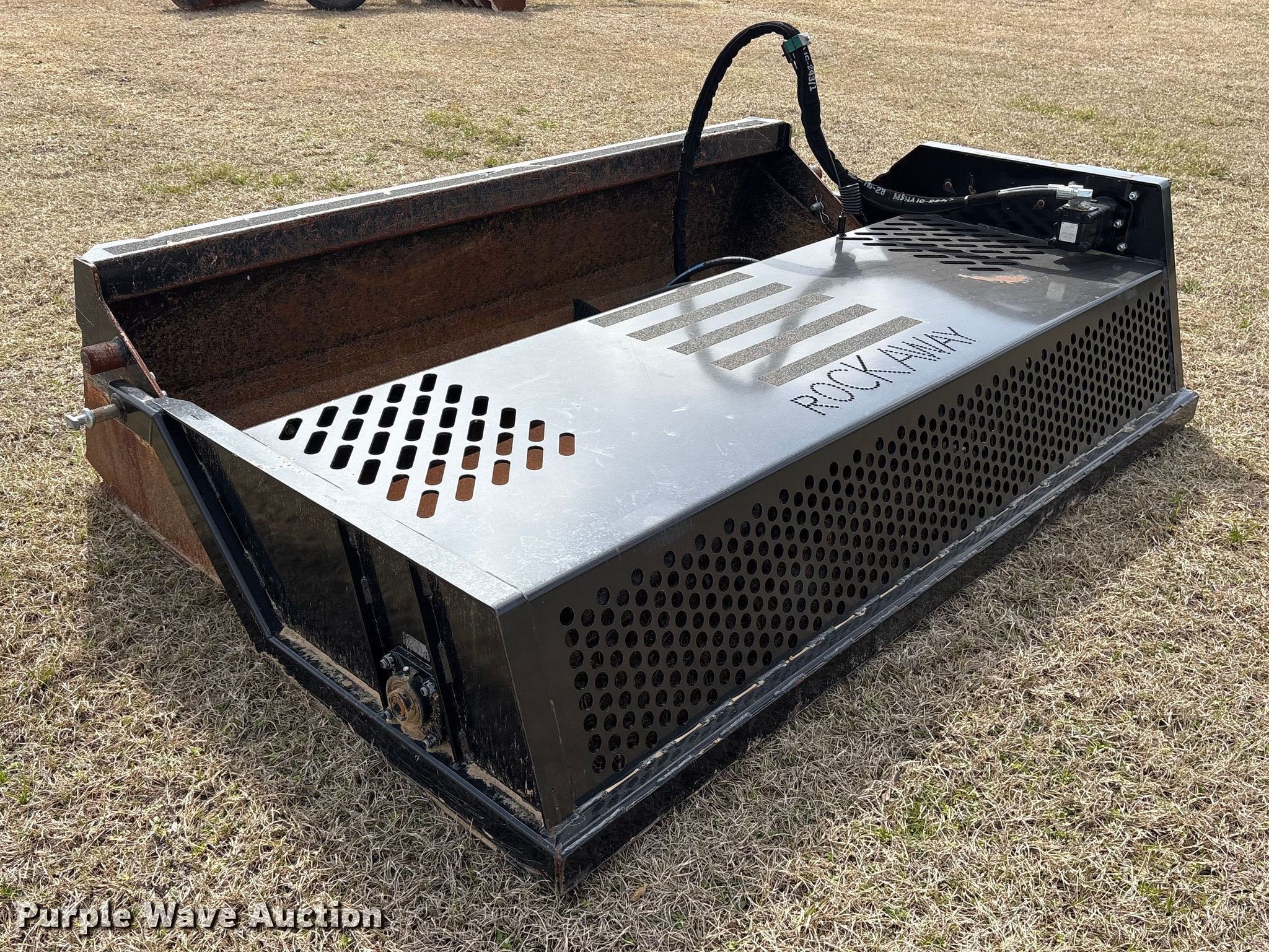 Purple Wave is selling a used Skid Steer Attach. in Oklahoma. This item is a 2022 Rockaway RA-8425 skid steer rock picker with the following: Serial: IM2288, Width: 84"