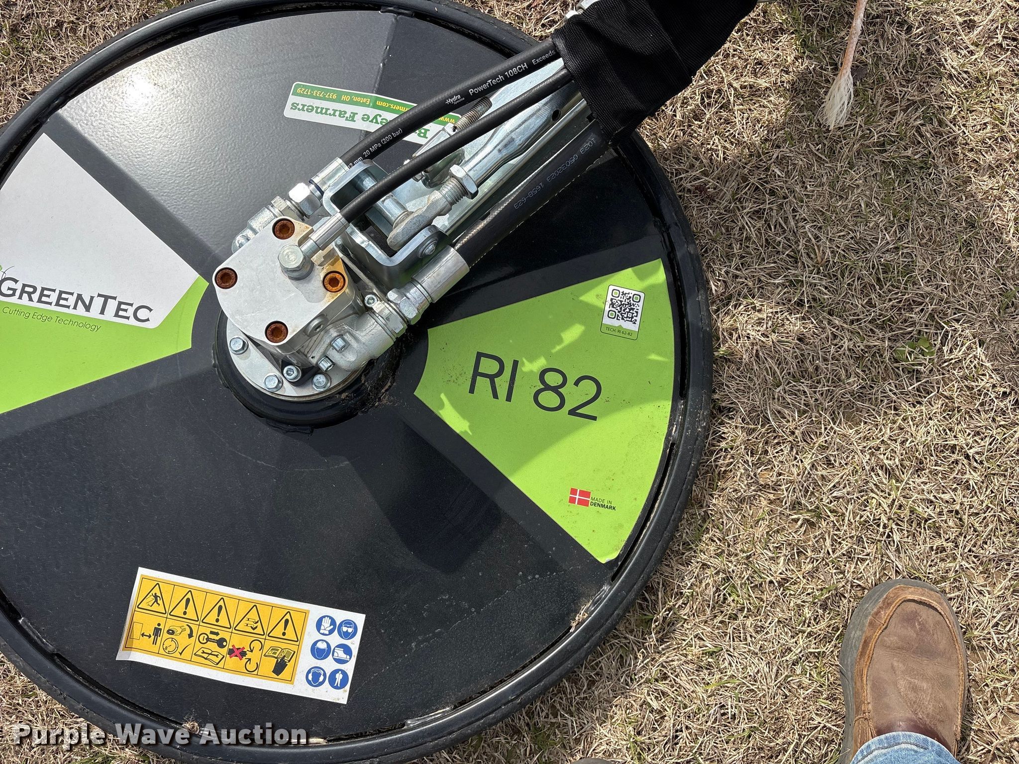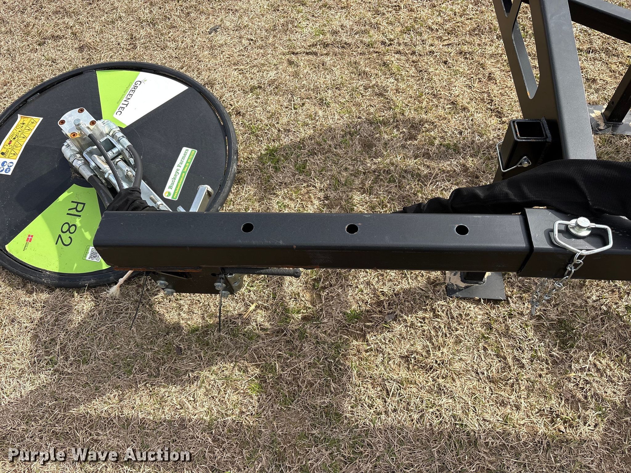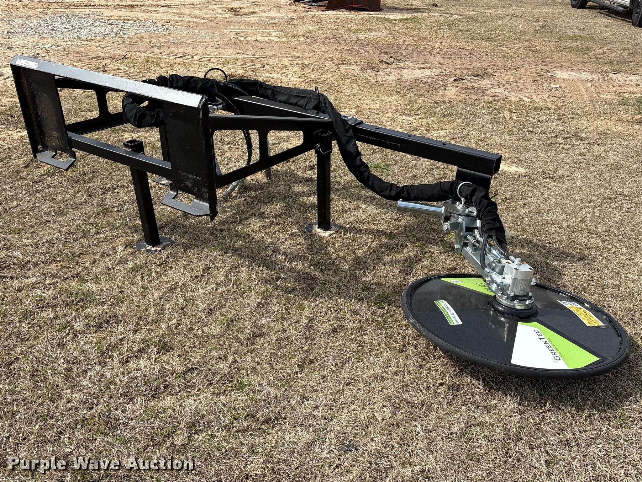 Purple Wave is selling a used Skid Steer Attach. in Oklahoma. This item is a 2025 Greentec RI82 skid steer fence row mower with the following: Serial: 225889303, Width: 32"