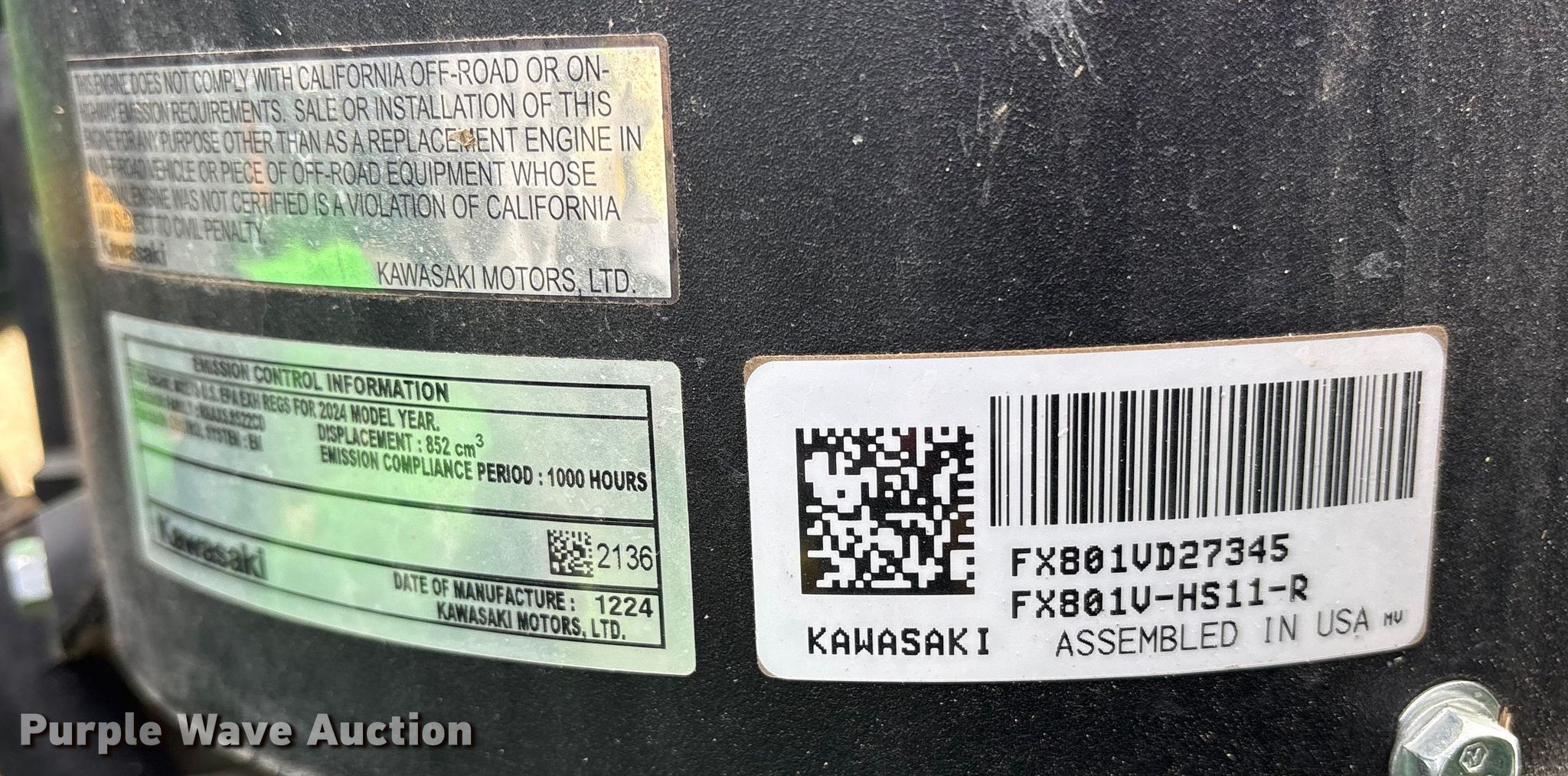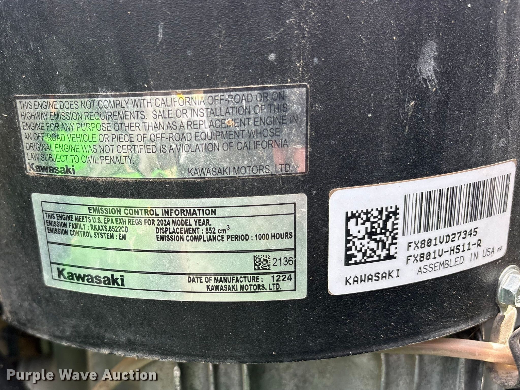 2024 John Deere Z930M ZTR lawn mower. Hours: 337 on meter, Cutting width: 60", Serial: 1TC930MCVRS142018. Engine Kawasaki FX801V, Displacement: 852 cc, Cylinders: 2, Fuel type: Gas. Transmission Hydrostatic. Operators station OROPS. Tires Front: 13x6.50-6/4.50, Rear: 24x12.00-12. Bennington, OK 74723