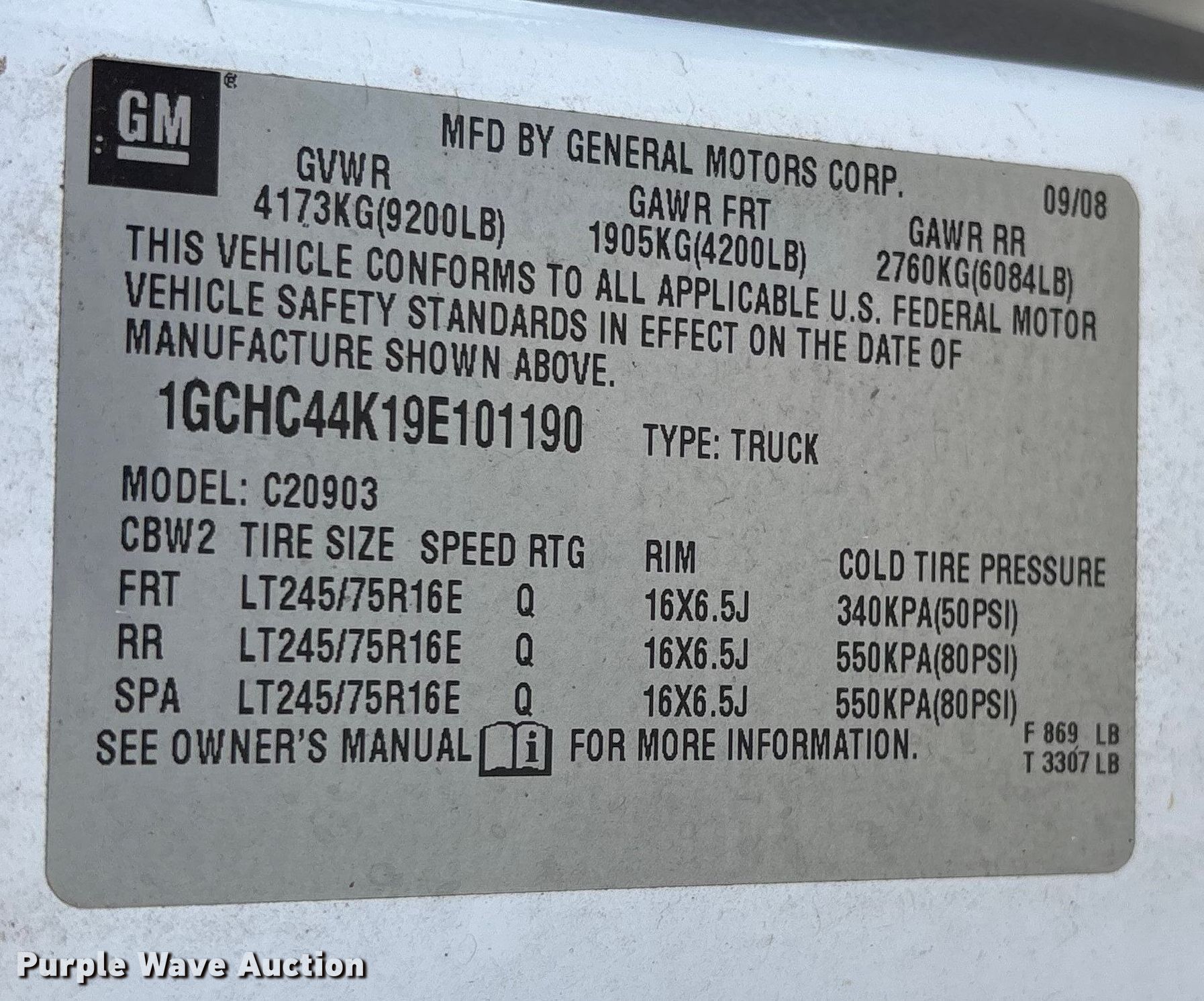 2009 Chevrolet Silverado 2500HD utility bed pickup truck. Miles: 140,177 on odometer, VIN: 1GCHC44K19E101190, Unit #: 23. Engine Displacement: 6.0L, Cylinders: 8, Fuel type: Gas. Transmission Automatic. Interior AC, Heat, Cruise control, Brake controller. Features Bed Utility bed, CM Truck Beds CMG9878VVSS, Serial: DB28236, Length: 8' 3", Width: 6' 8". Tires Size: 245/75R16. Notes Dash warning indicator: TPMS, Windshield chipped or cracked, Jump start required during on-site data collection, Non-operational headlights, Unit must be towed hauled , Possible rear end issues. Texas title. Title distribution may be delayed up to 14 days from verification of funds. Texoma Housing Partners. Bohnam, TX 75418