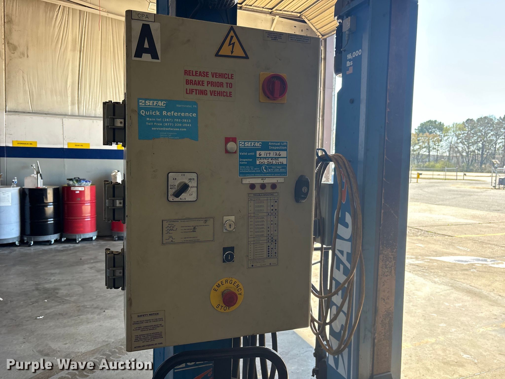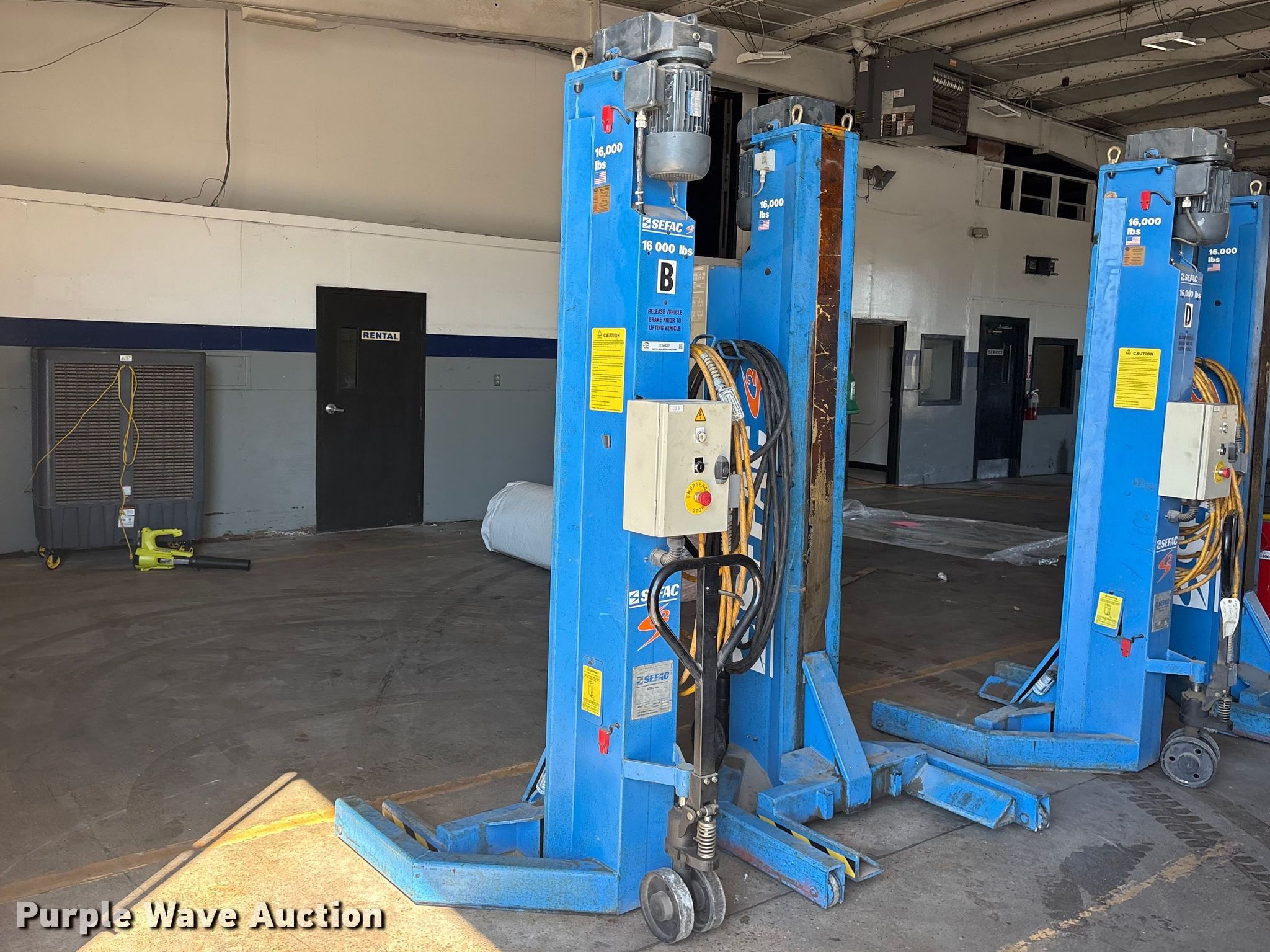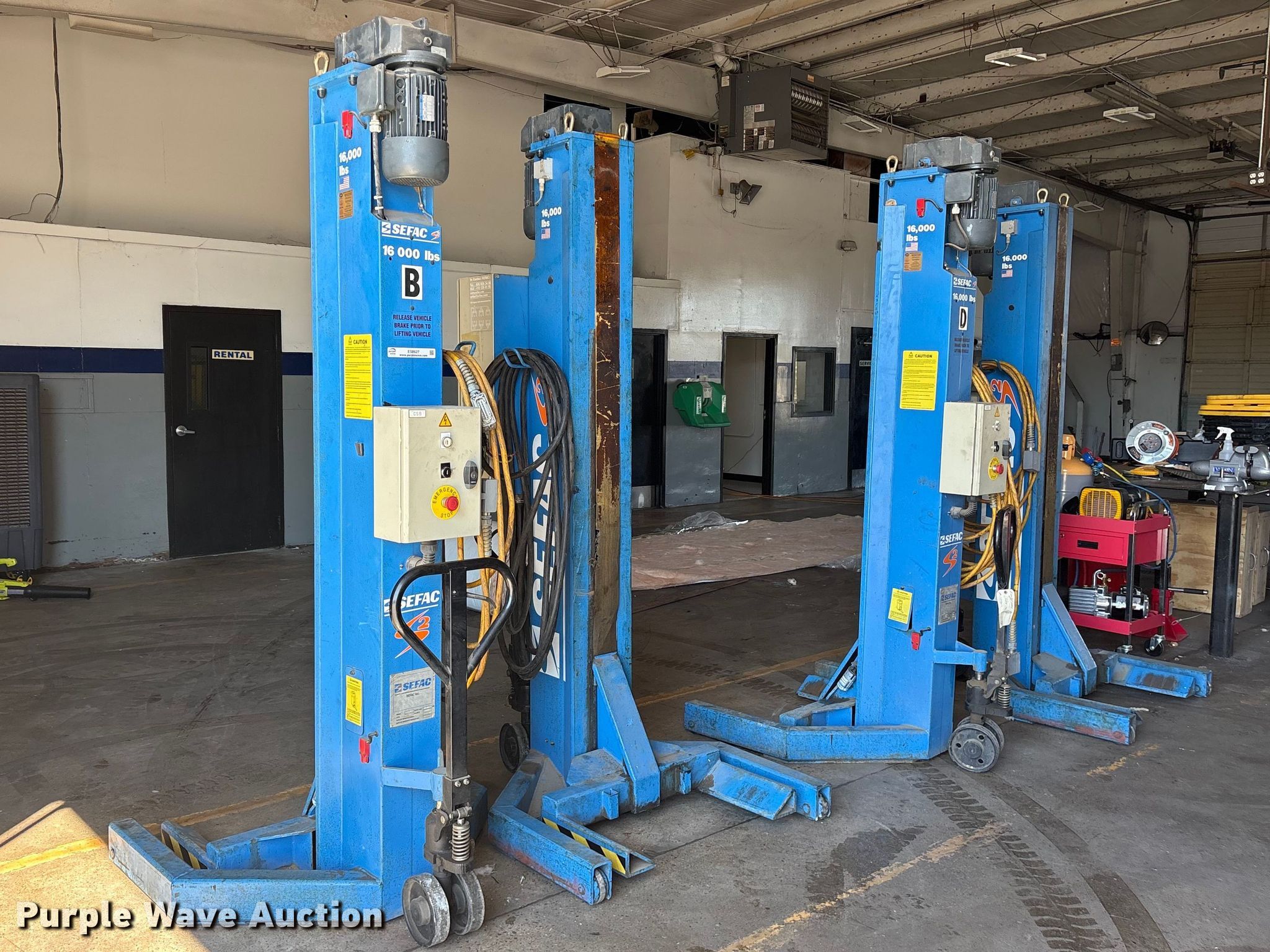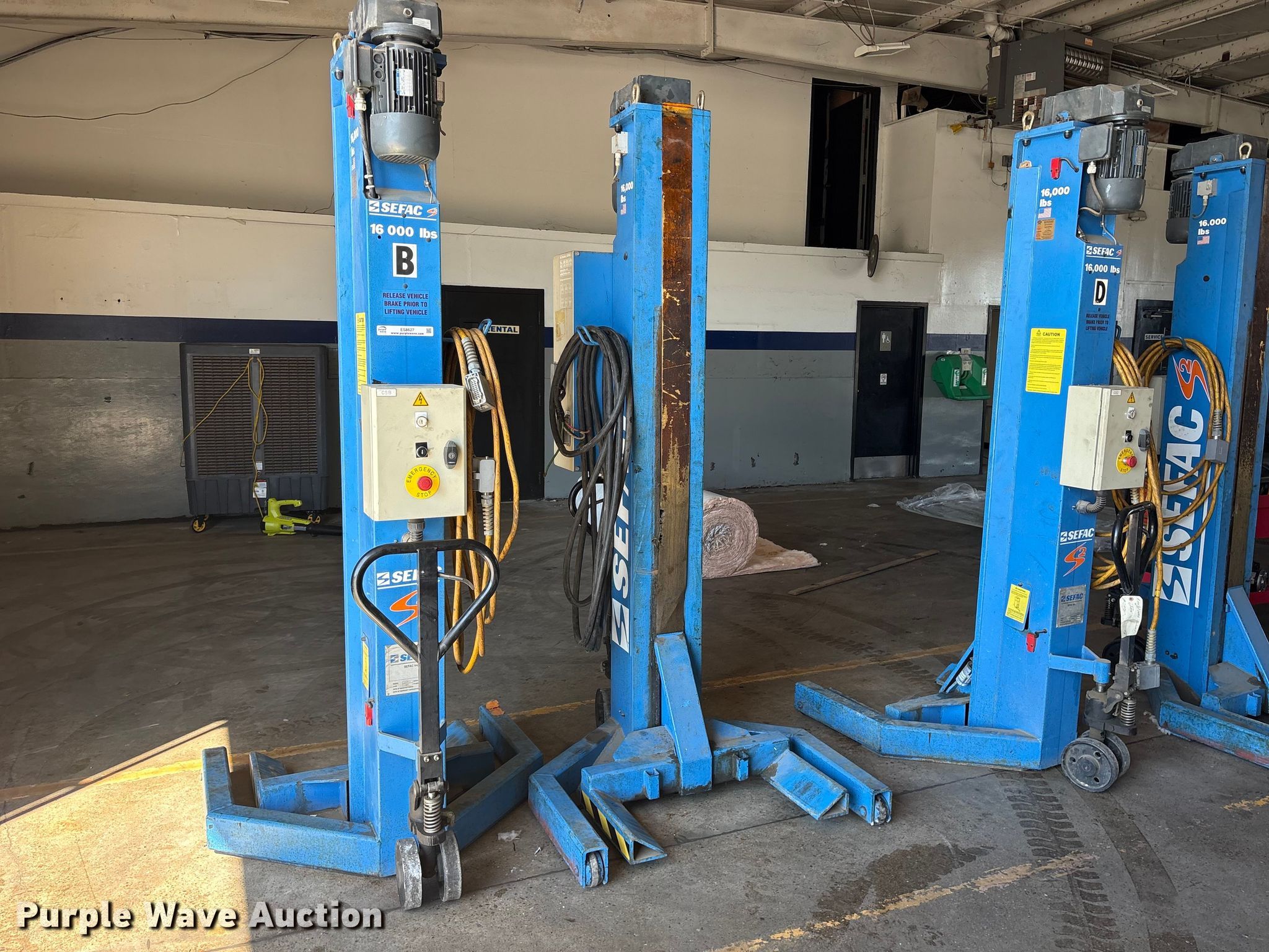 Purple Wave is selling a used Tools in Louisiana. This item is a (4) 2007 Sefac 1200M72 automotive lift with the following: Serial: 49783, 49784, 49785, 49786