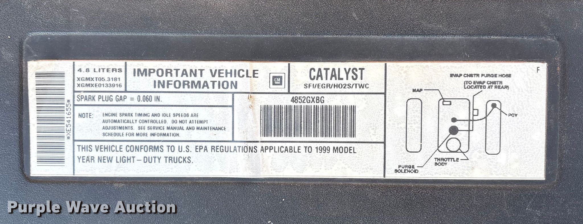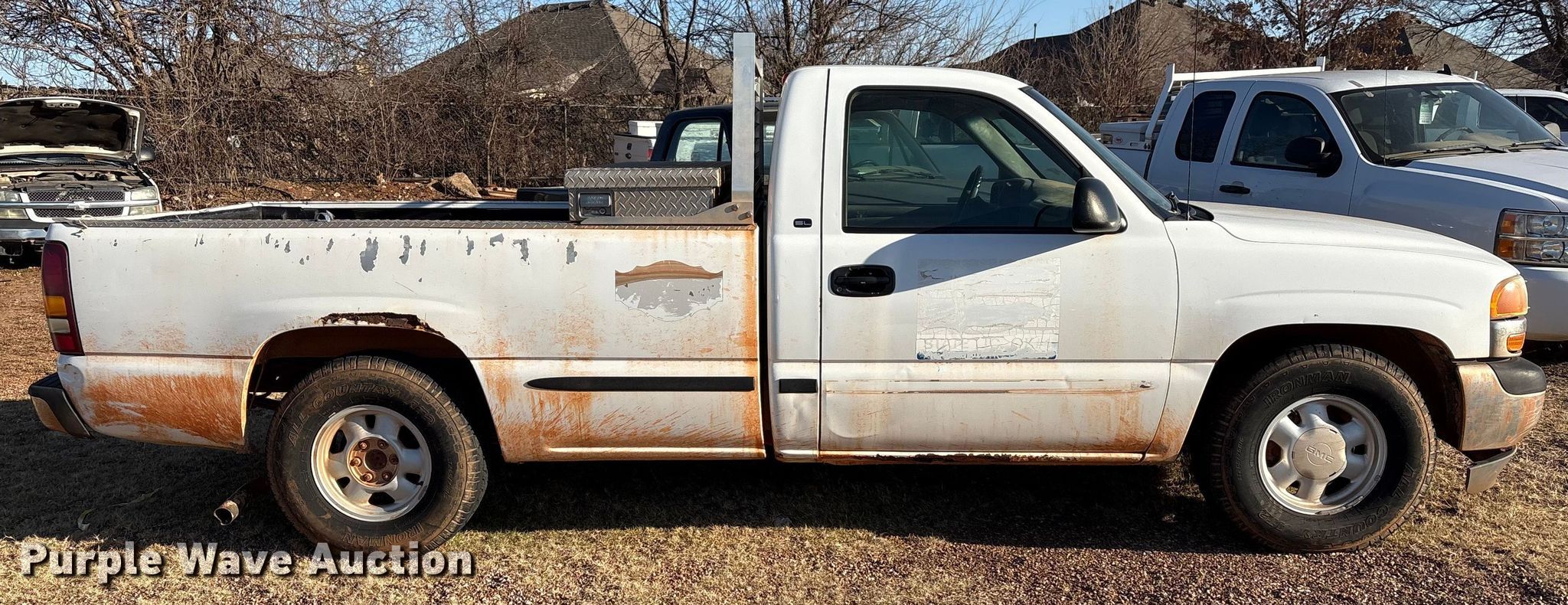 1999 GMC Sierra 1500 pickup truck. Miles: 230,754 on odometer, VIN: 1GTEC14V4XE541655. Engine Displacement: 4.8L, Cylinders: 8, Fuel type: Gas. Transmission Automatic. Interior AC, Heat, Power locks, Cruise control. Tires Size: 265/75R16. Notes Dead battery, Toolbox key missing, Ignition switch damaged, Unit must be towed or hauled, Contents included, Unknown operating condition. Oklahoma title. Title distribution may be delayed up to 14 days from verification of funds. Bob Howard Collision Center - Open House Feb 24th from 9:00 A.M. - 3:00 P.M.. 3700 South Broadway. Edmond, OK 73013