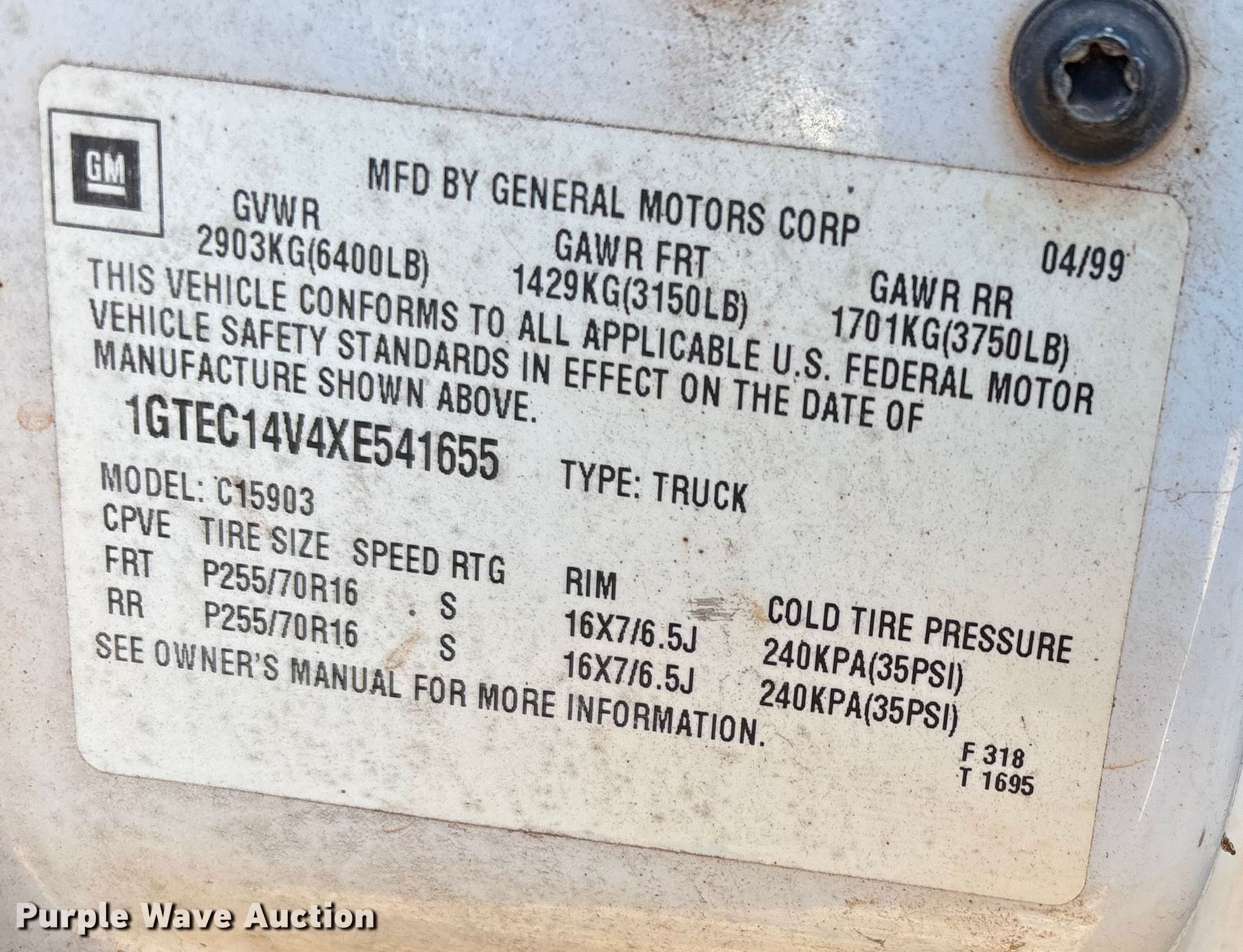 - VIN: 1GTEC14V4XE541655