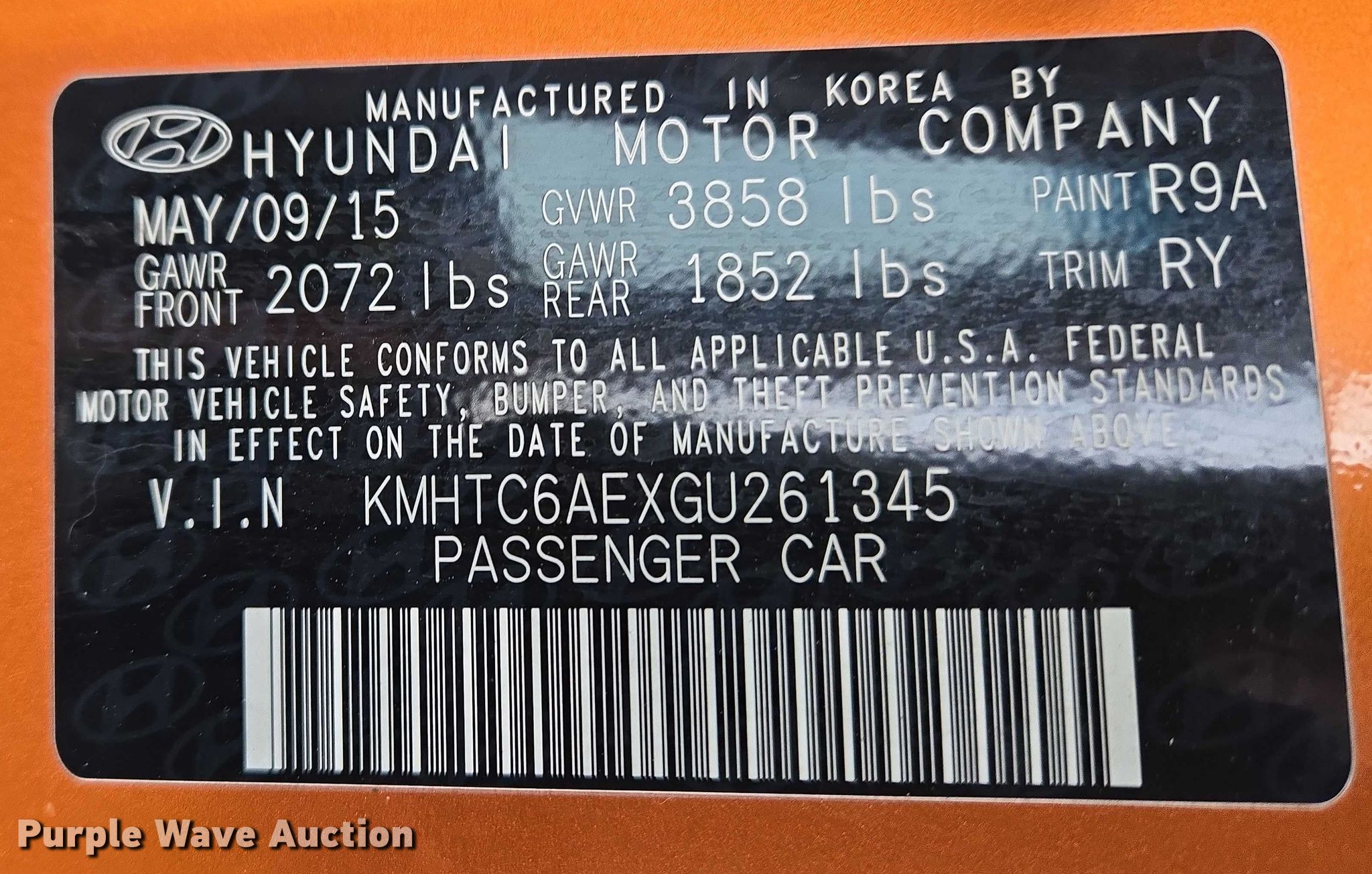 Purple Wave is selling a used Passenger Vehicle in Oklahoma. This item is a 2016 Hyundai Veloster Turbo with the following: Miles: 55,465 on odometer, VIN: KMHTC6AEXGU261345
