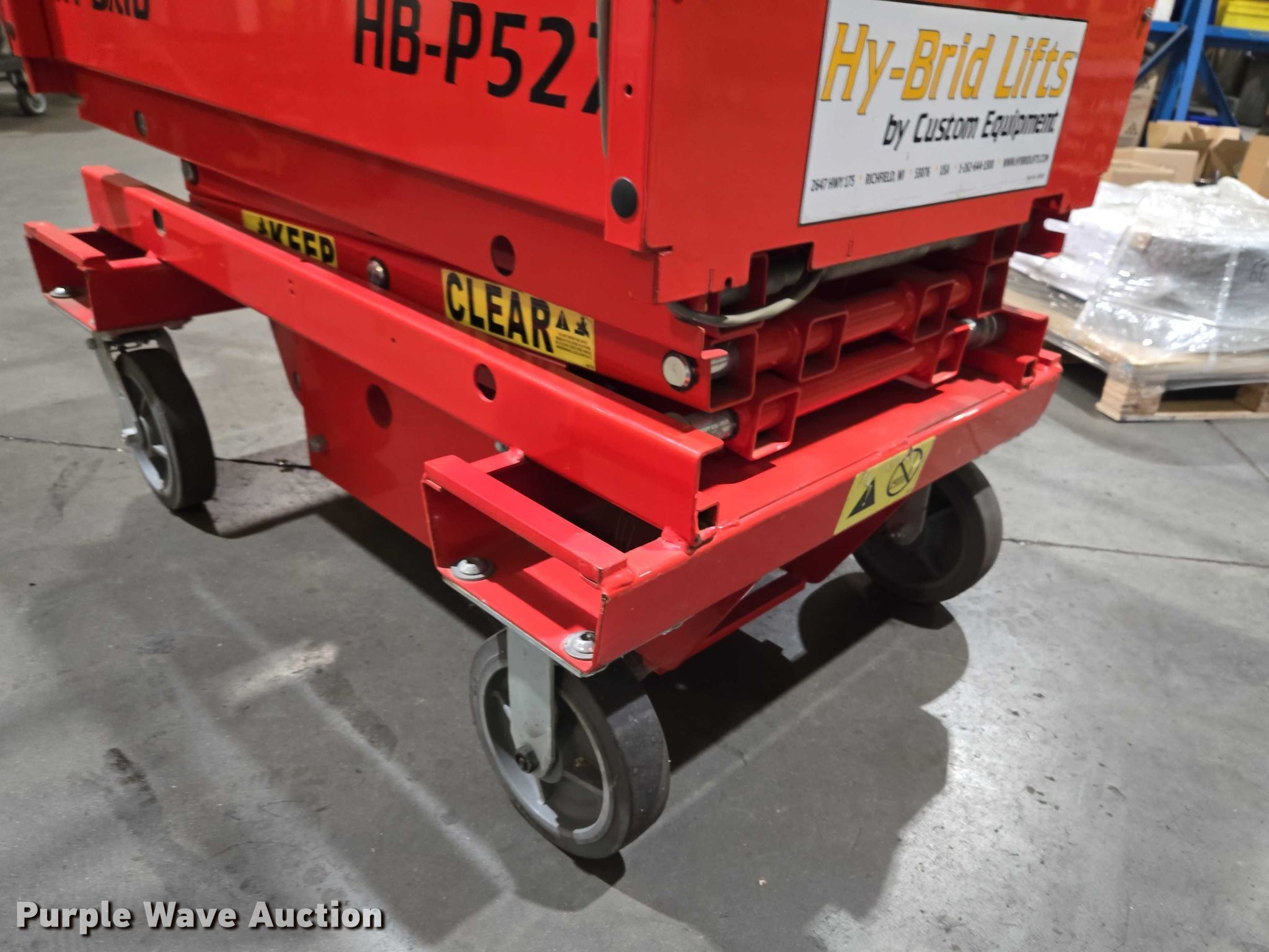 Purple Wave is selling a used Scissor or Vertical Lift in Wisconsin. This item is a 2015 Hy-Brid HB-P527 scissor lift with the following: Hours: Unknown, Serial: D04-10007