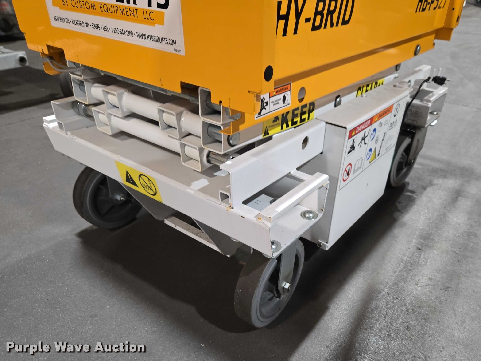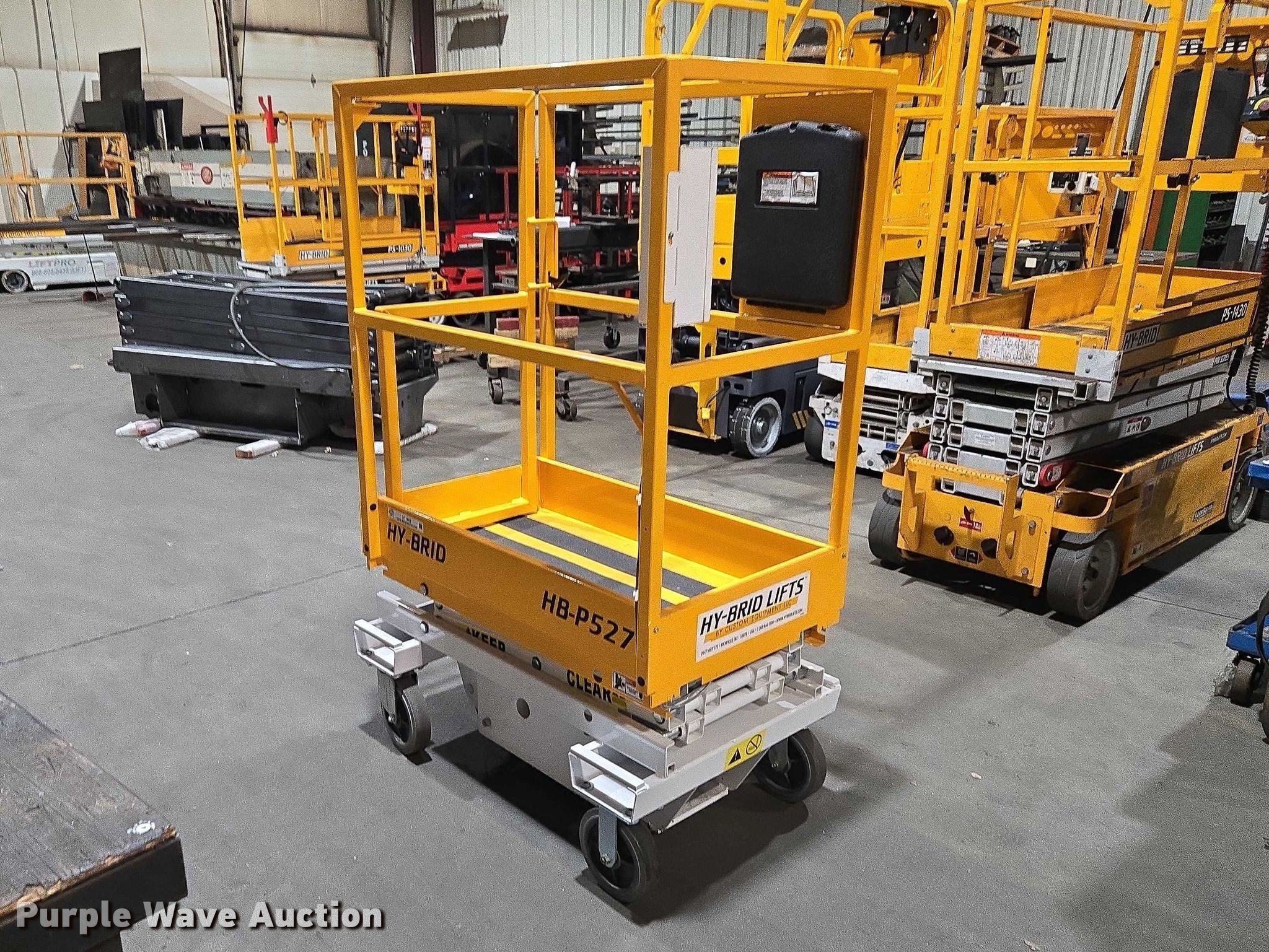 Purple Wave is selling a used Scissor or Vertical Lift in Wisconsin. This item is a 2020 Hy-Brid HB-P527 scissor lift with the following: Serial: D04-10042