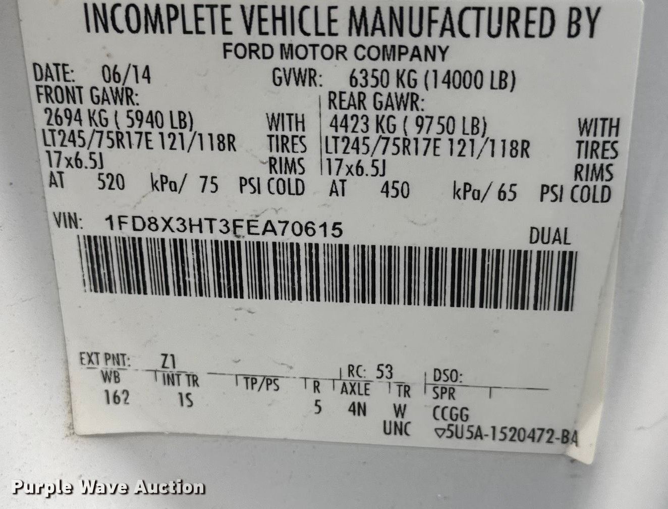 - VIN: 1FD8X3HT3FEA70615