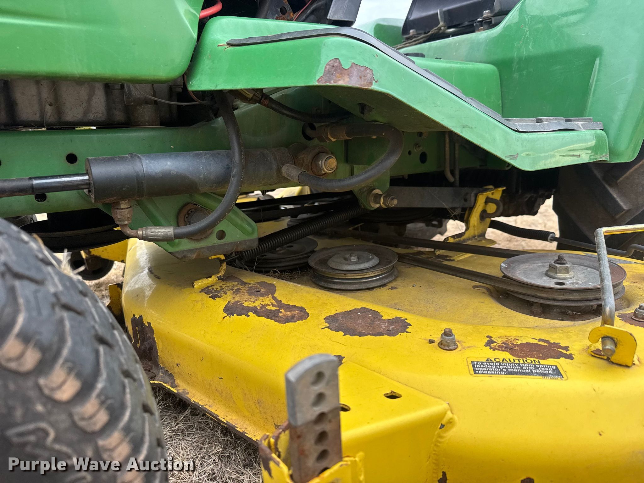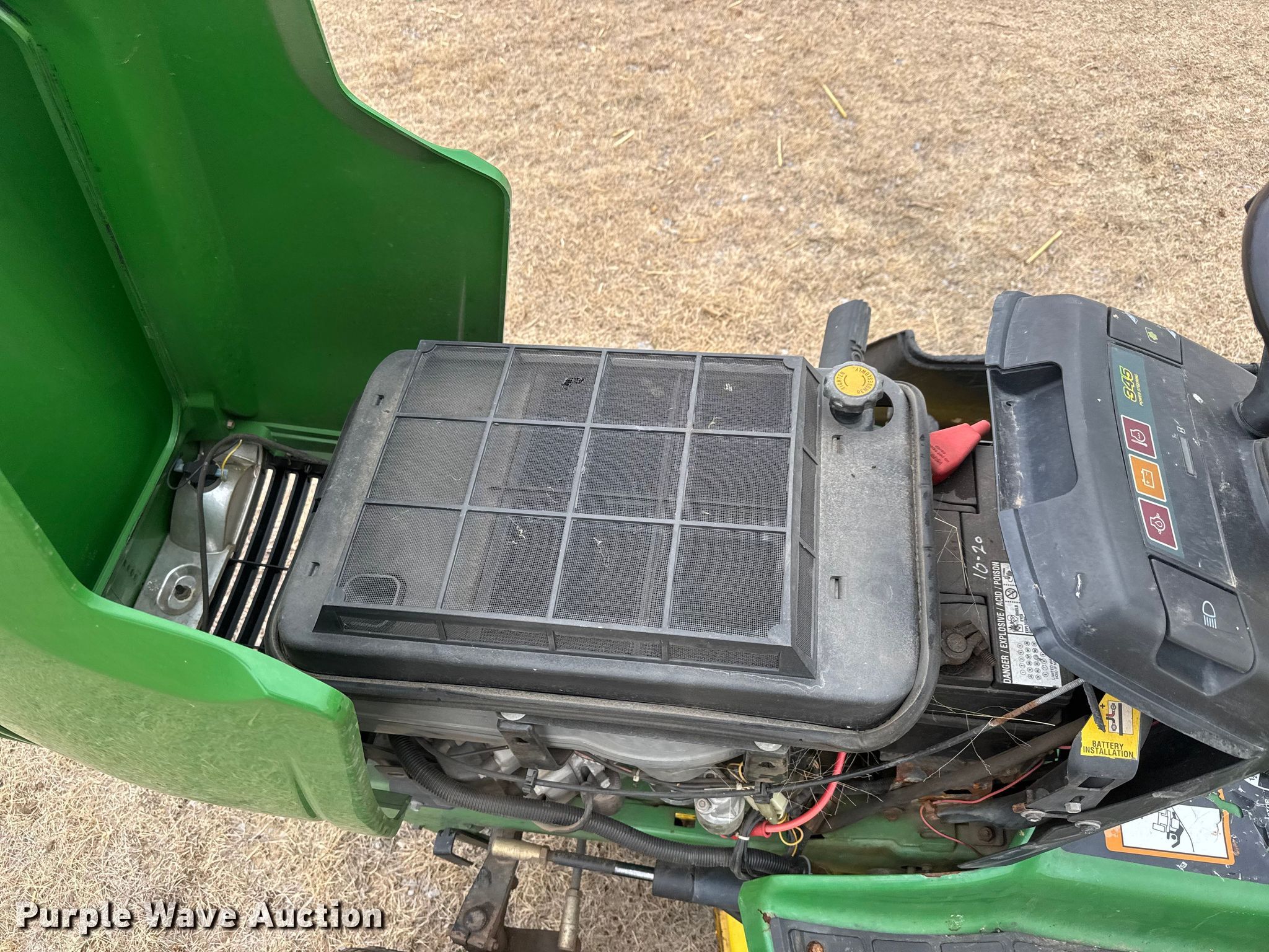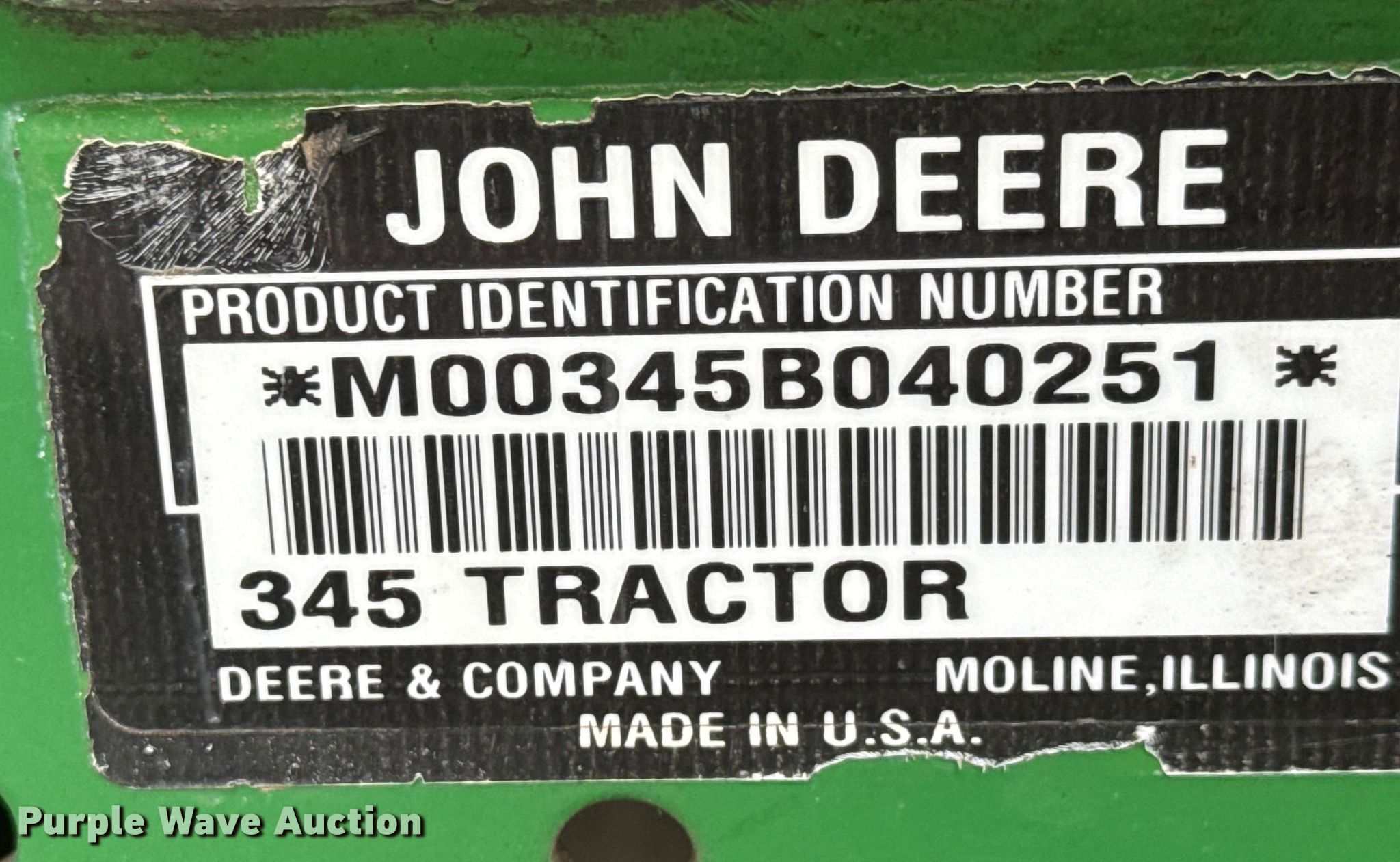 Purple Wave is selling a used Lawn Mower in Kansas. This item is a John Deere 345 lawn mower with the following: Hours: 2,155 on meter, Cutting width: 50", Serial: M00345B040251, Unit #: 210048