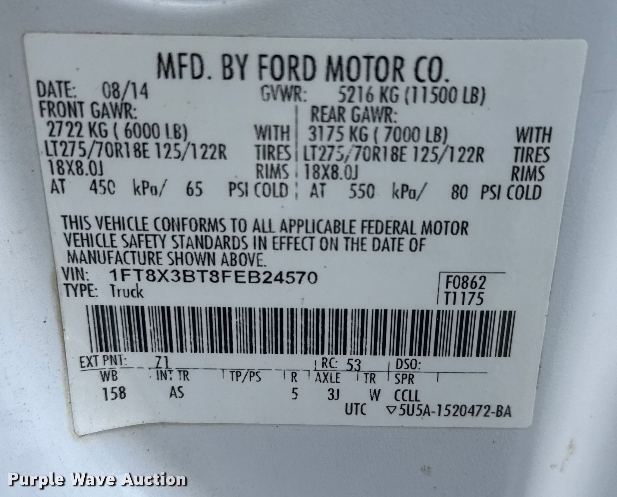 - VIN: 1FT8X3BT8FEB24570