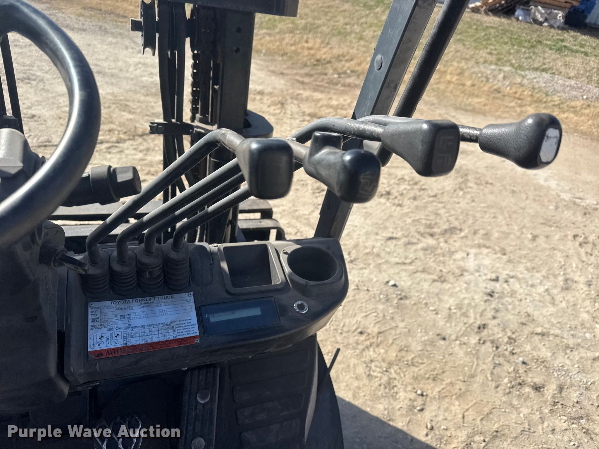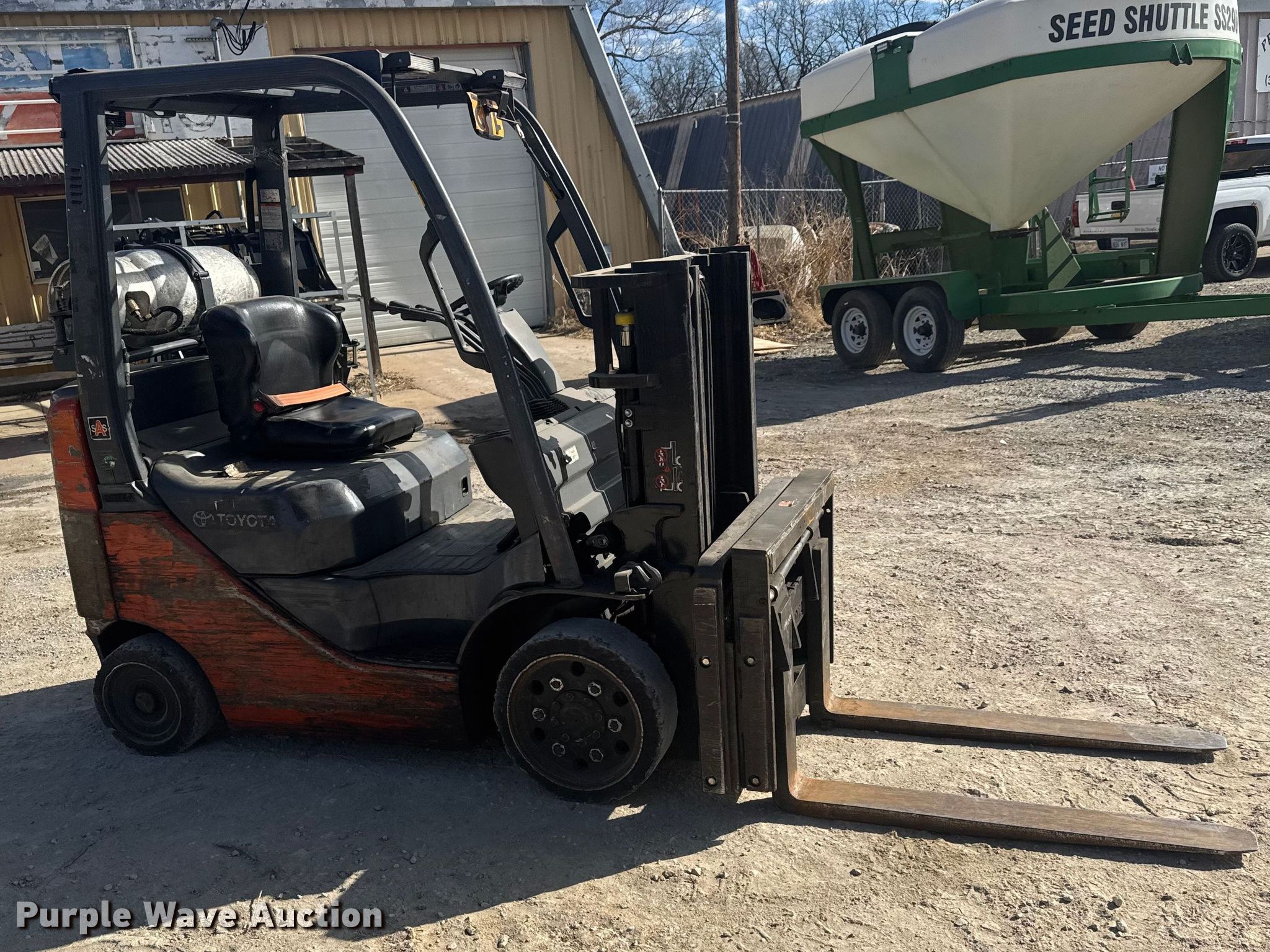 Purple Wave is selling a used Cushion Tire or Pneumatic Forklift in Kansas. This item is a Toyota 8FGCU20 forklift with the following: Hours: 9,253 on meter, Serial: 36619