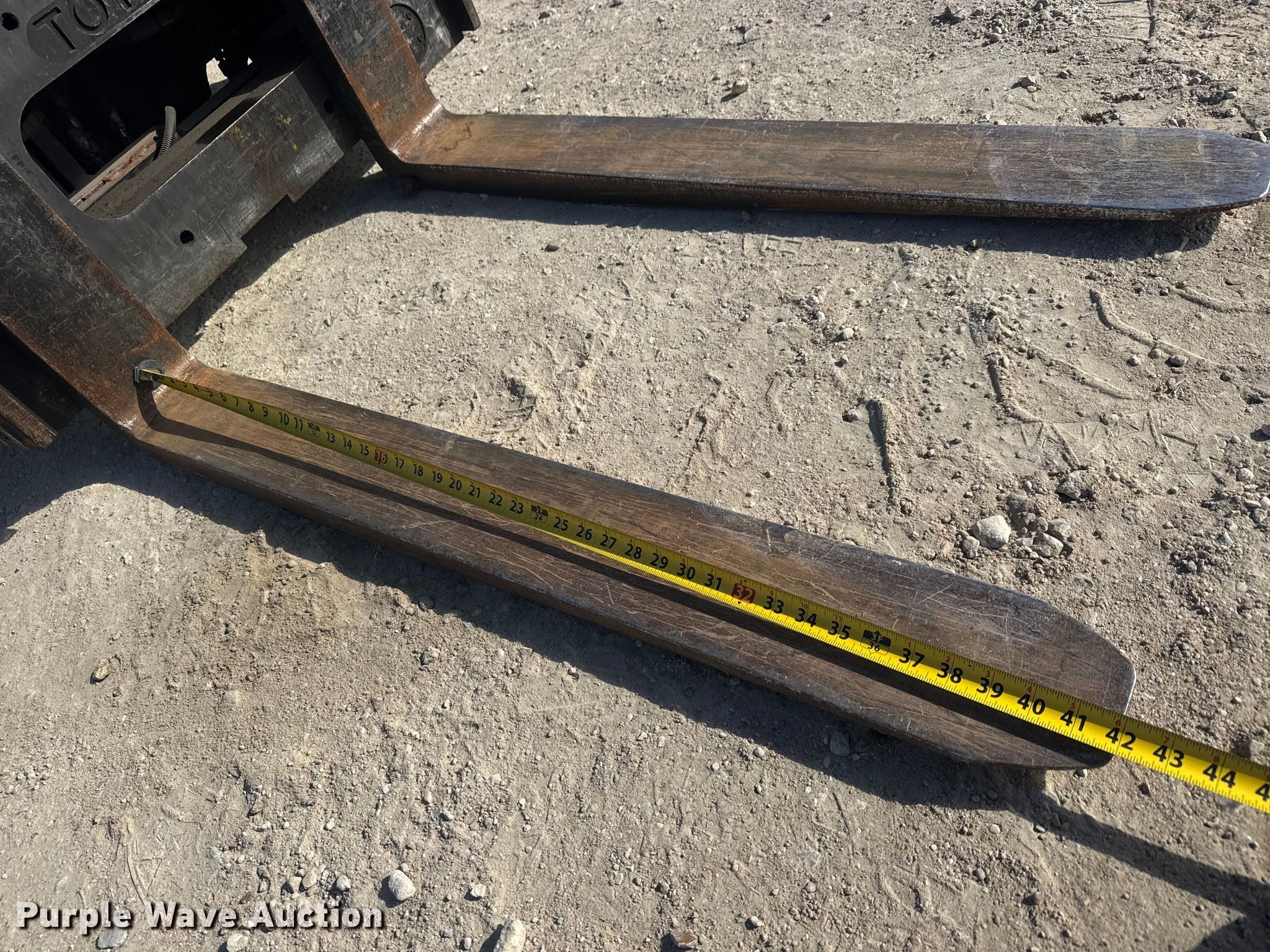 Toyota 8FGCU20 forklift. Hours: 9,253 on meter, Serial: 36619. Engine Toyota 4YECS, Displacement: 2.237L, Cylinders: 4, Fuel type: LPG LP bottle: Not included. Transmission Powershift, 1F - 1R. Operators station OROPS, Canopy. Features Maximum lift capacity: 4,000 lbs, Maximum lift height: 80", Collapsed mast height: 57", Mast stages: 2, Side shift, Mast tilt, Fork positioner, Fork length: 42". Tires Front: 21x7x15, Solid. QP Distribution. Mulvane, KS 67110