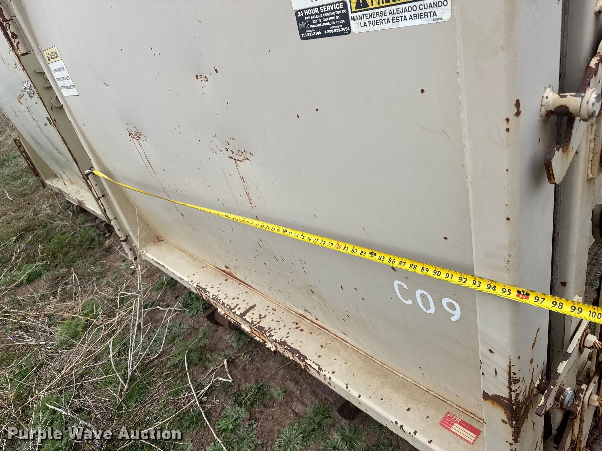 PTR Baler & Compactor trash compactor. Dimensions. Overall Length: 22', Width: 96", Height: 7' 11". Features Capacity: 30 cu. yd.. Notes Follow plate issues, Cylinder issues, Hose issues, Unknown operating condition. Nisly Brothers Inc.. Hutchinson, KS 67501
