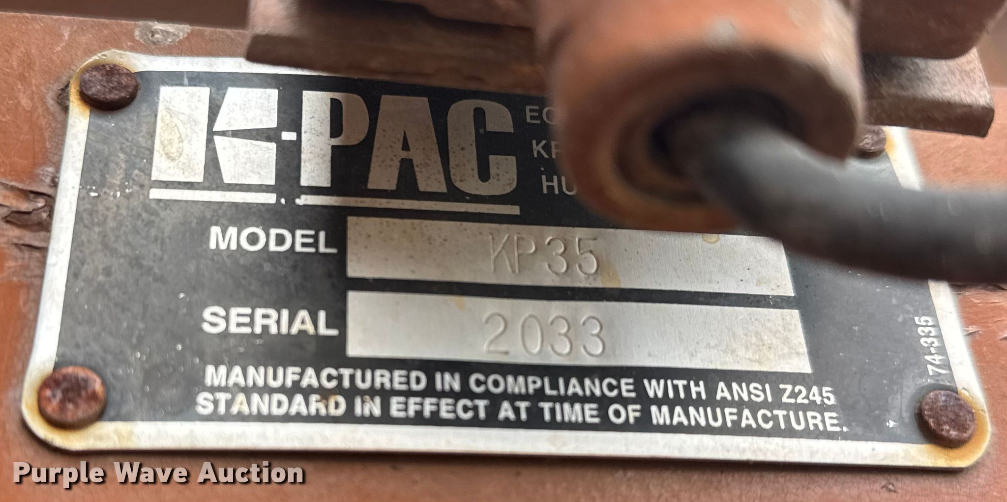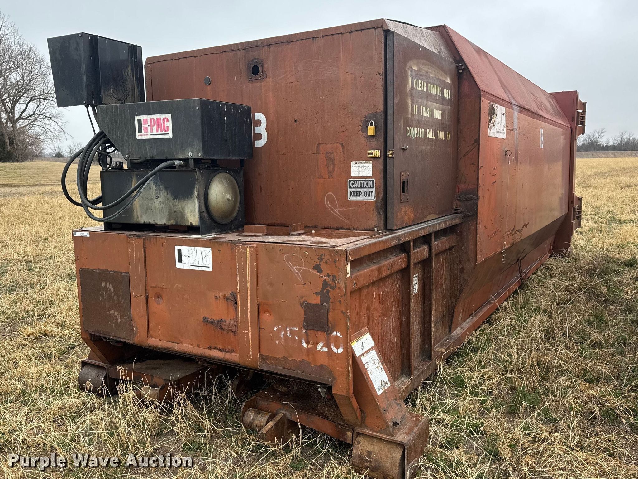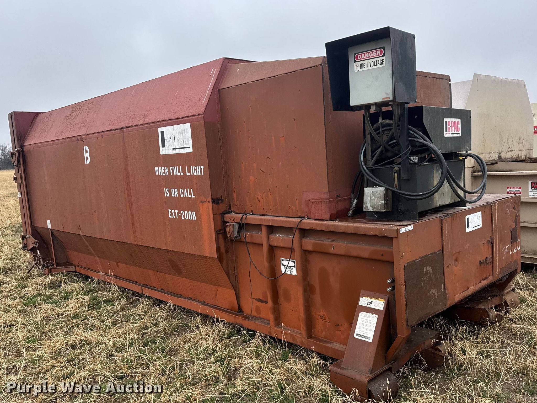 Purple Wave is selling a used Refuse or Compaction Equip. in Kansas. This item is a K-PAC KP35 trash compactor with the following: Serial: 2033
