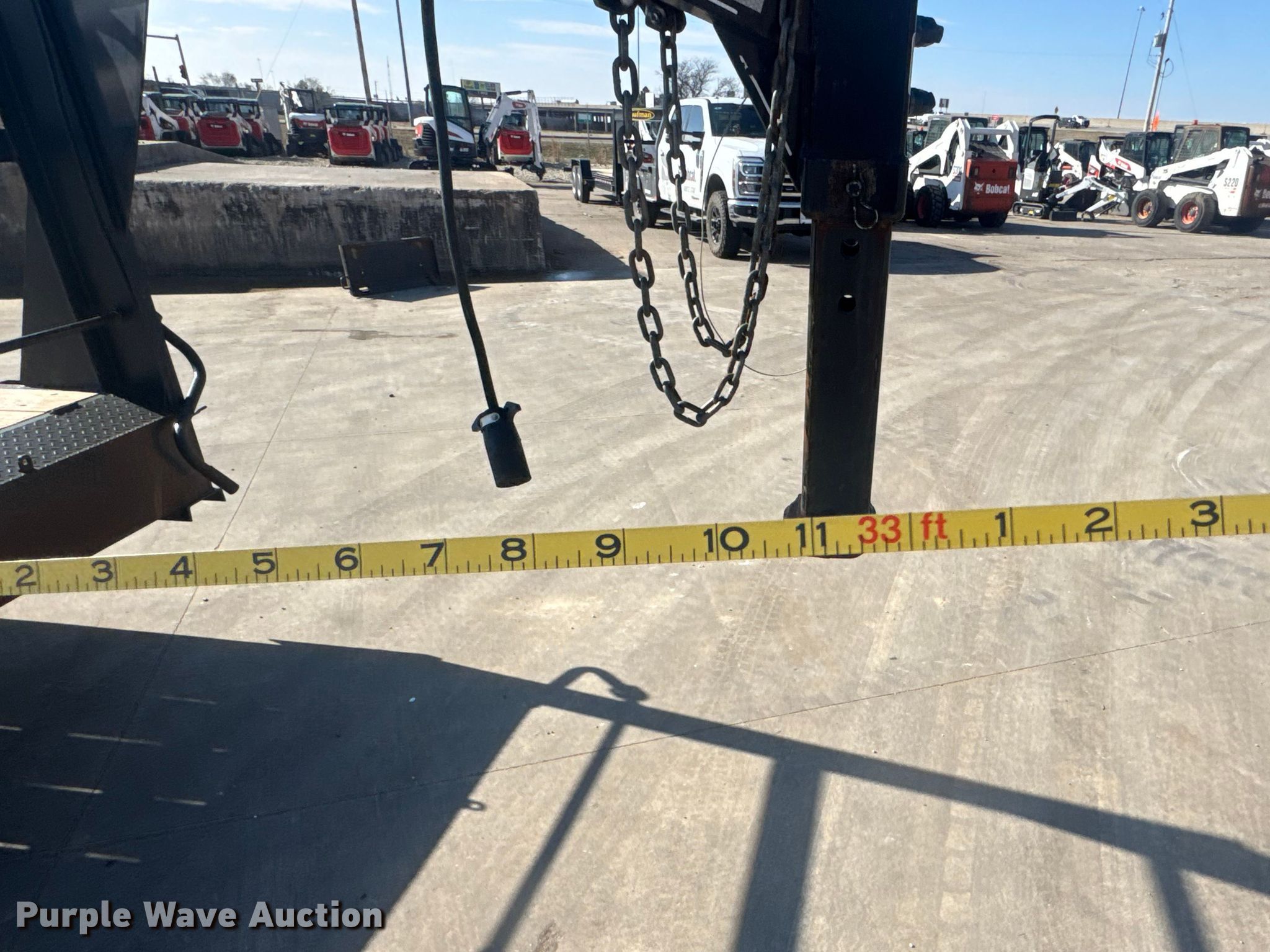 2024 Kaufman DWTG tilt deck equipment trailer. VIN: 7UZFD2424RB000763. Dimensions Overall Length: 33', Width: 102", Deck Length: 25' 10", Width: 83". Features Deck type: Wood. Chassis Hitch: Gooseneck, Landing gear: Single, Suspension: Spring, Brakes: Electric, Axles: Tandem, GVWR: 16,000 lbs, GAWR: 8,000 lbs. Tires Steel wheels, Size: 215/75R17.5. Notes Axle issues, bent , Unit must be hauled. Kansas title. Title distribution may be delayed up to 14 days from verification of funds. White Star Machinery. Wichita, KS 67219