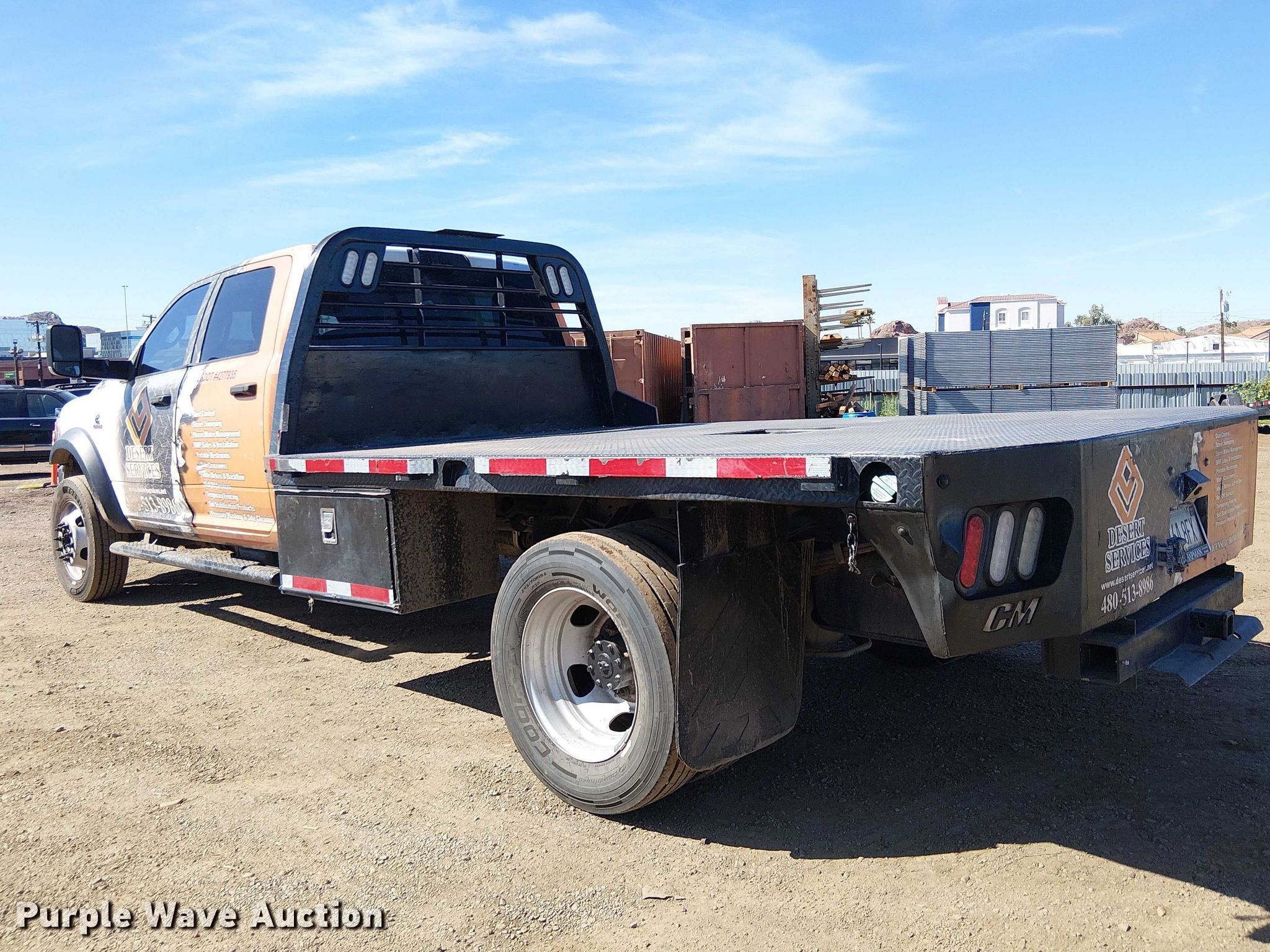 Purple Wave is selling a used Flat Bed Truck in Arizona. This item is a 2019 RAM 5500 Crew Cab flatbed truck with the following: Miles: 148,401 on odometer, Hours: 8,317 on meter, VIN: 3C7WRNFL8KG683808, Unit #: 75