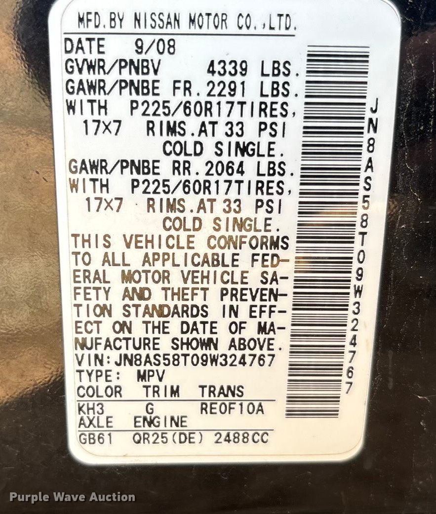 - VIN: JN8AS58T09W324767