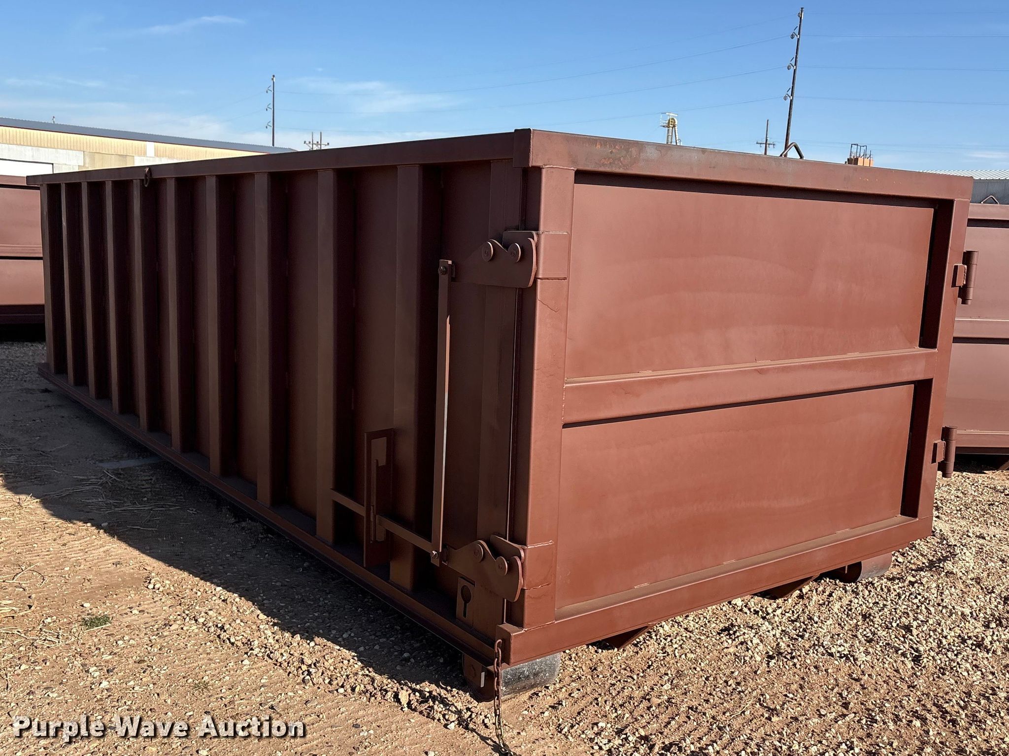 Purple Wave is selling a used Refuse or Compaction Equip. in Texas. This item is a Roll-off container with the following: Overall, Length: 23' 4", Width: 8' 4", Height: 6' 1", Interior, Length: 21' 8", Width: 7' 4", Height: 5' 2"