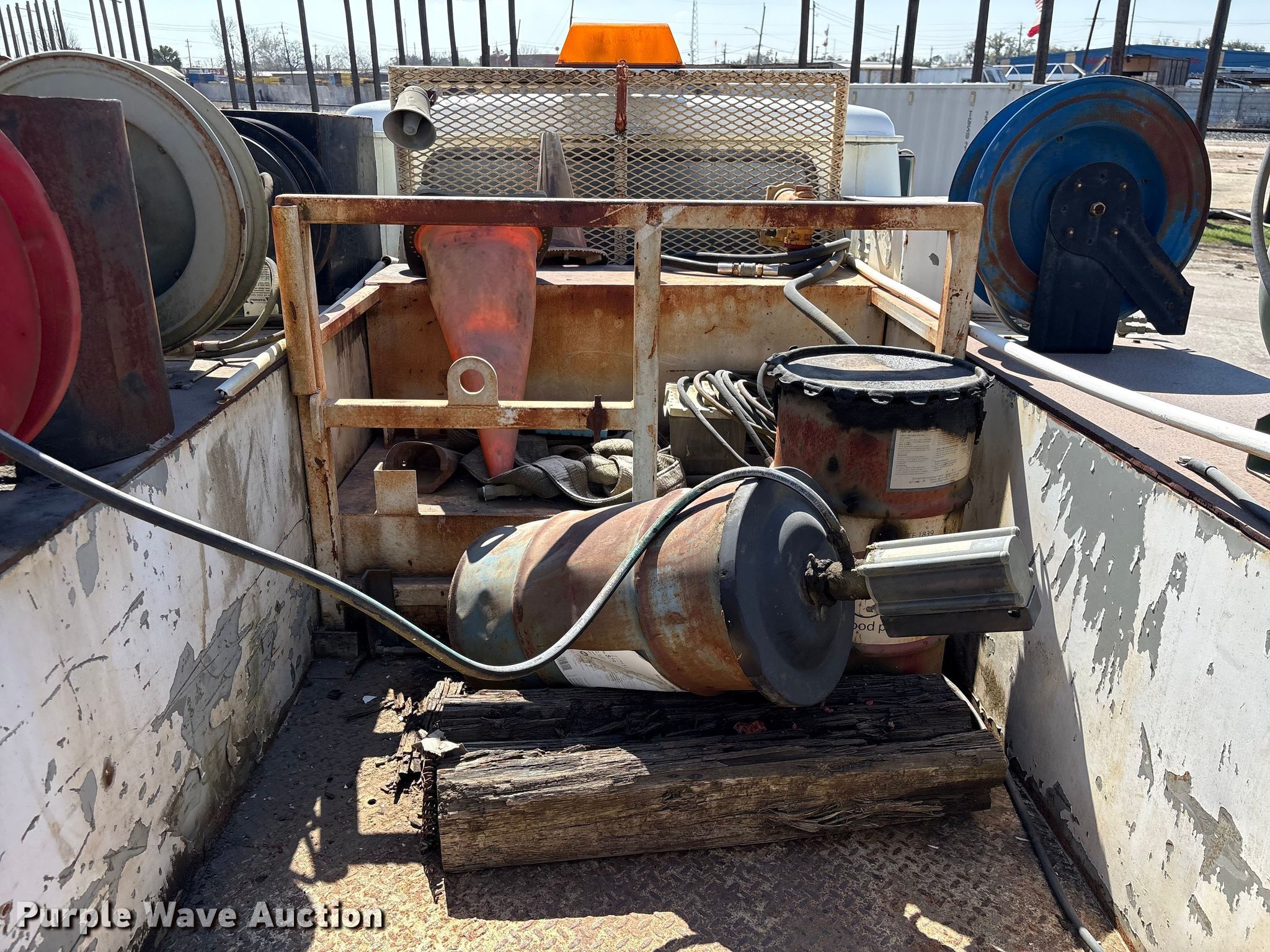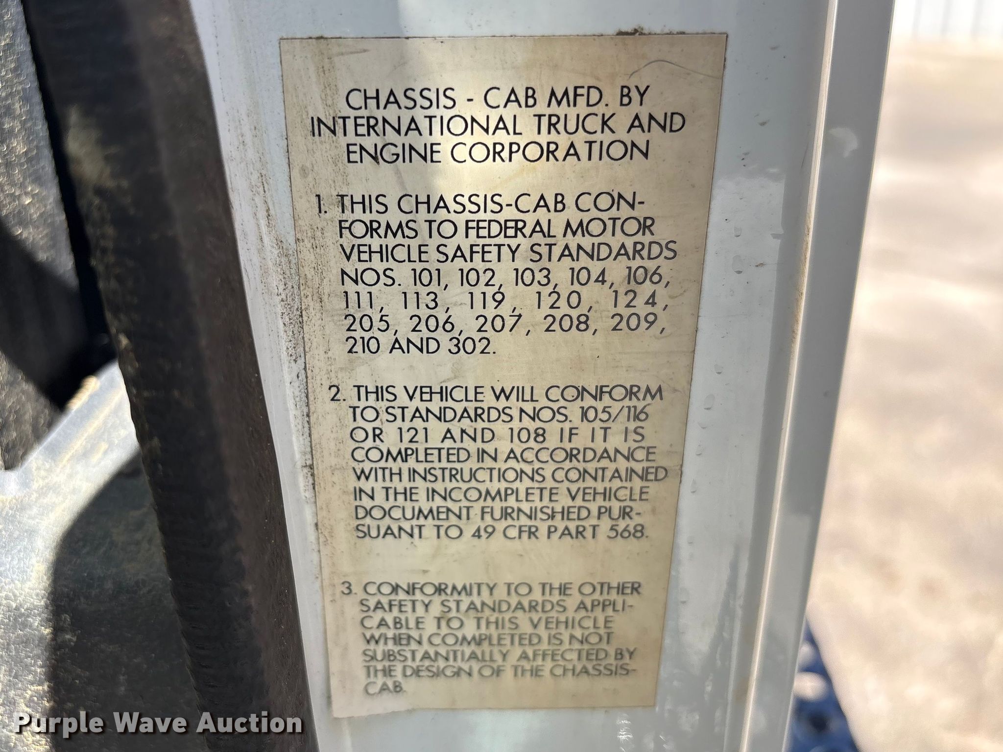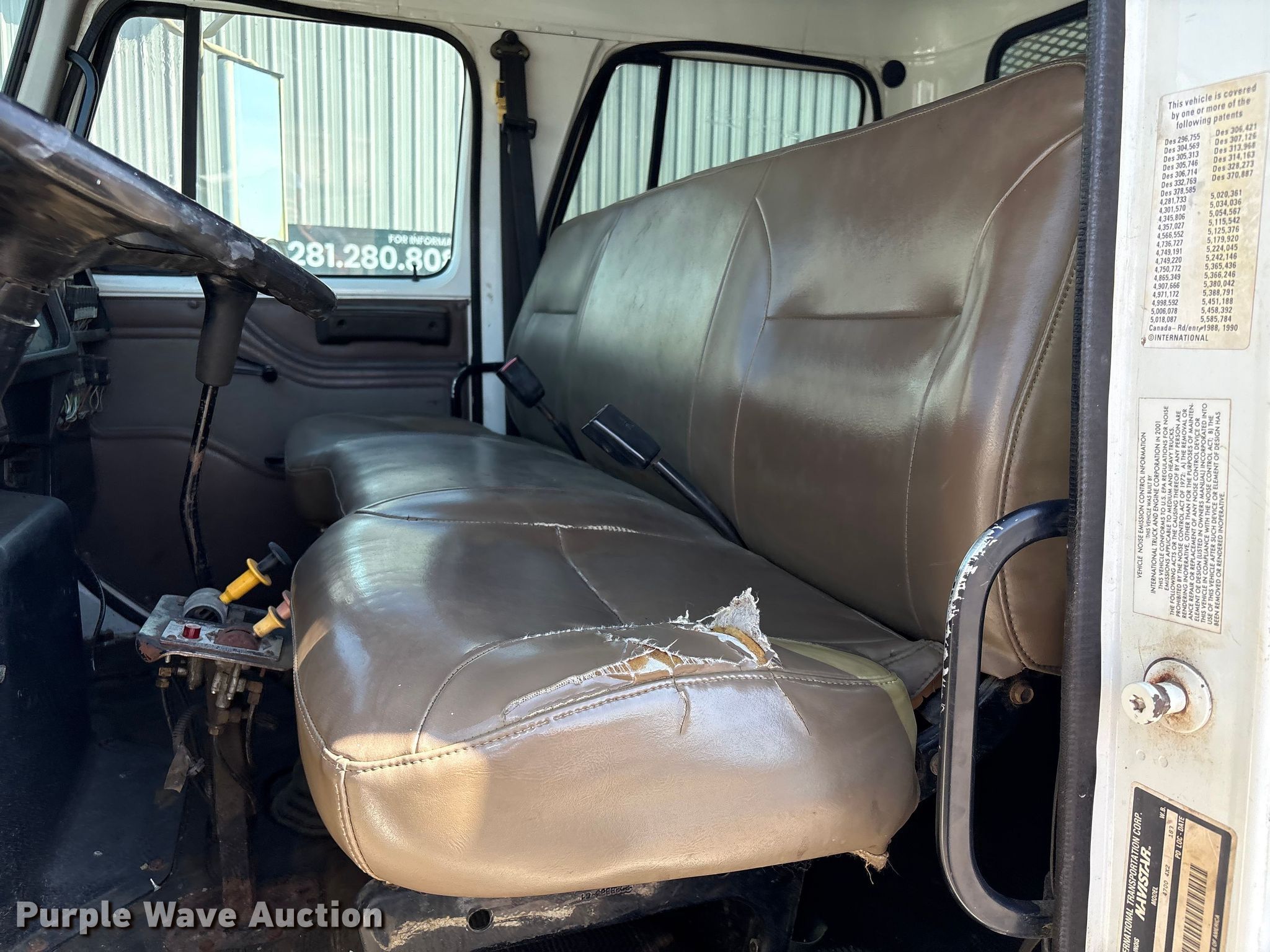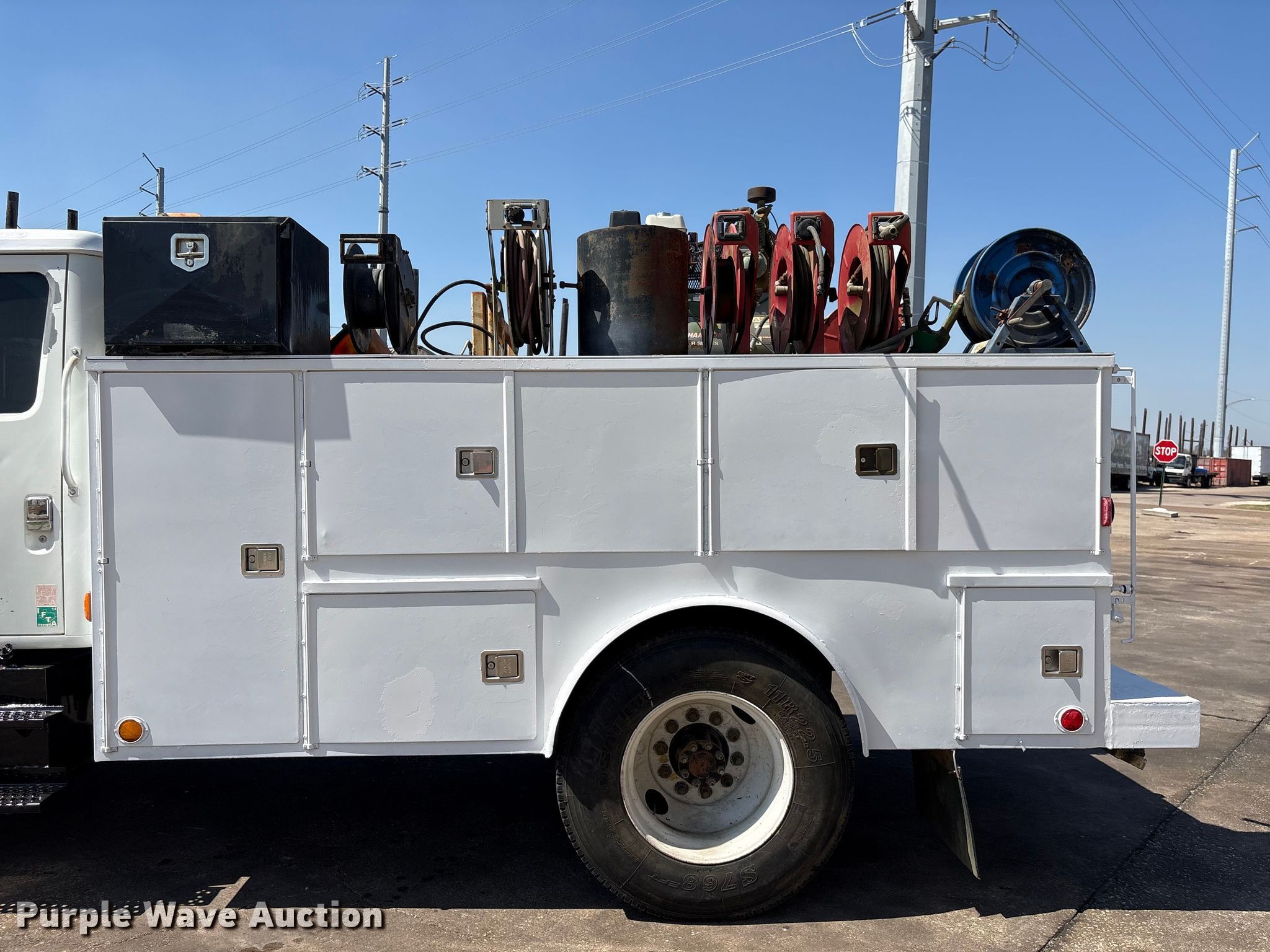 2002 International 4700 utility / service truck. Miles: 121,509 on odometer, VIN: 1HTSCAAL02H510709. Engine Cylinders: 6, Fuel type: Diesel. Transmission Manual, Speed: 7. Chassis Axles: Single, Brakes: Air, Wheelbase: 183". Interior Heat, Cruise control. Features Bed Utility bed, Length: 12' 3", Width: 8', Torch bottle rack, Air compressor Champion R Series, Honda GX390, Oil/lube system Hose reels, Nozzles, Reservoirs, Fuel tank. Tires Size: 11R22.5. Notes Windshield chipped or cracked, Oil leak. Texas title. Seller is a Texas licensed motor vehicle dealer. The buyer may be required to pay sales tax and/or registration fees to the dealer prior to taking possession. Buyers may be required to provide identification to the licensed dealer to comply with state laws. Title will be assigned and distributed by the dealer. Please contact the seller for distribution questions. Title distribution may be delayed up to 30 days from verification of funds. Caffey Enterprise. South Houston, TX 77587