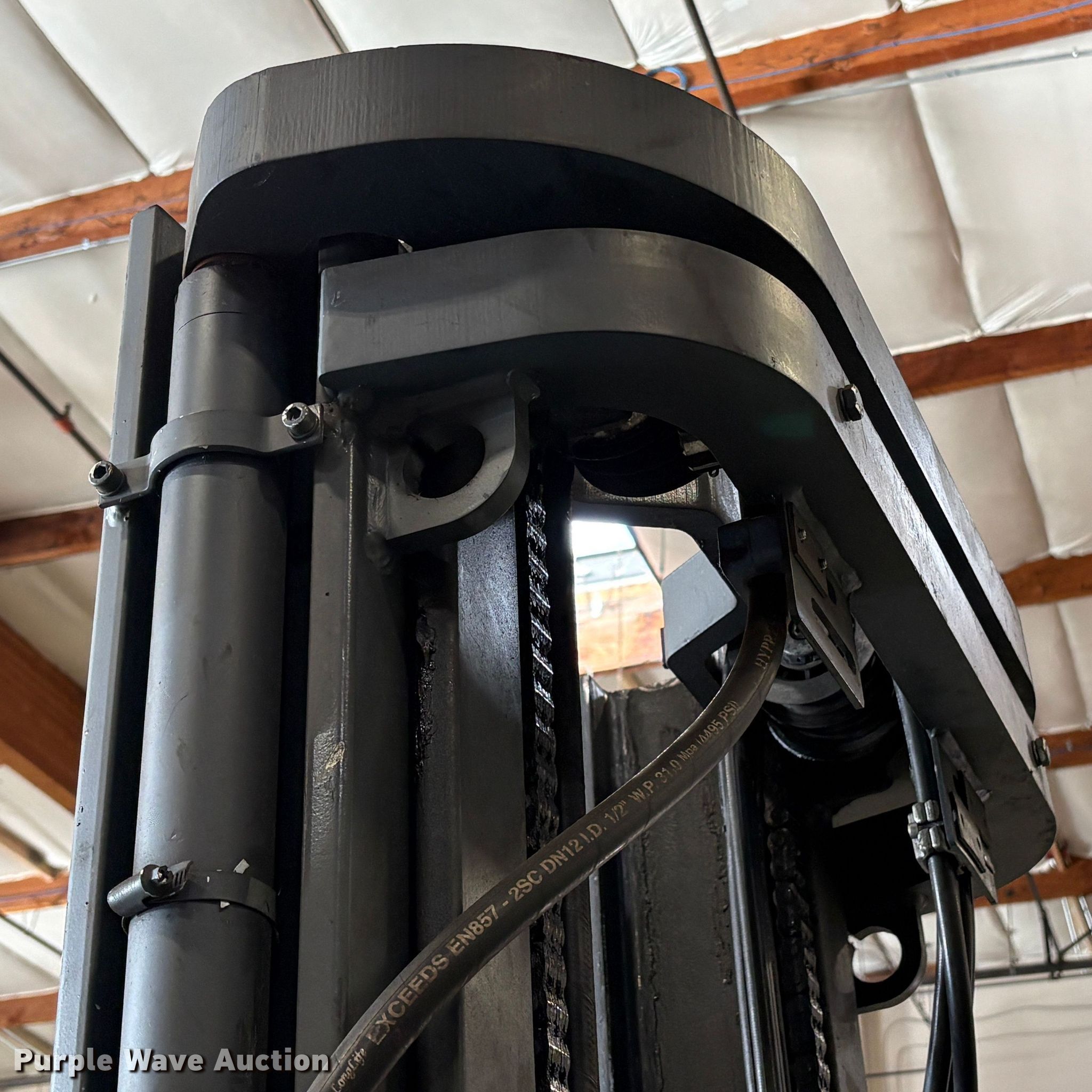 2016 CombiLift CB6600 forklift. Hours: 9,163 on meter, Serial: 27949, Unit #: SFS2984. Engine Cylinders: 4, Fuel type: LPG LP bottle: Not included. Transmission Hydrostatic. Operators station OROPS. Features Maximum lift capacity: 5,500 lbs, Maximum lift height: 203", Collapsed mast height: 97", Mast stages: 3, Side shift, Mast tilt, Fork positioner, Fork length: 47". Tires Front: 406/178-266, Rear: 22x10x16, Solid. Ferguson. Auburn, WA 98001